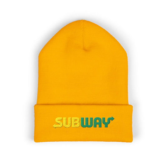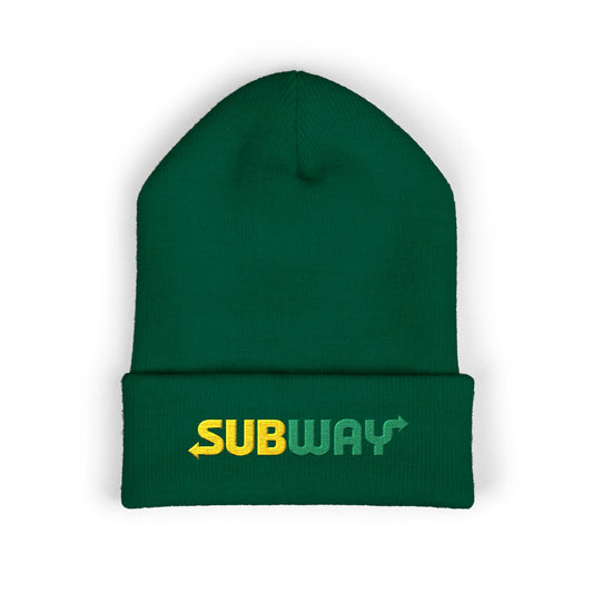 • Embroidered Subway Beanie, Classic Cuffed Hat, Winter Accessory