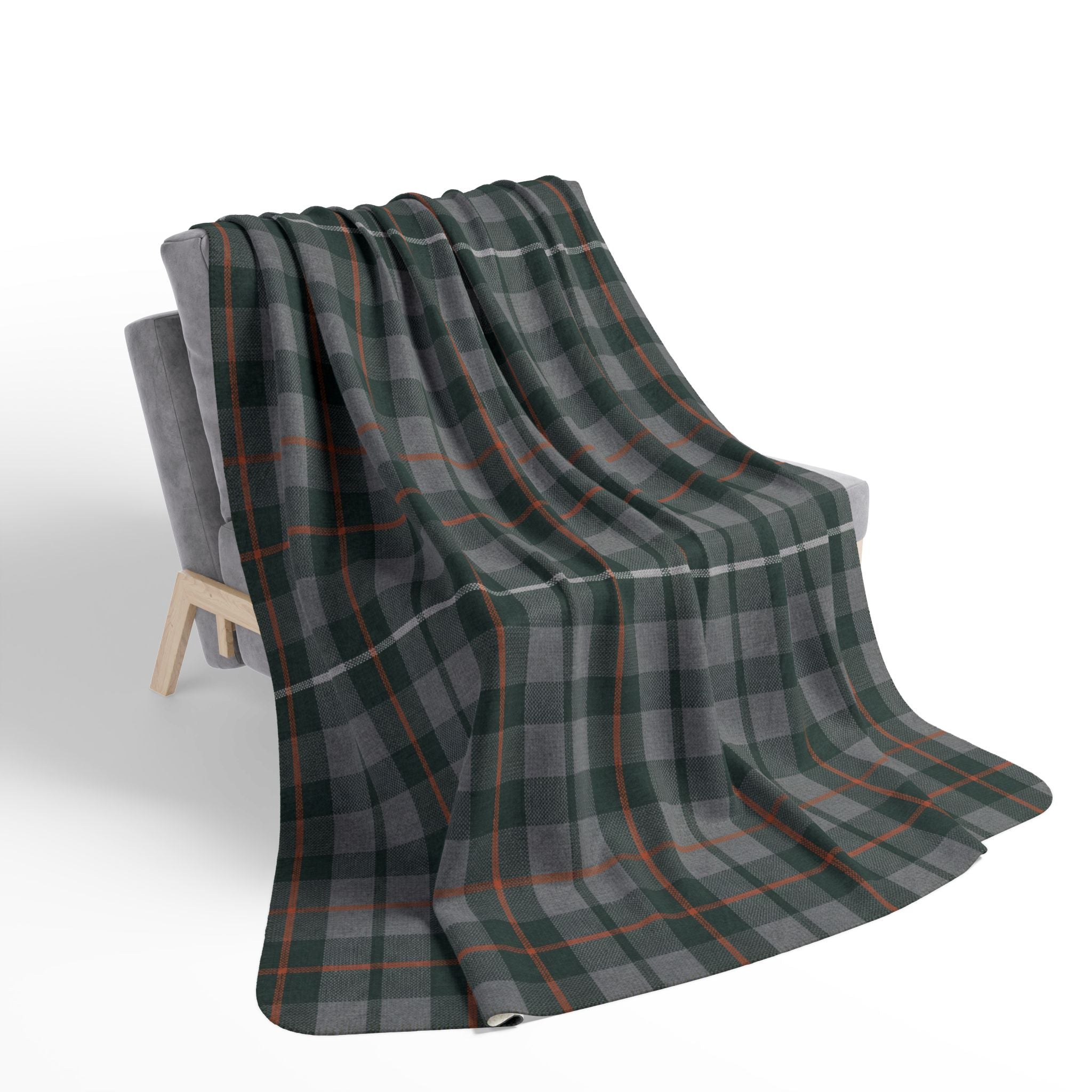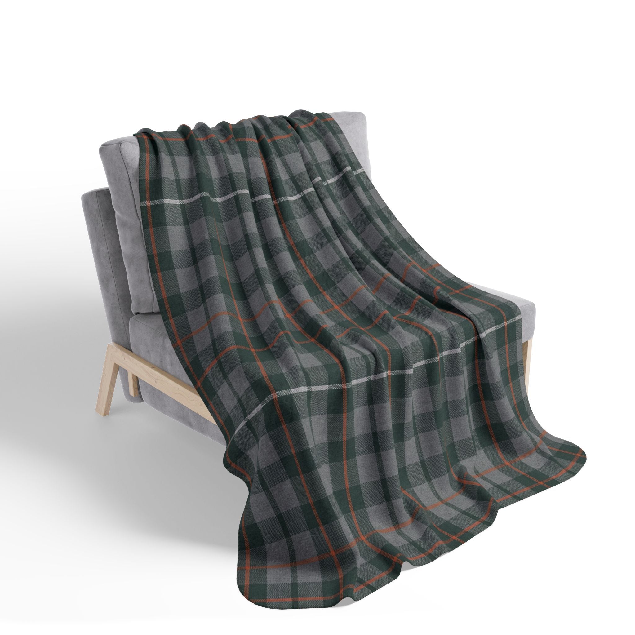 This cozy fleece sherpa blanket wraps you in soft, thick warmth with a timeless plaid that feels both rustic and refined. The deep green and muted gray checks, threaded with subtle rust accents, bring a calm, woodland mood to quiet evenings on the couch, cabin nights by the stove, or layered at the foot of a bed. Plush on both sides and substantial at 14.1 oz/yd², it holds heat without feeling heavy. Hemmed edges and matched seam thread give it a finished, lasting look. It’s the kind of blanket you reach for during chilly mornings with a mug, movie nights under dim lights, or when guests settle in for long conversations — familiar, steady, and built to be part of your everyday comforts.