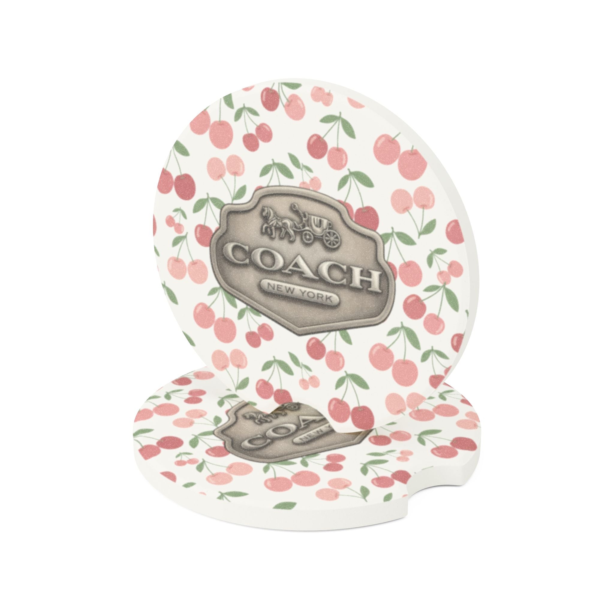 Light Pink Cherry Blossom Coach Inspired Soapstone Car Coaster