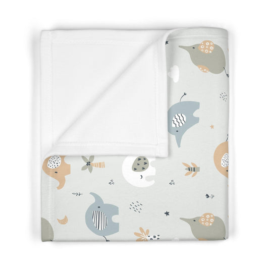 Little Elephants White- Soft Fleece Baby Blanket by CuddleLux Bliss