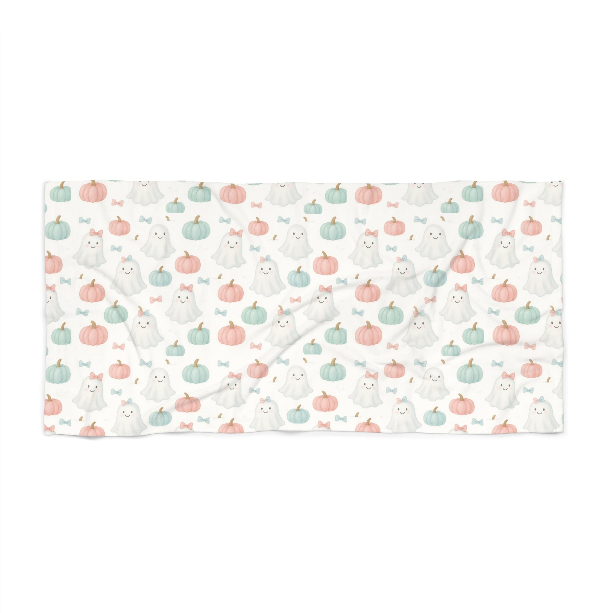 Summerween Halloween Blush Pumpkins and Ghosts with Bows- Cute Beach Towel