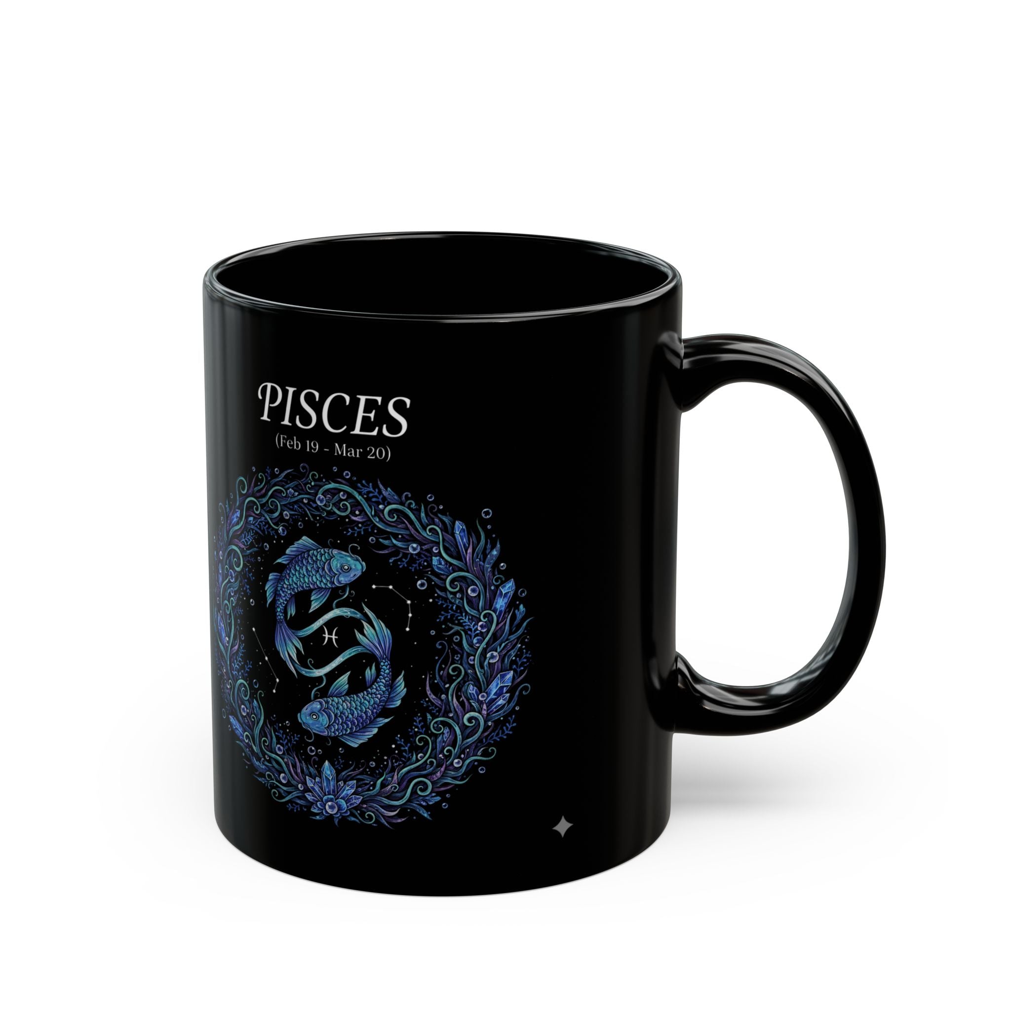 This sophisticated black mug offers a unique touch to your morning routine or cozy evenings. Made from high-quality glossy ceramic, it provides a sleek and elegant vibe that adds a splash of style to your kitchen or office space. Perfect for avid coffee drinkers, tea enthusiasts, or anyone who enjoys a warm beverage. Its vibrant design celebrates the Pisces zodiac, making it a thoughtful gift for birthdays, especially for those born between February 19 - March 20. This mug is perfect for astrology lovers or anyone who appreciates personalized touches in their everyday items. Enjoy it during special occasions or as a daily companion during relaxing moments.