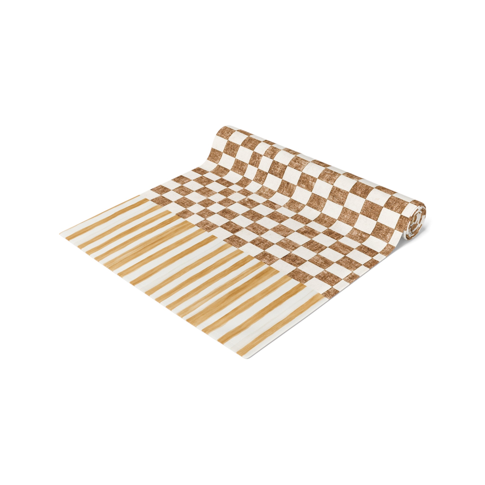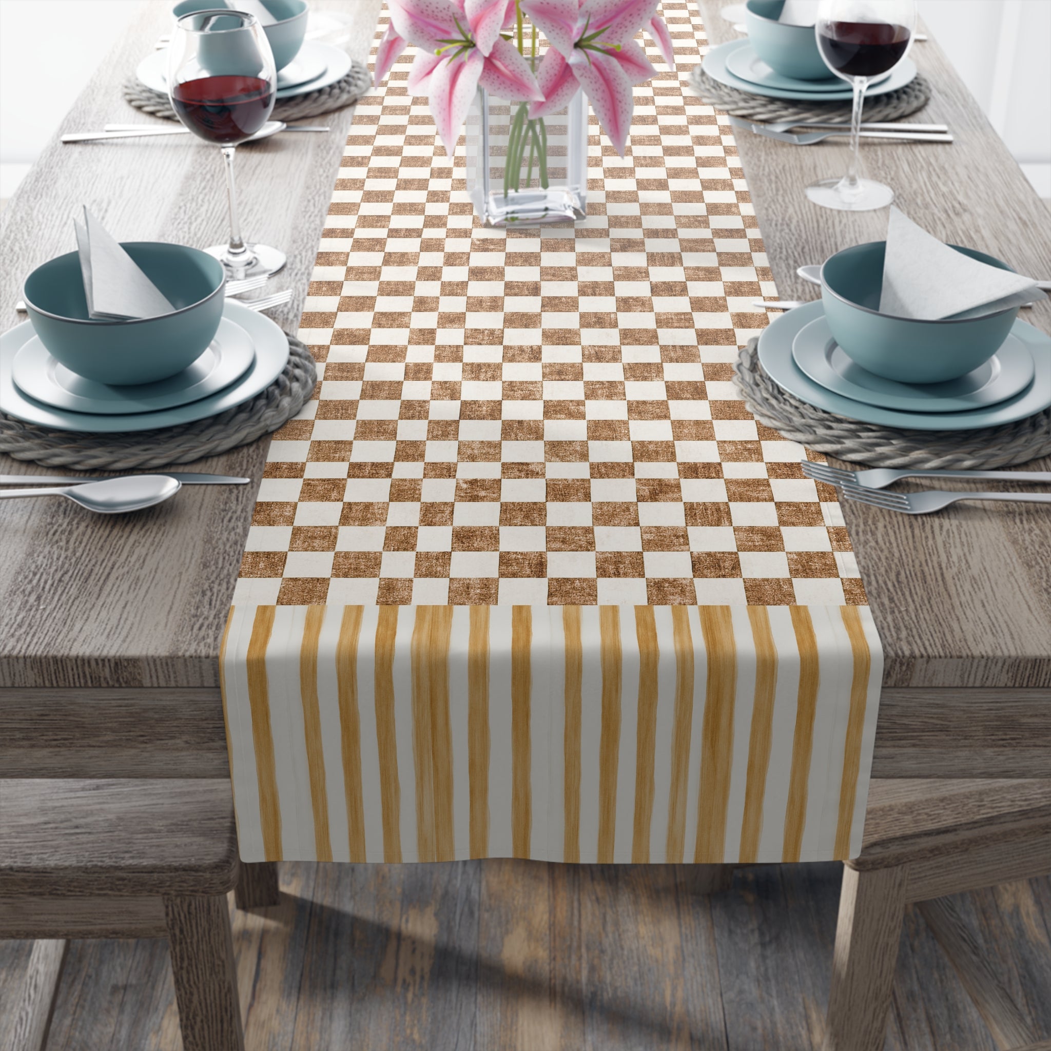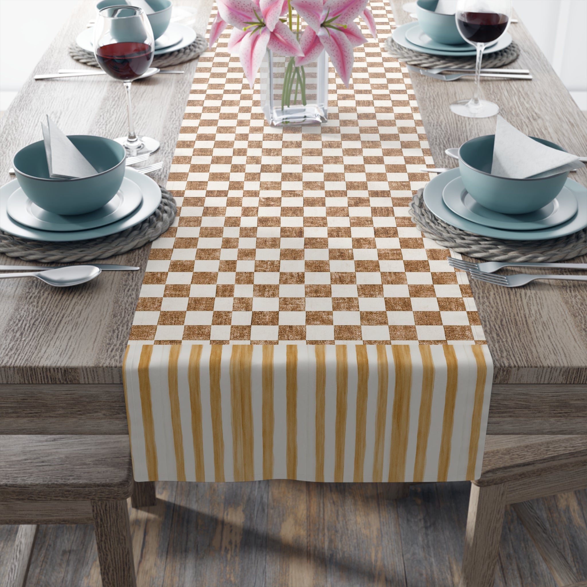 Chic Checkered Cotton Table Runner- Mocha Monochrome Checkered Design, Dining Decor, Farmhouse Style, Wedding Celebration, Holiday Table Setting