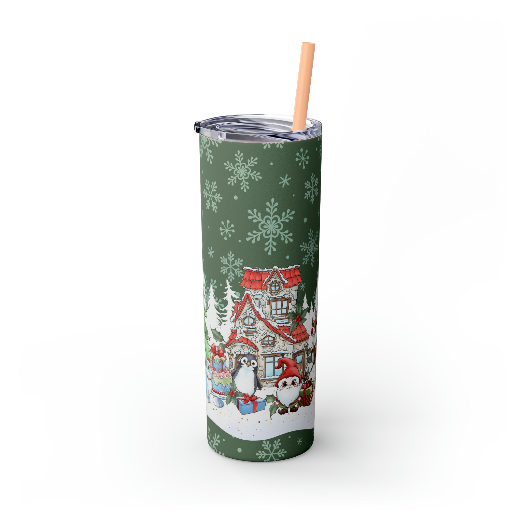 Christmas Village- Skinny Tumbler with Straw, 20oz