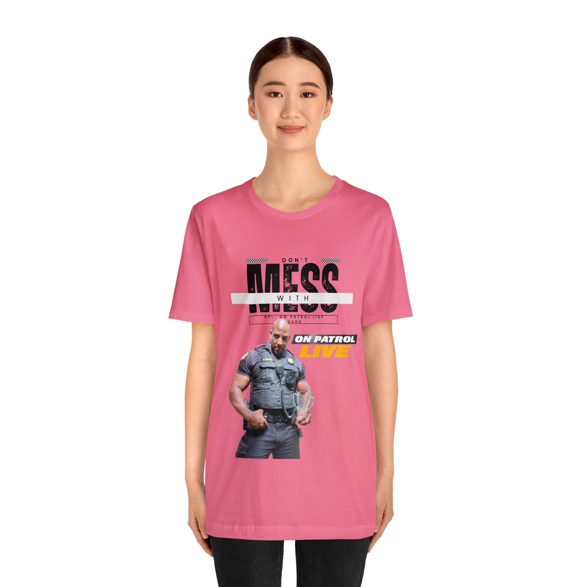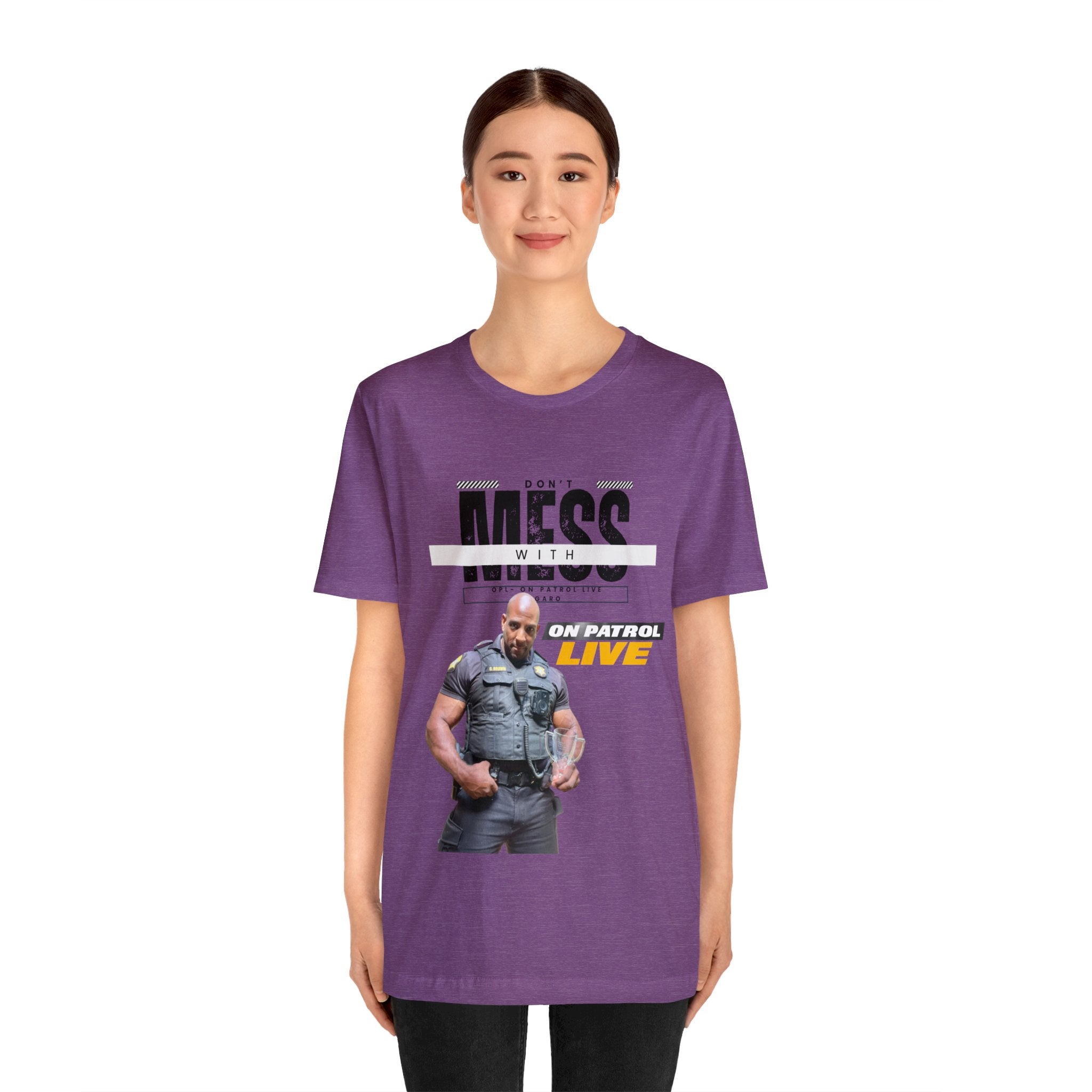 On Patrol Live Dont Mess with Garo Brown Unisex Jersey Short Sleeve Tee