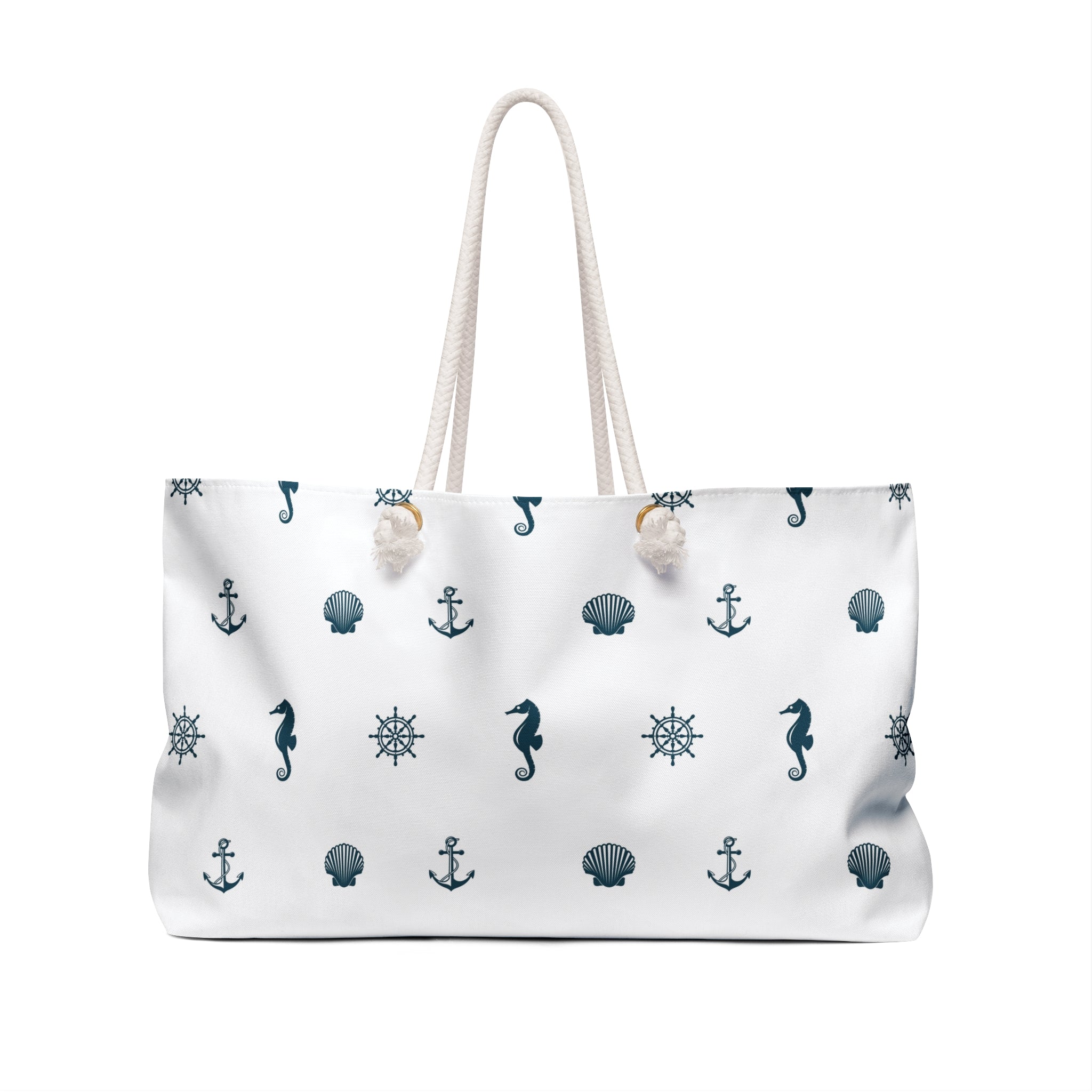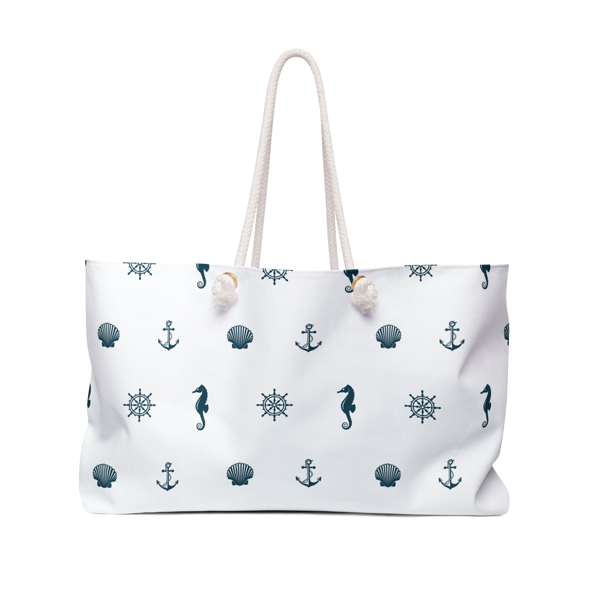Our oversized Weekender Tote is perfect for your weekend at the beach or in town. The wide-mouthed, durable bag holds a generous amount of personal items and is easily held by its thick rope handles.