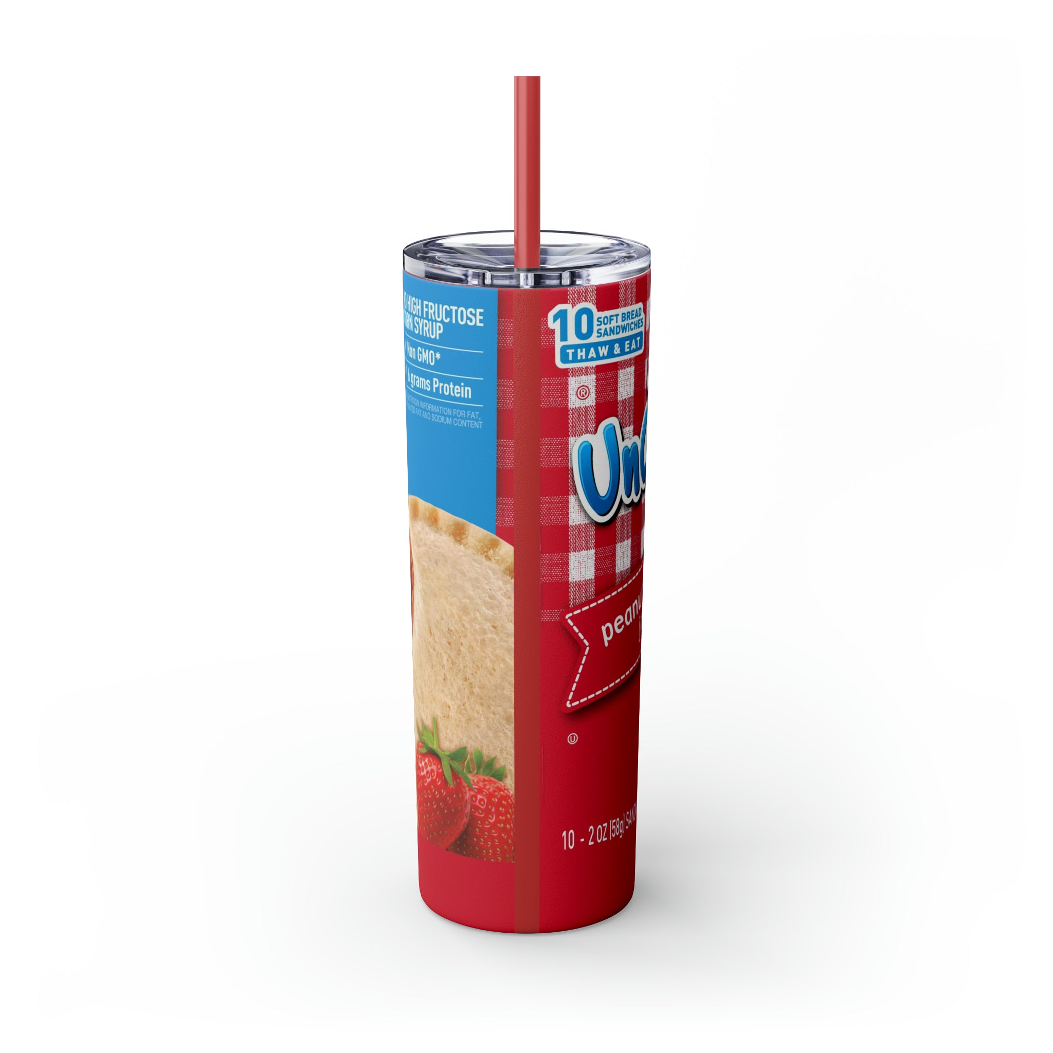 Uncrustables Strawberry Inspired- Skinny Tumbler with Straw, 20oz