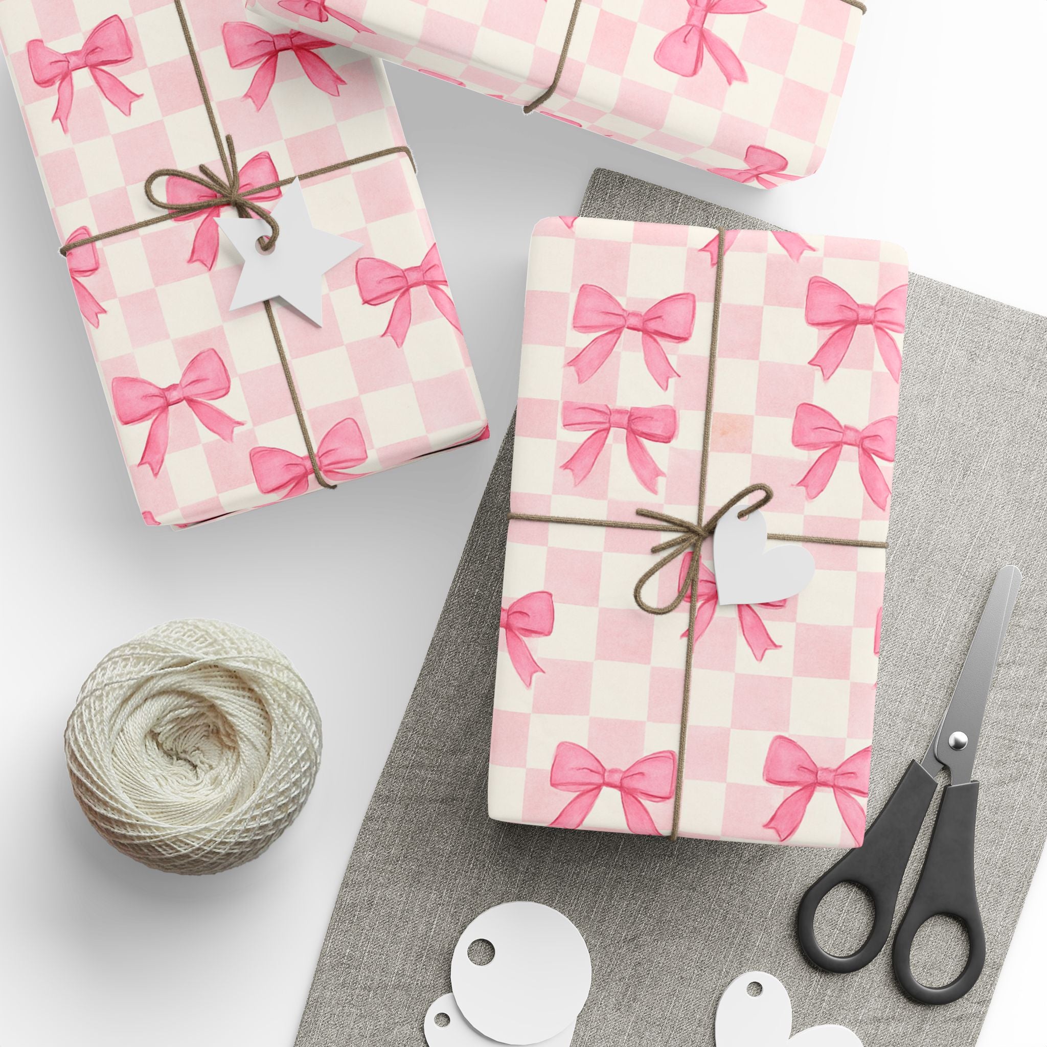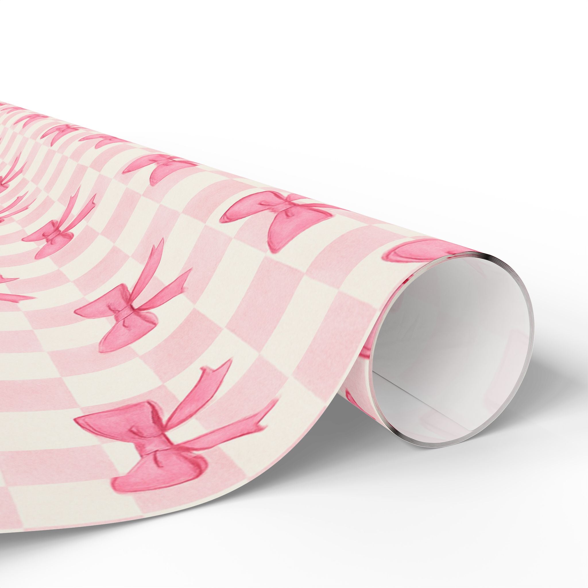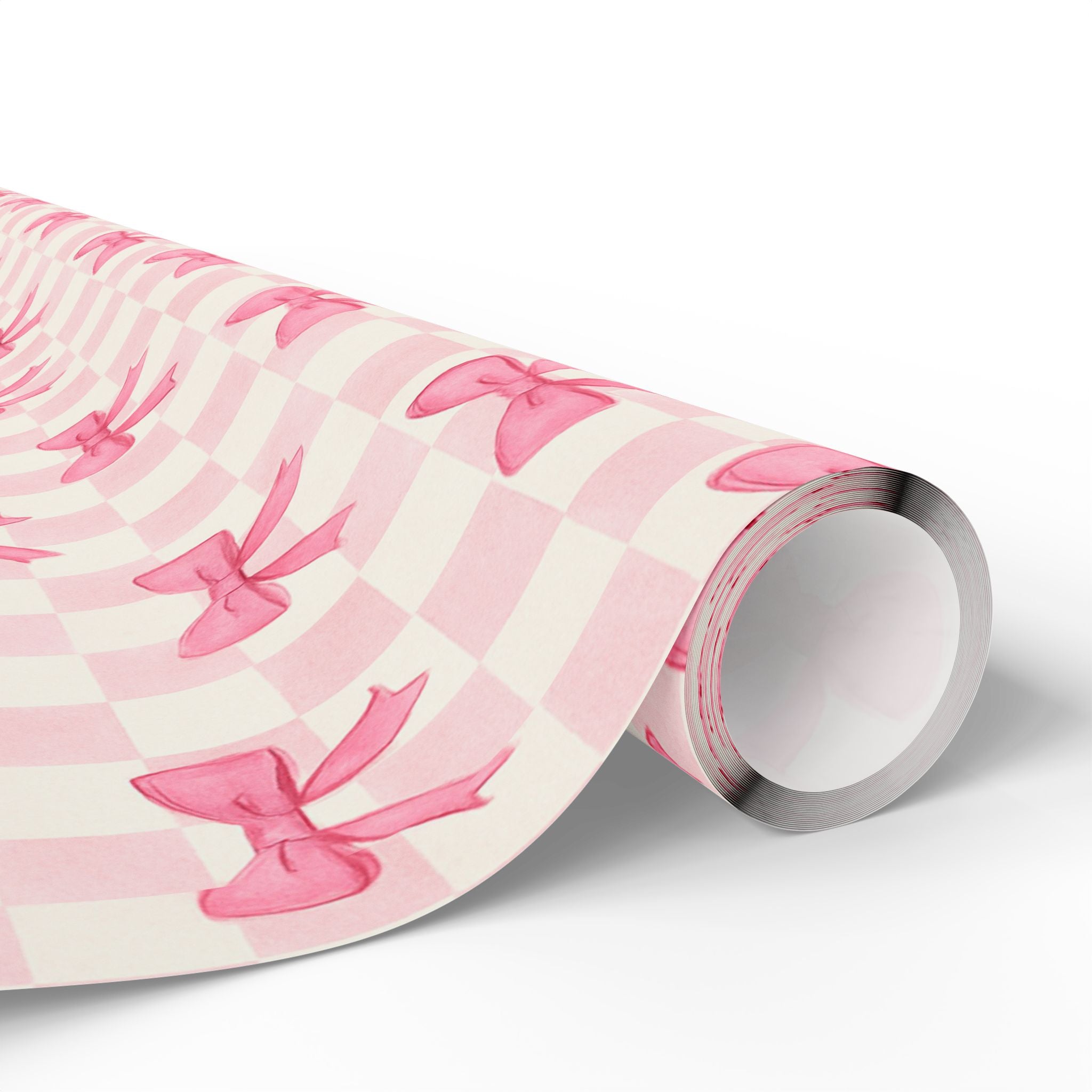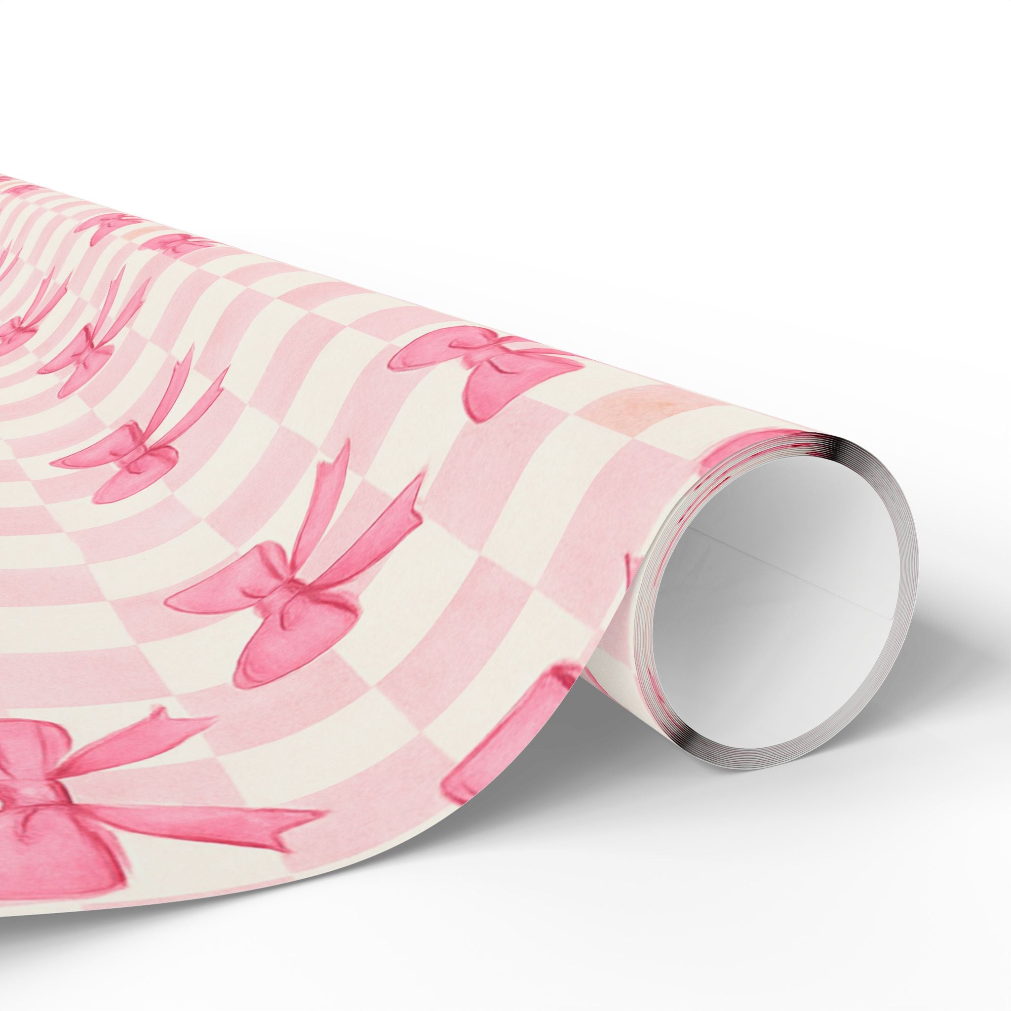 Chic Checkered Charming Gift Wrapping Paper Roll, Pink Bow Design, Perfect for Birthdays, Holidays, and Special Occasions, Unique Gift Wrap Idea