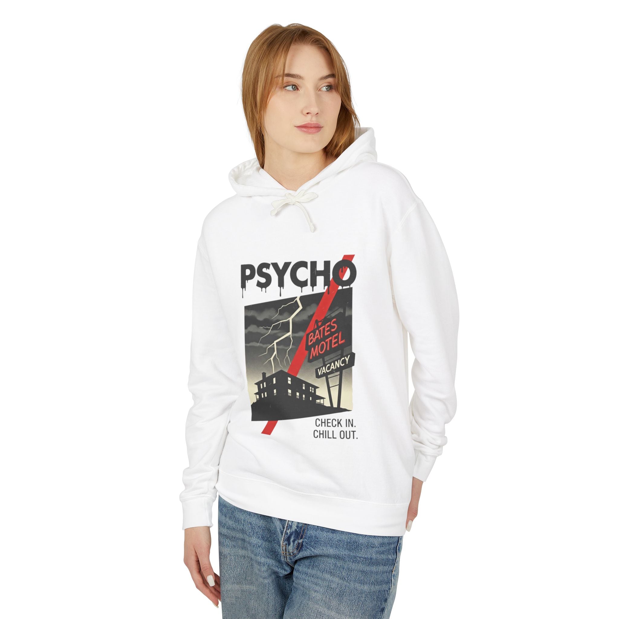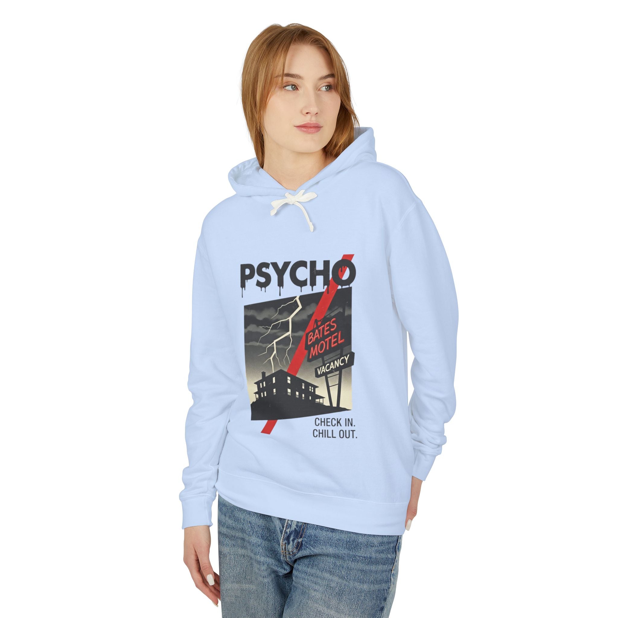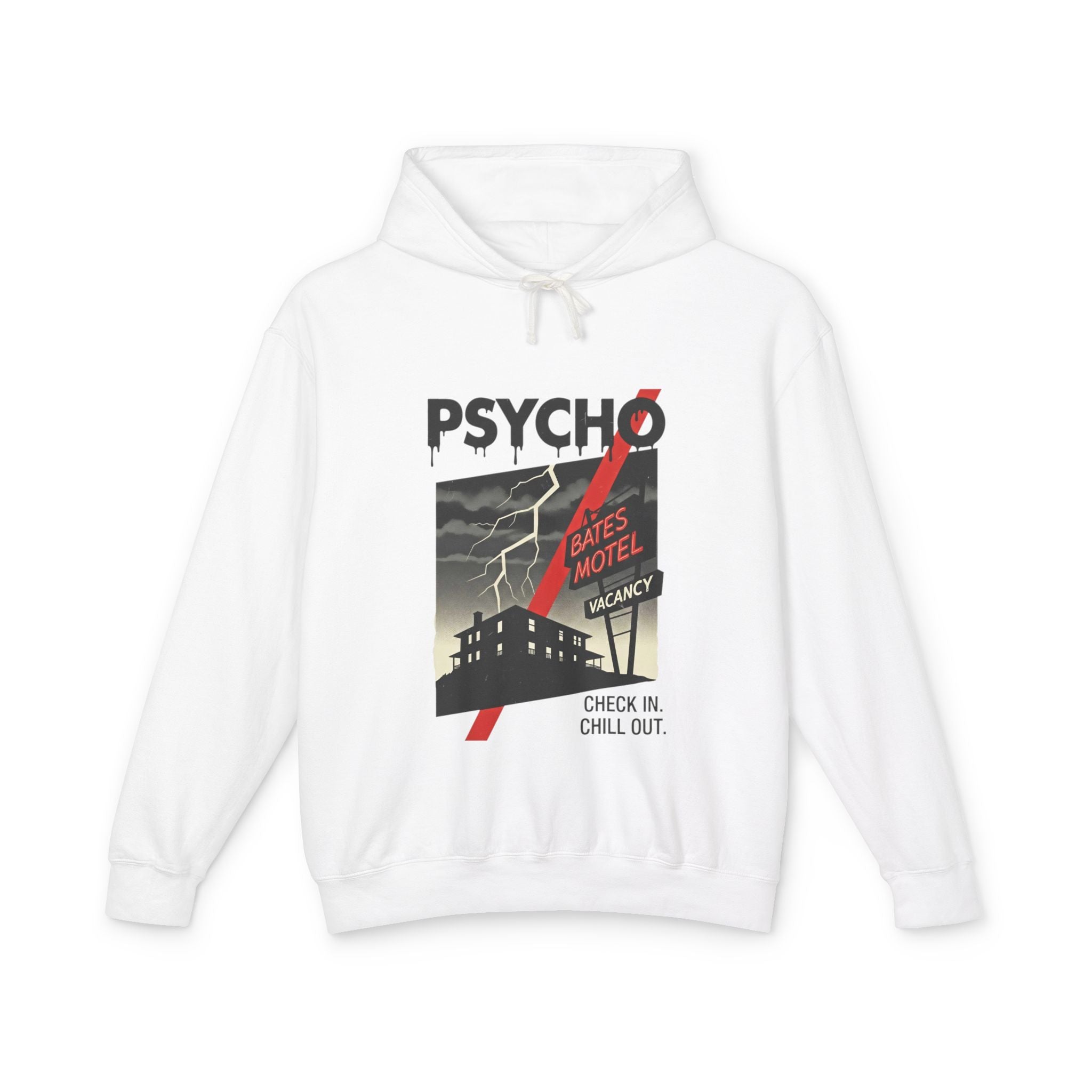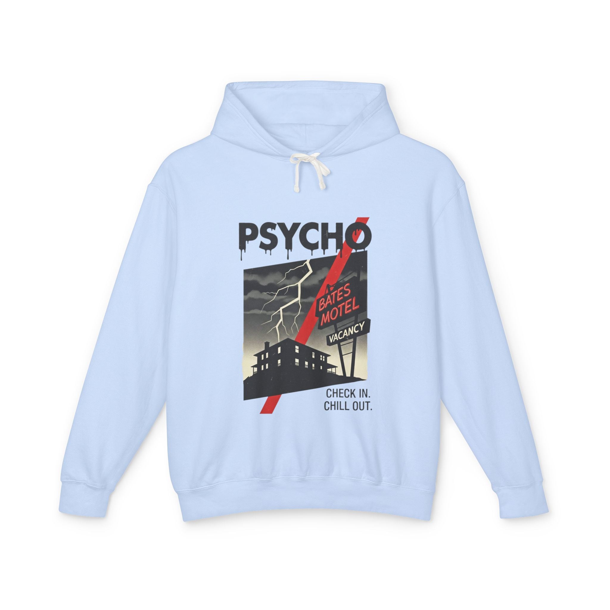 Psycho-Themed Lightweight Hoodie, Cozy Horror Apparel, Unisex Sweatshirt, Perfect for Movie Lovers, Halloween Costume, Gift for Fans