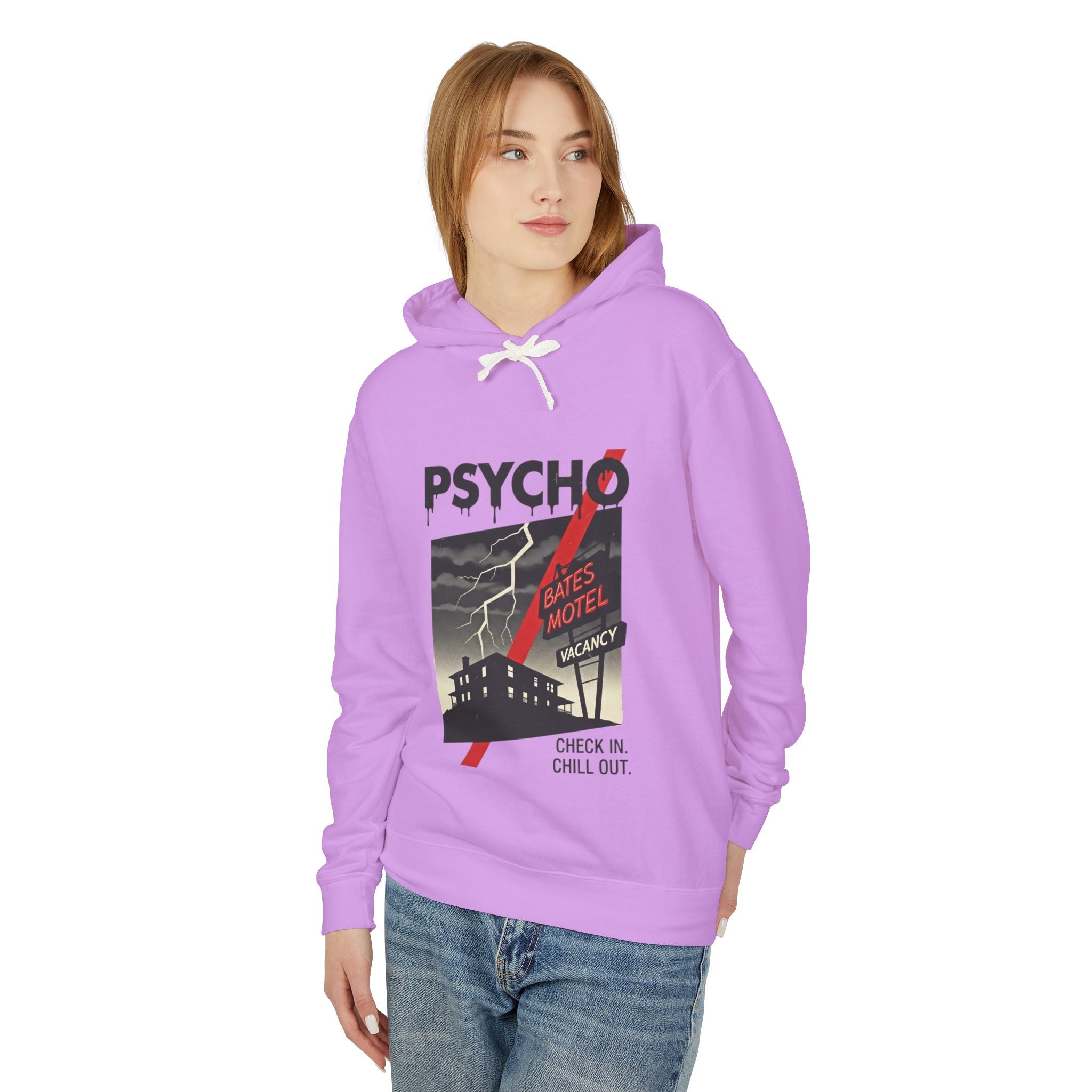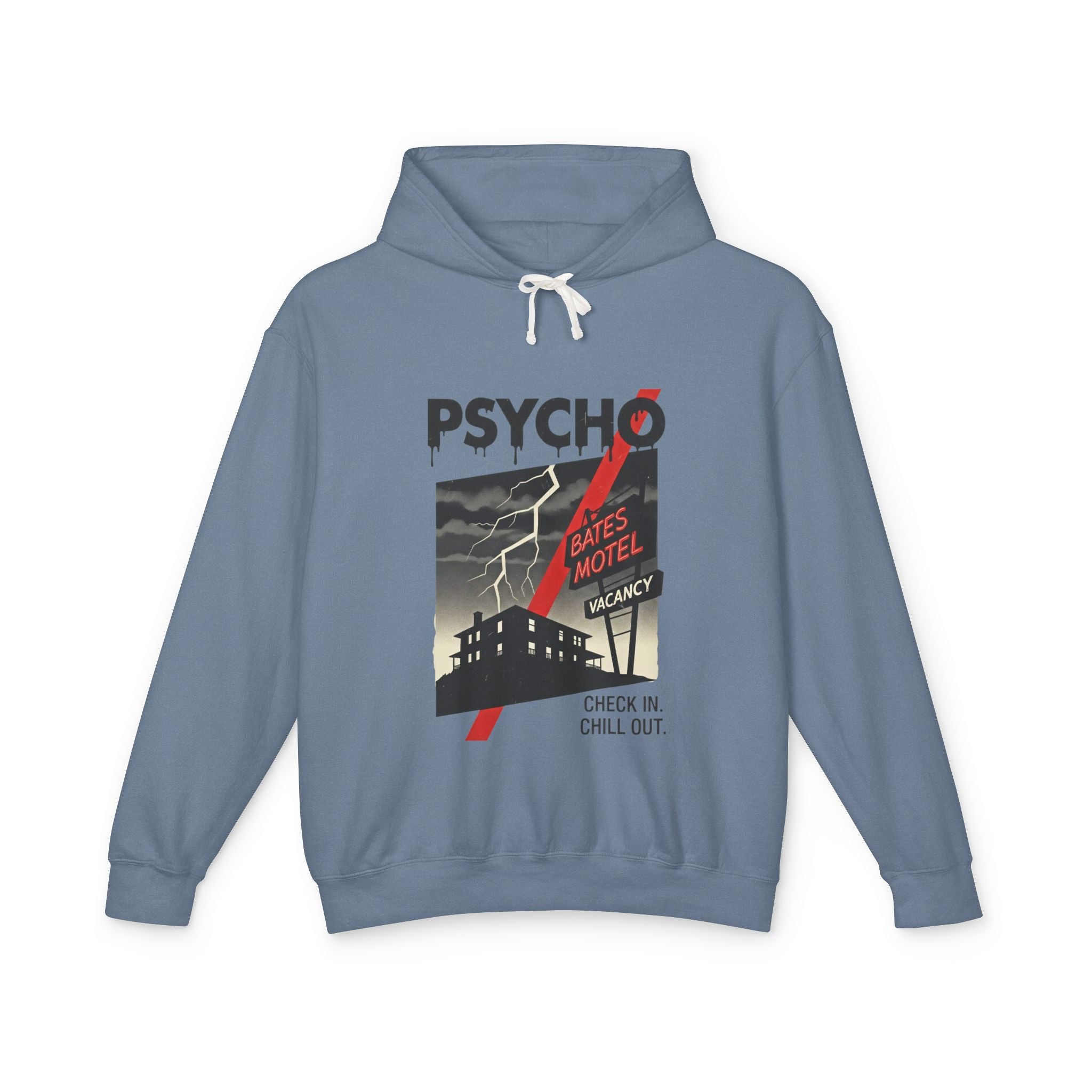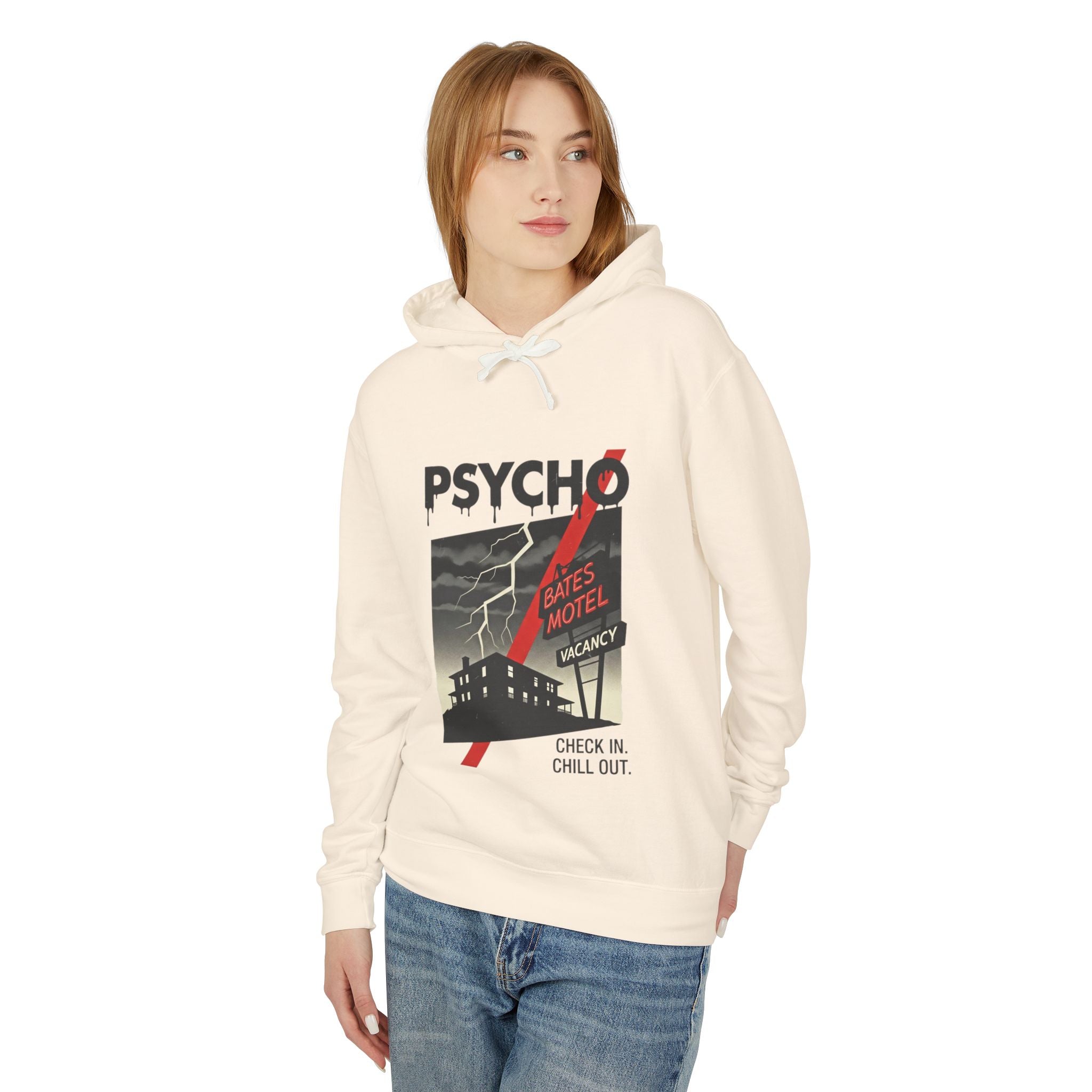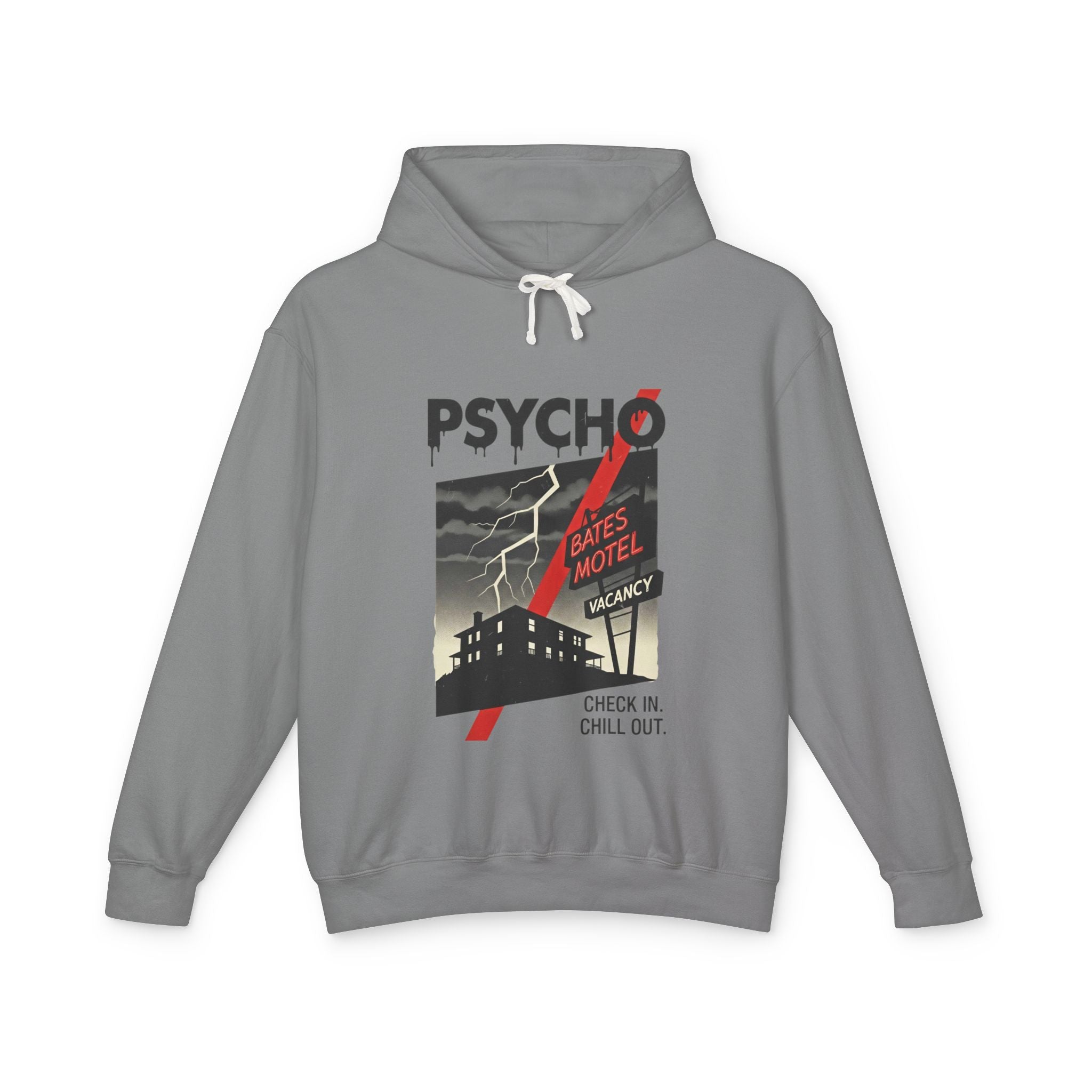 Psycho-Themed Lightweight Hoodie, Cozy Horror Apparel, Unisex Sweatshirt, Perfect for Movie Lovers, Halloween Costume, Gift for Fans