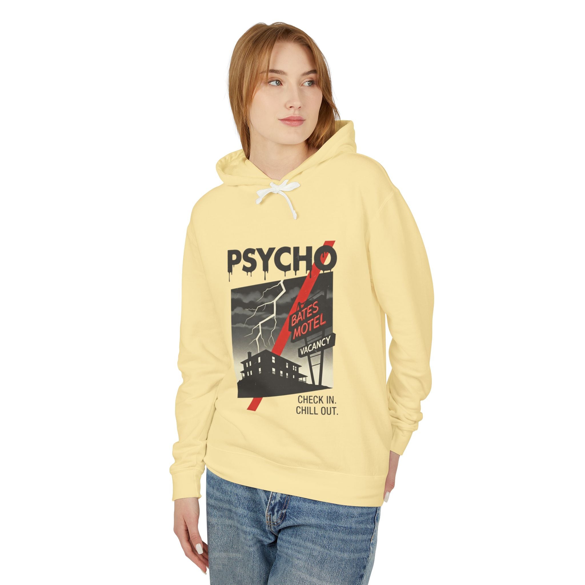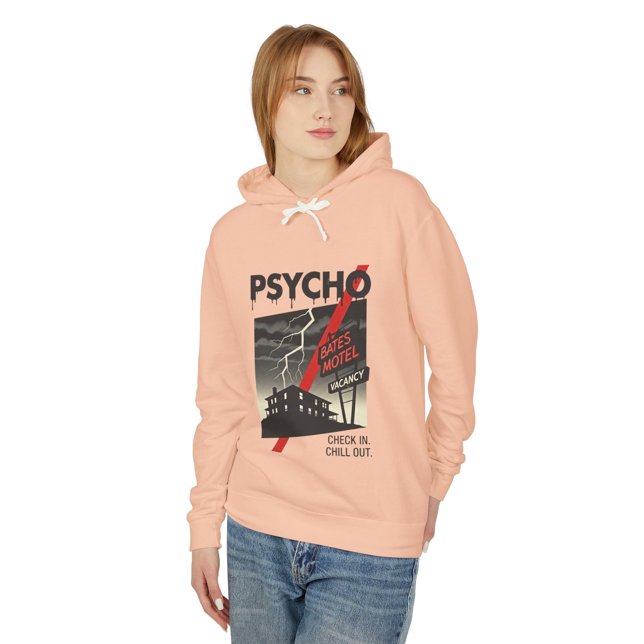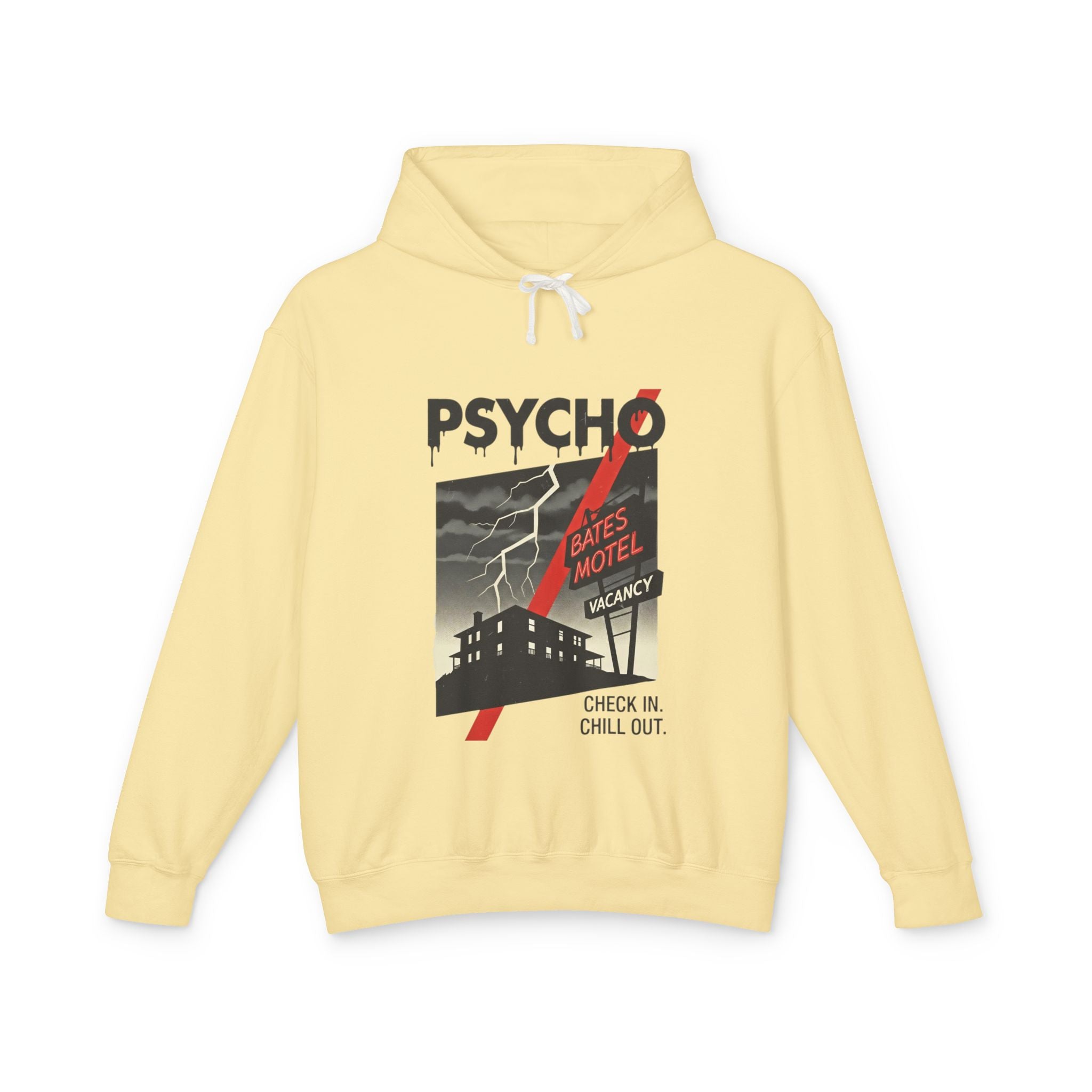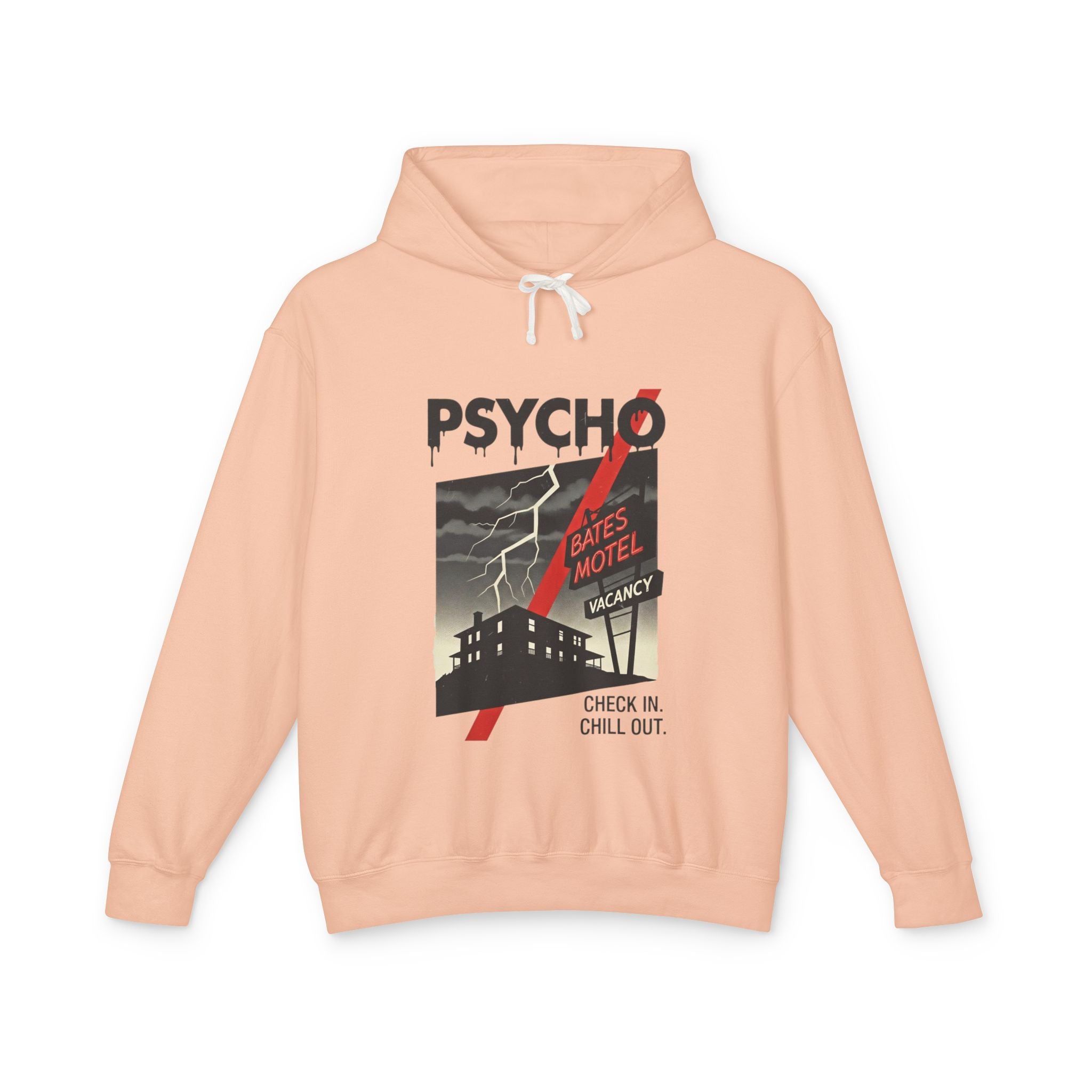 Psycho-Themed Lightweight Hoodie, Cozy Horror Apparel, Unisex Sweatshirt, Perfect for Movie Lovers, Halloween Costume, Gift for Fans