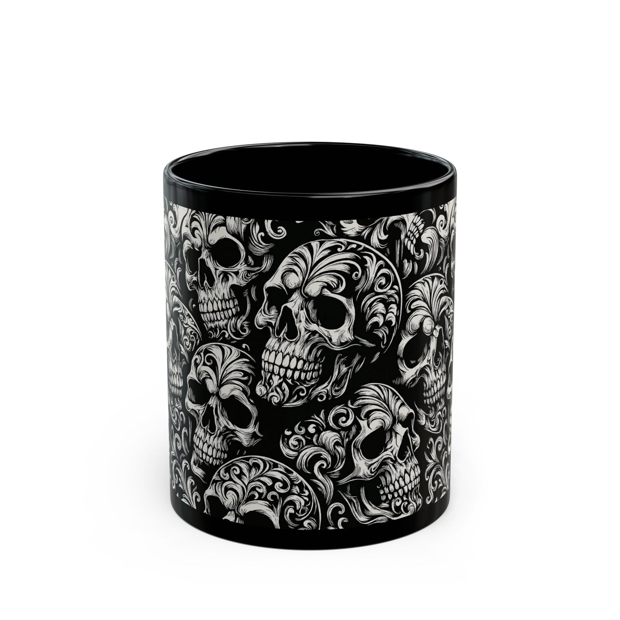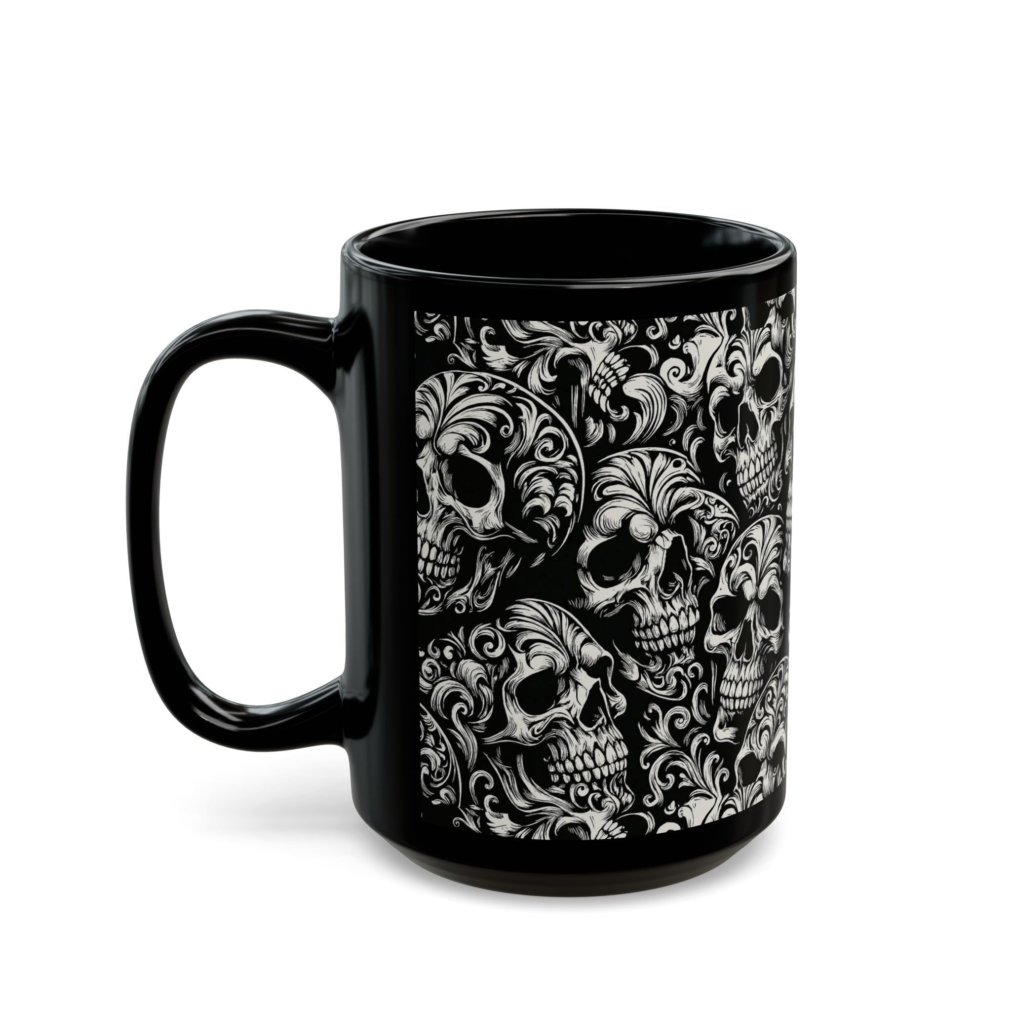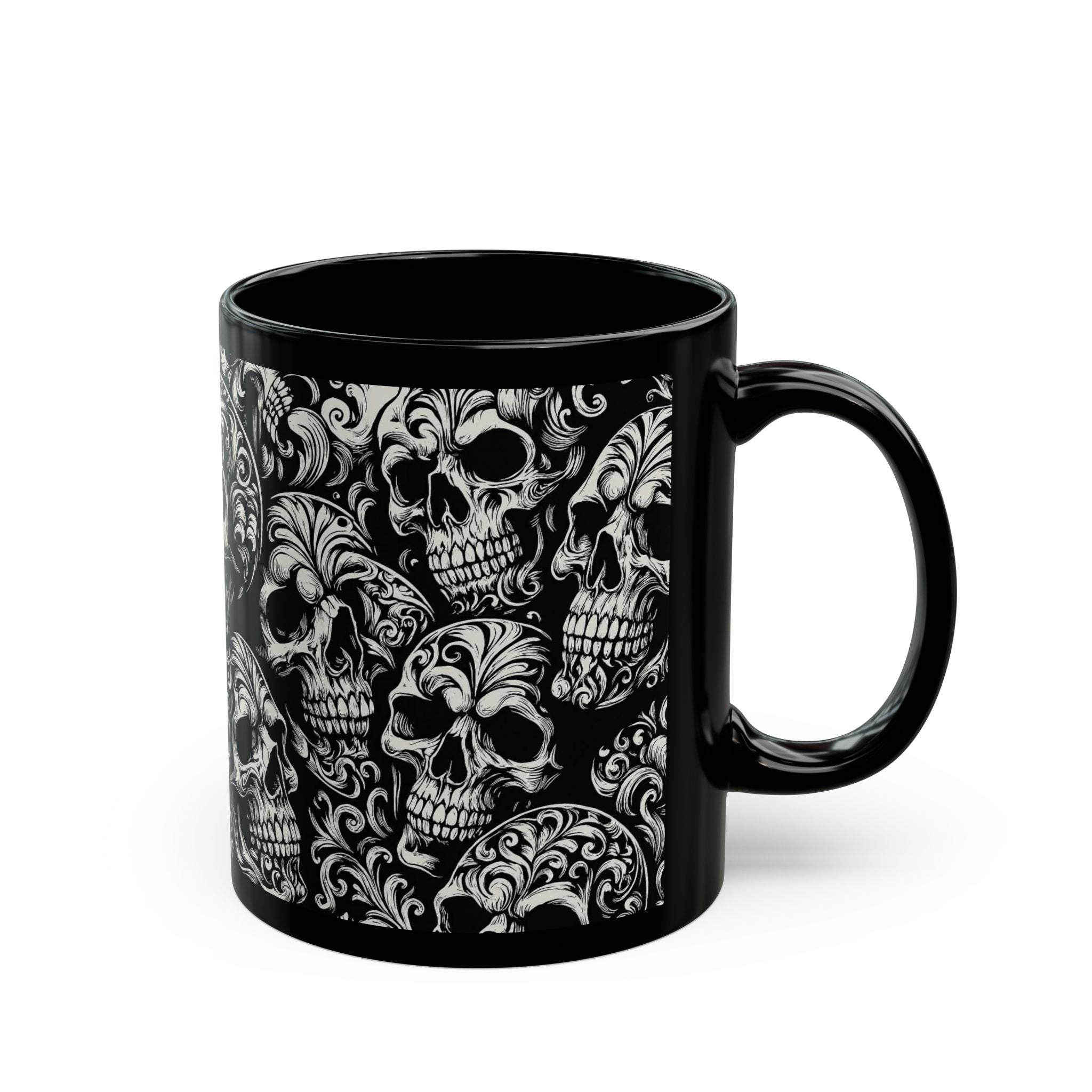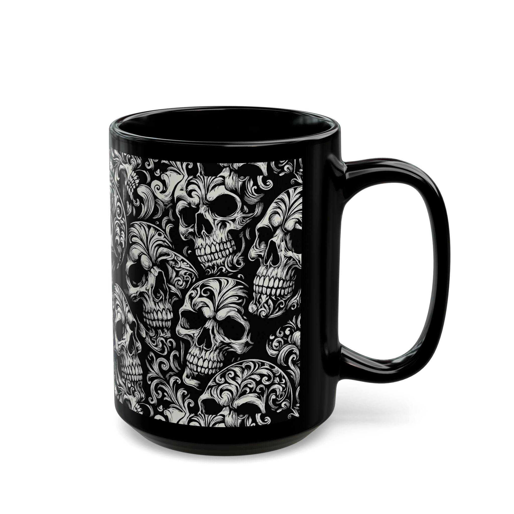 Summerween Gothic Skull Mug, Unique Coffee Cup for Halloween, Gift for Skulls Enthusiasts, Black Ceramic Mug for Home Decor, Edgy Drinkware