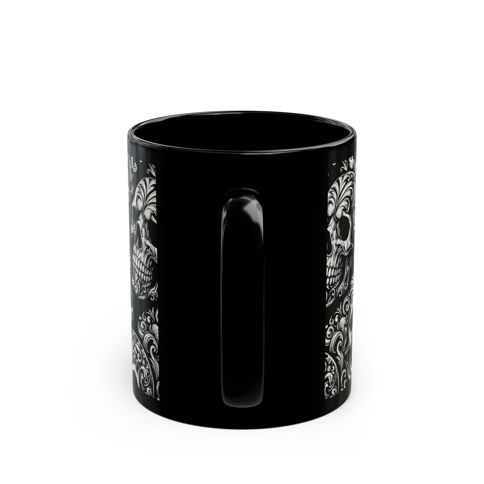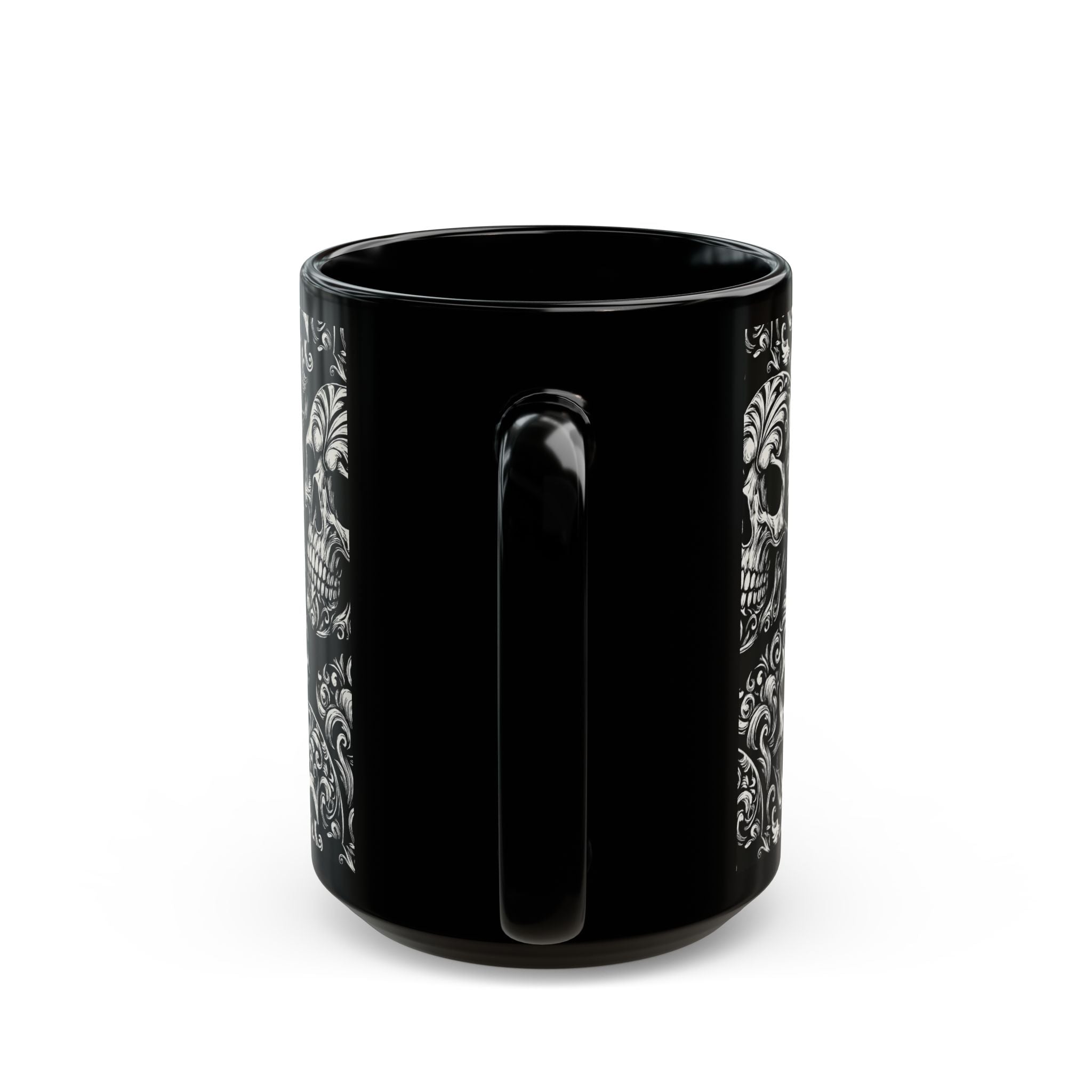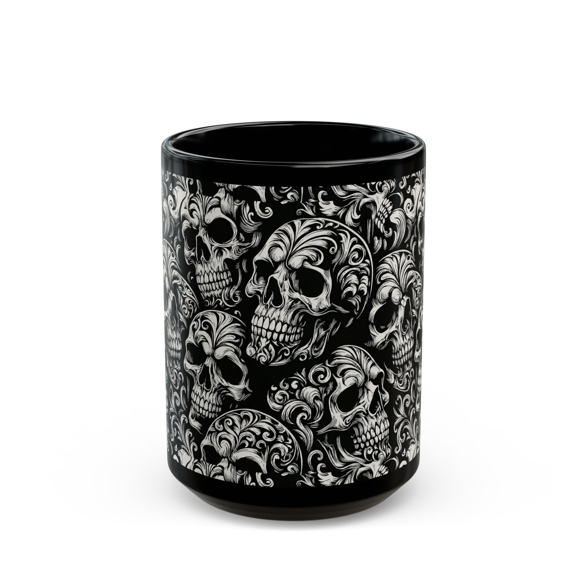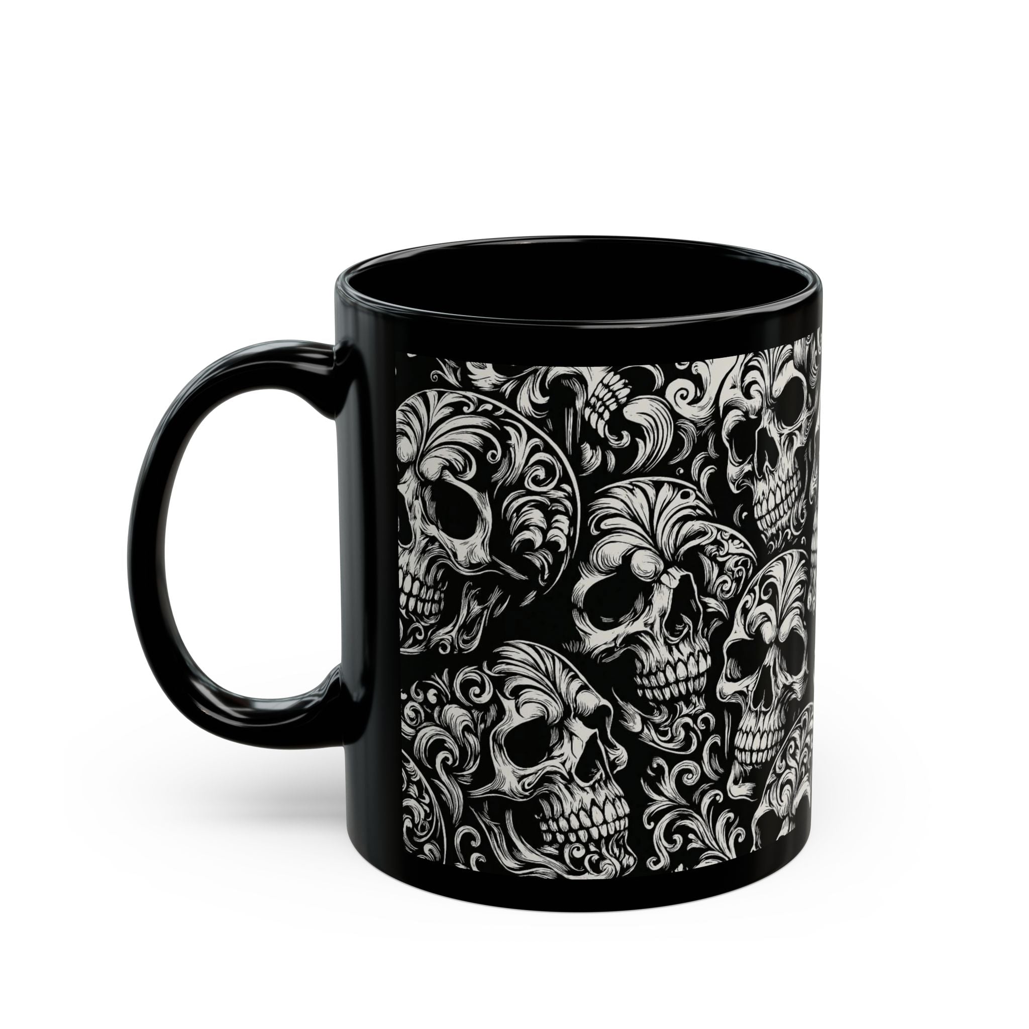 Summerween Gothic Skull Mug, Unique Coffee Cup for Halloween, Gift for Skulls Enthusiasts, Black Ceramic Mug for Home Decor, Edgy Drinkware