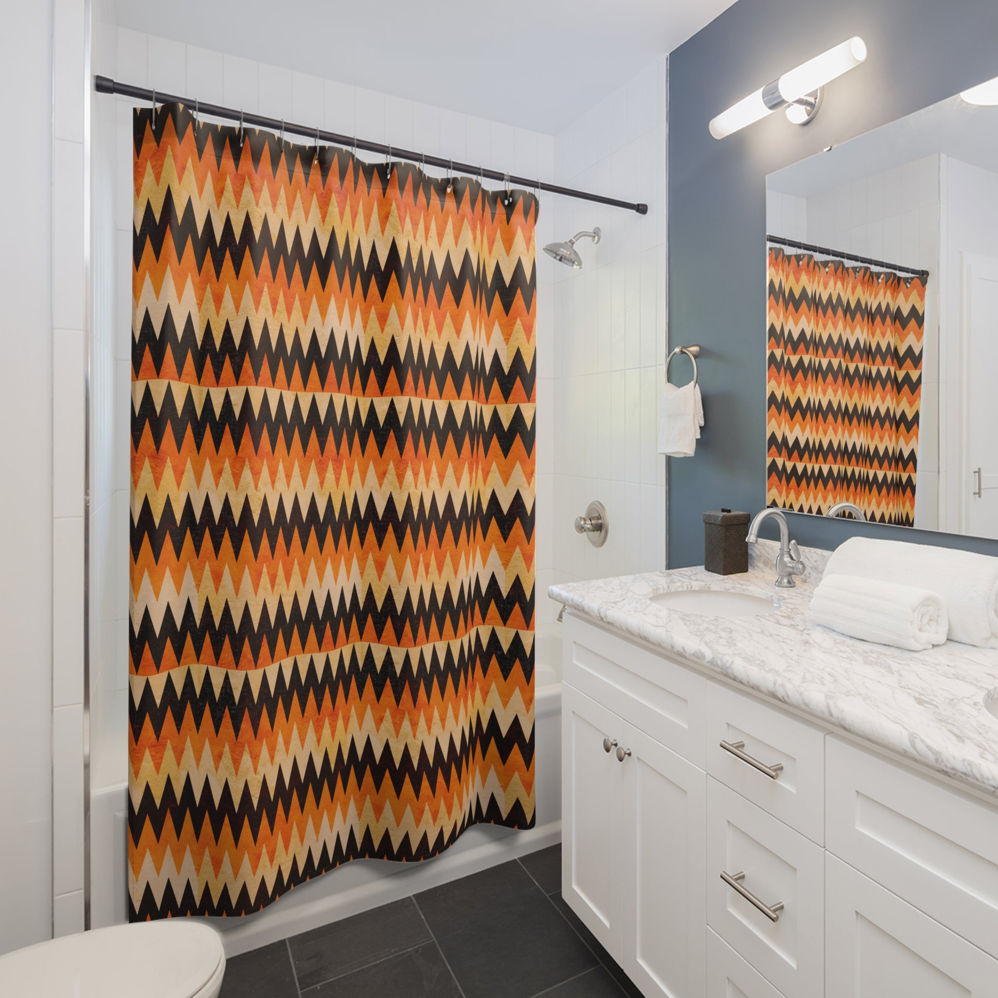 Vibrant Chevron Shower Curtain, Boho Bathroom Decor, Modern Home Accent, Geometric Design, Autumn Vibes, Gift Idea