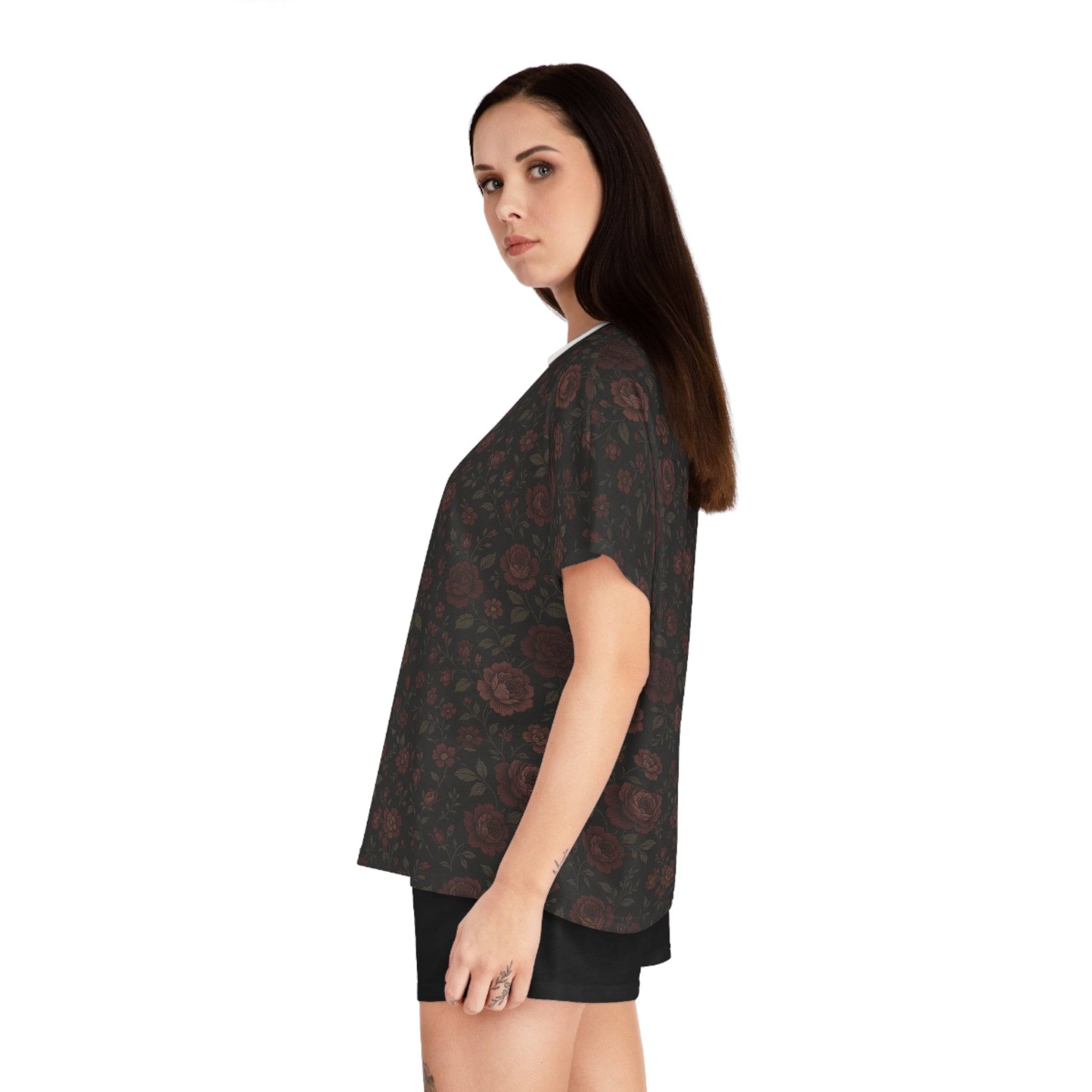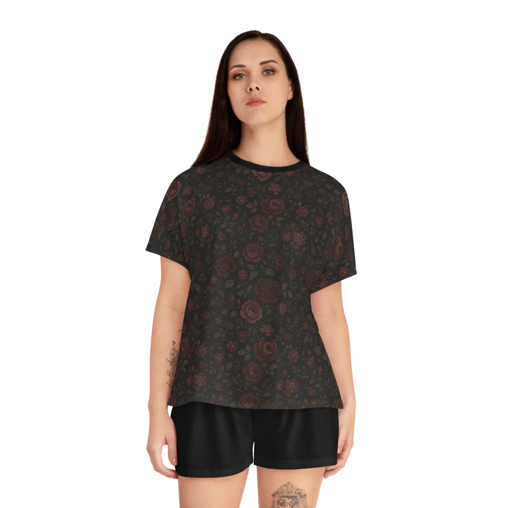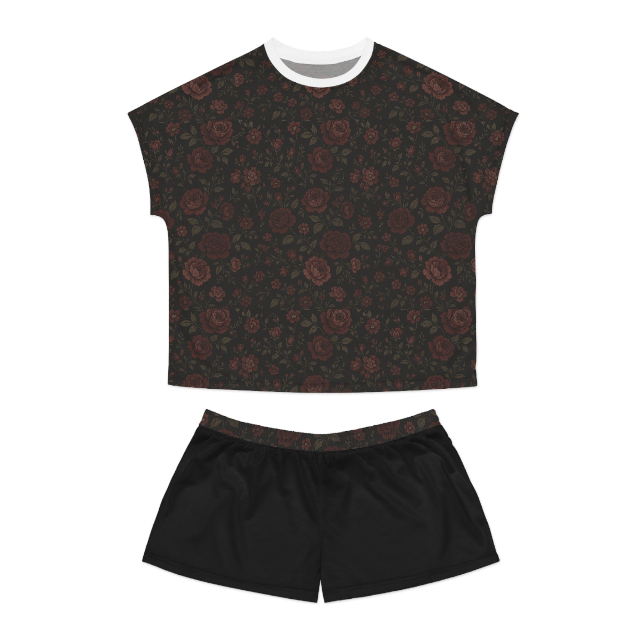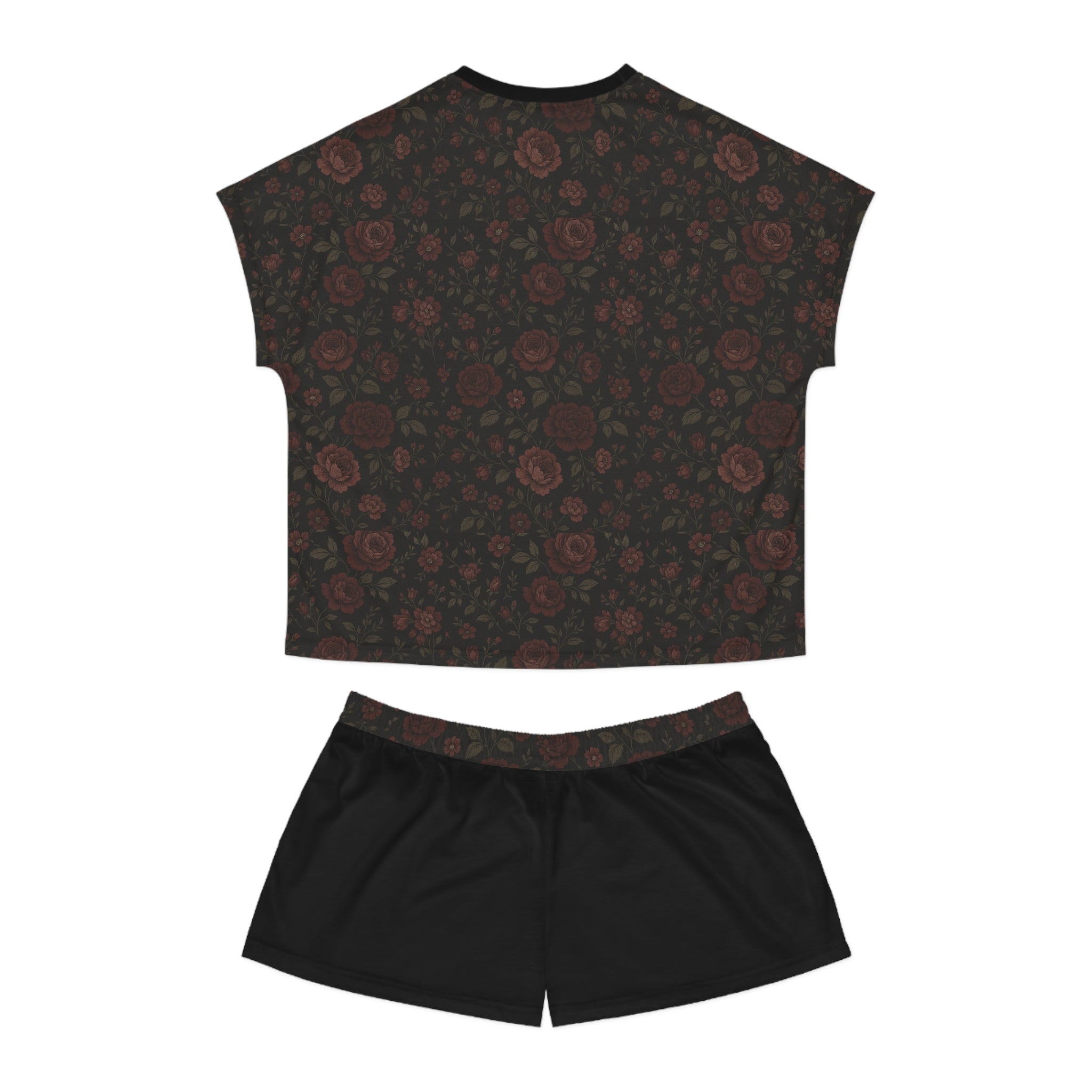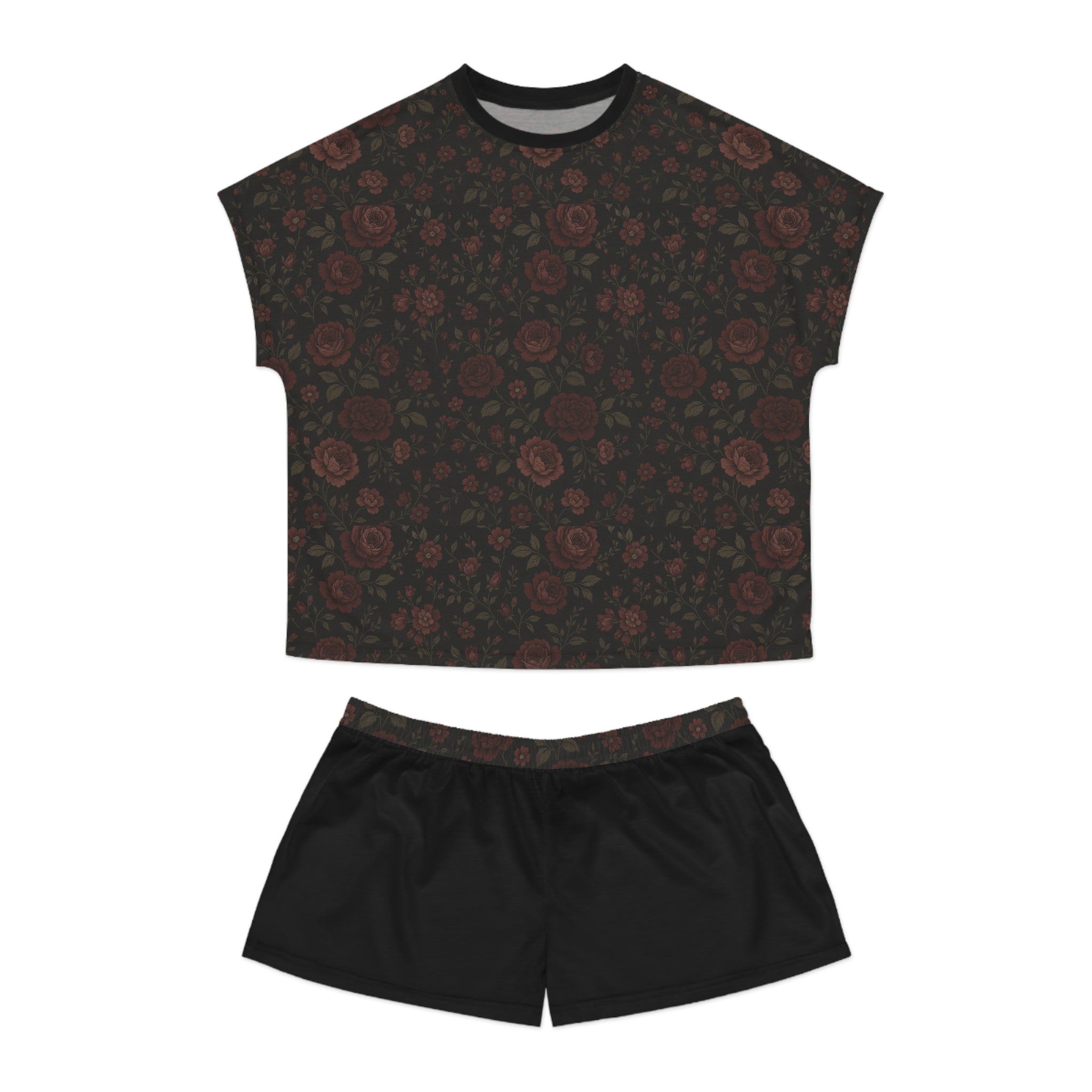 • Gothic Gardens Elegant Women's Short Pajama Set - Valarie Cozy Sleepwear with Stylish Floral Pattern