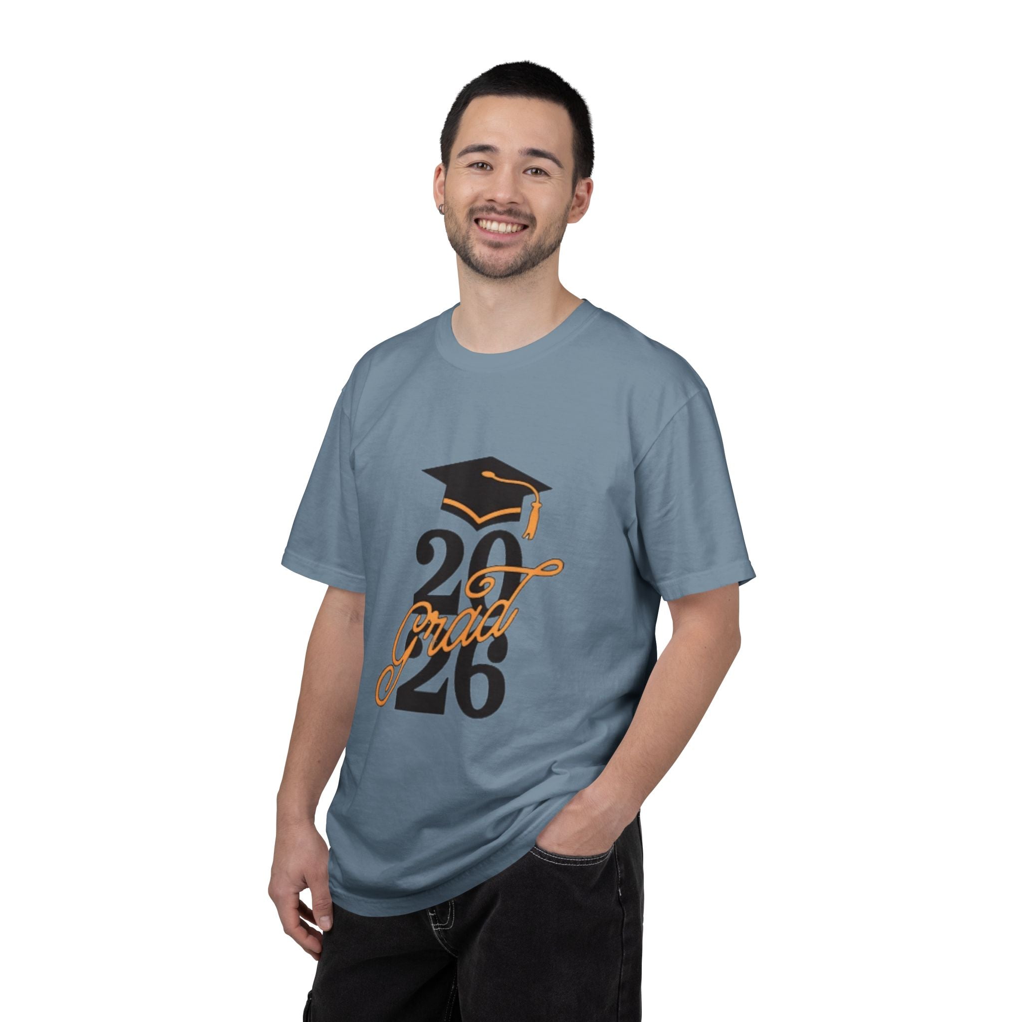 Celebrate moments that matter with a garment-dyed tee that feels lived-in from the first wear. This relaxed-fit shirt has a soft, vintage hand from being dyed after construction, and a substantial midweight feel that hangs nicely whether you're at rehearsal, senior events, or candid photos with friends. The bold “Class of 2026” chest graphic pops against the muted, washed-in color and adds a playful, confident edge. Wear it to late-night study sessions, graduation meetups, or while making memories in the months leading up to the ceremony — it’s built to last through many washes and adventures.