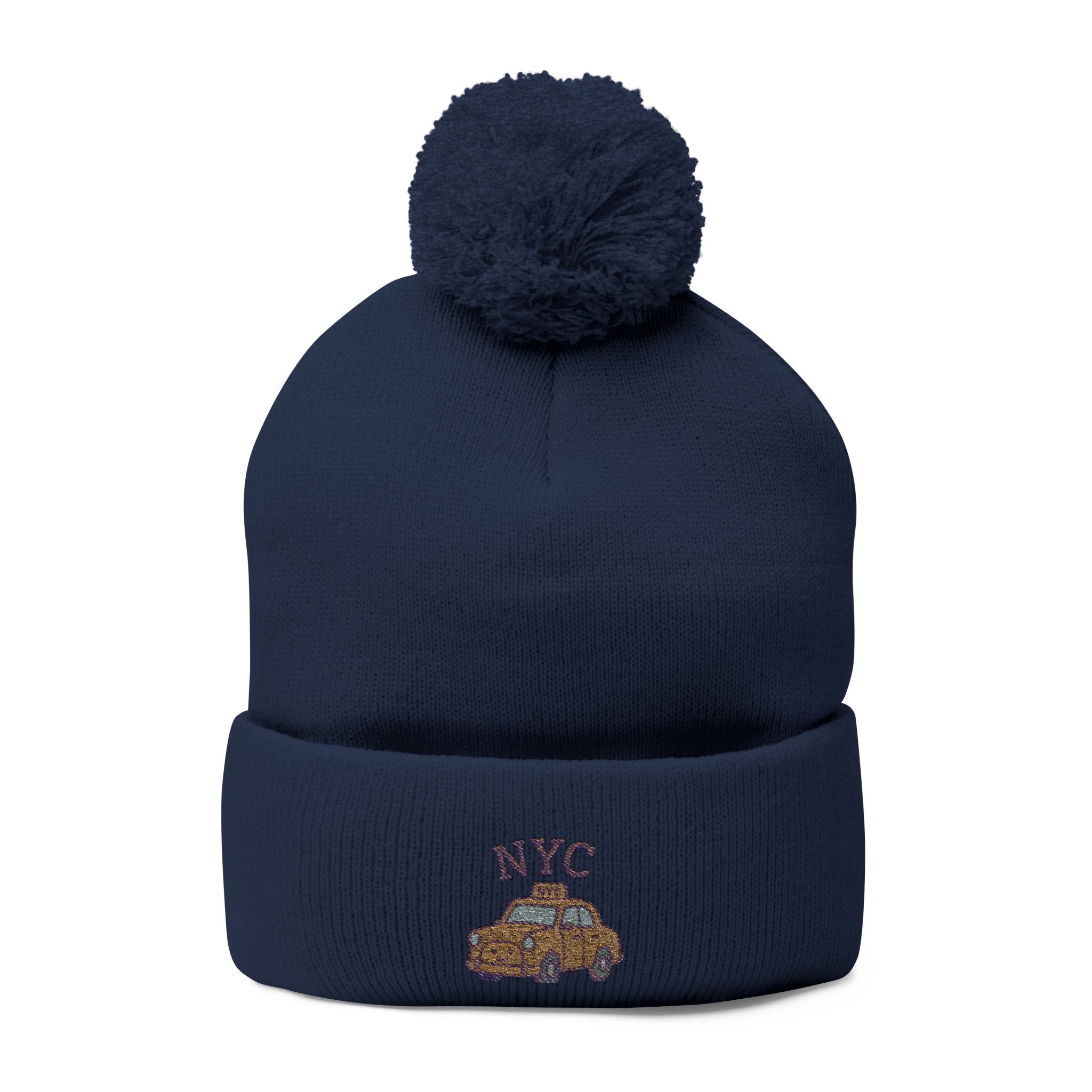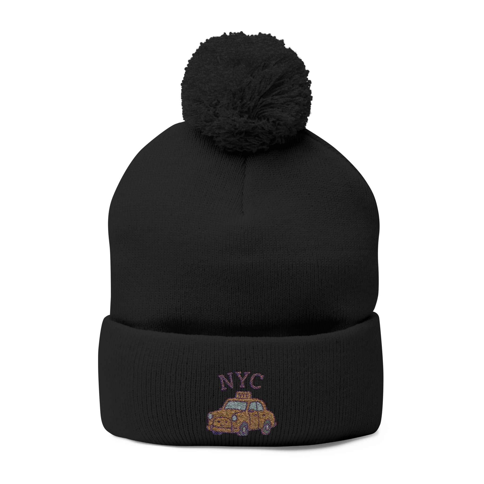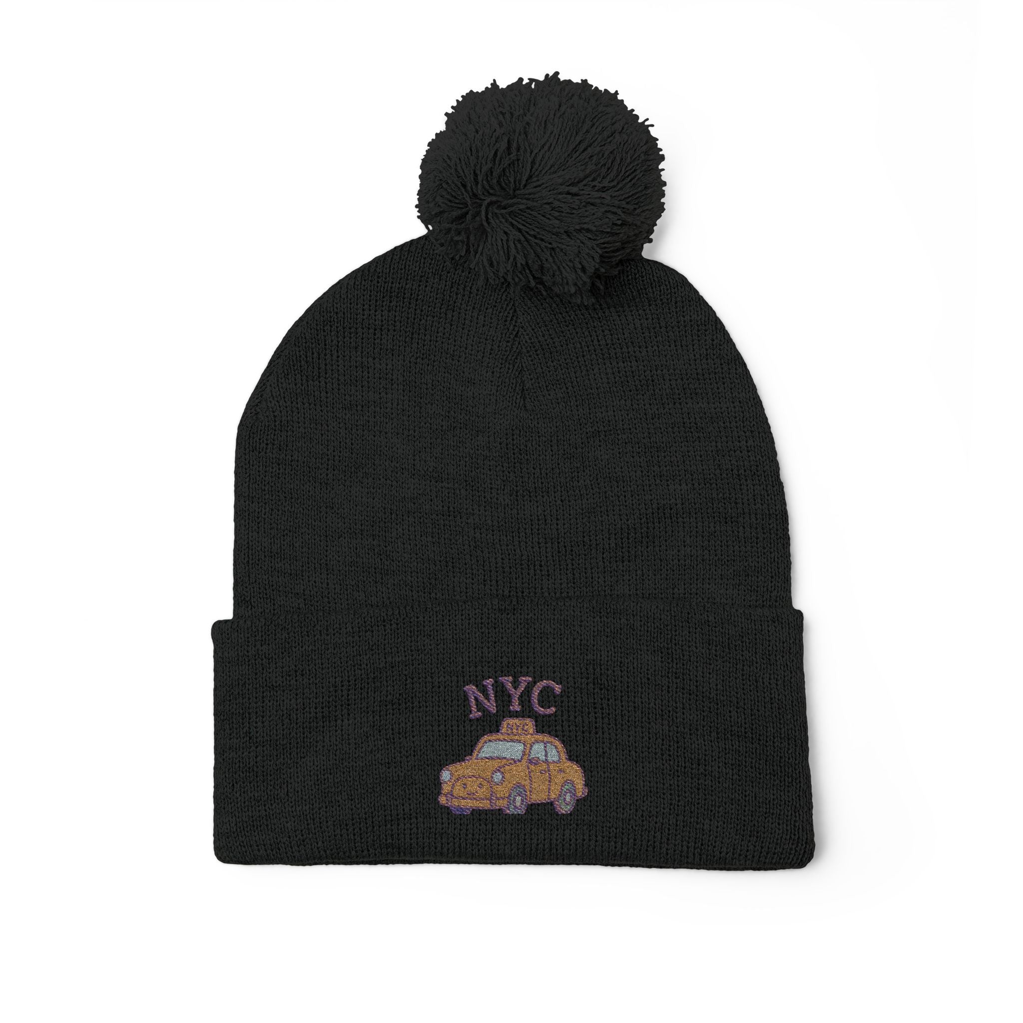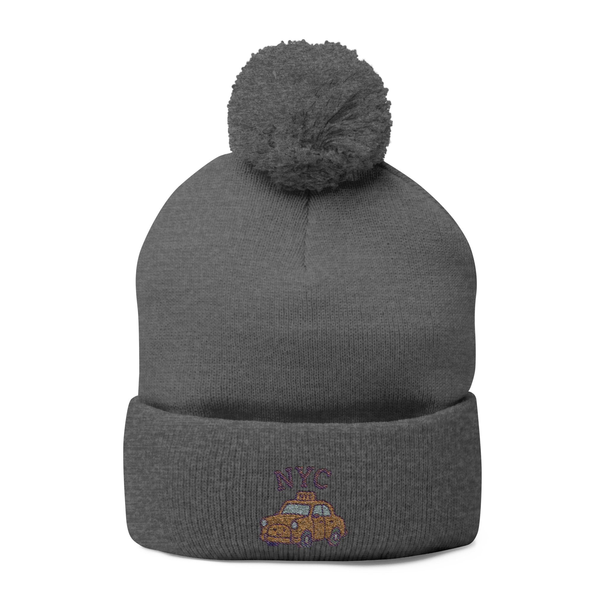 Cozy NYC Pom-Pom Knit Cap, Winter Hat, Embroidered Beanie