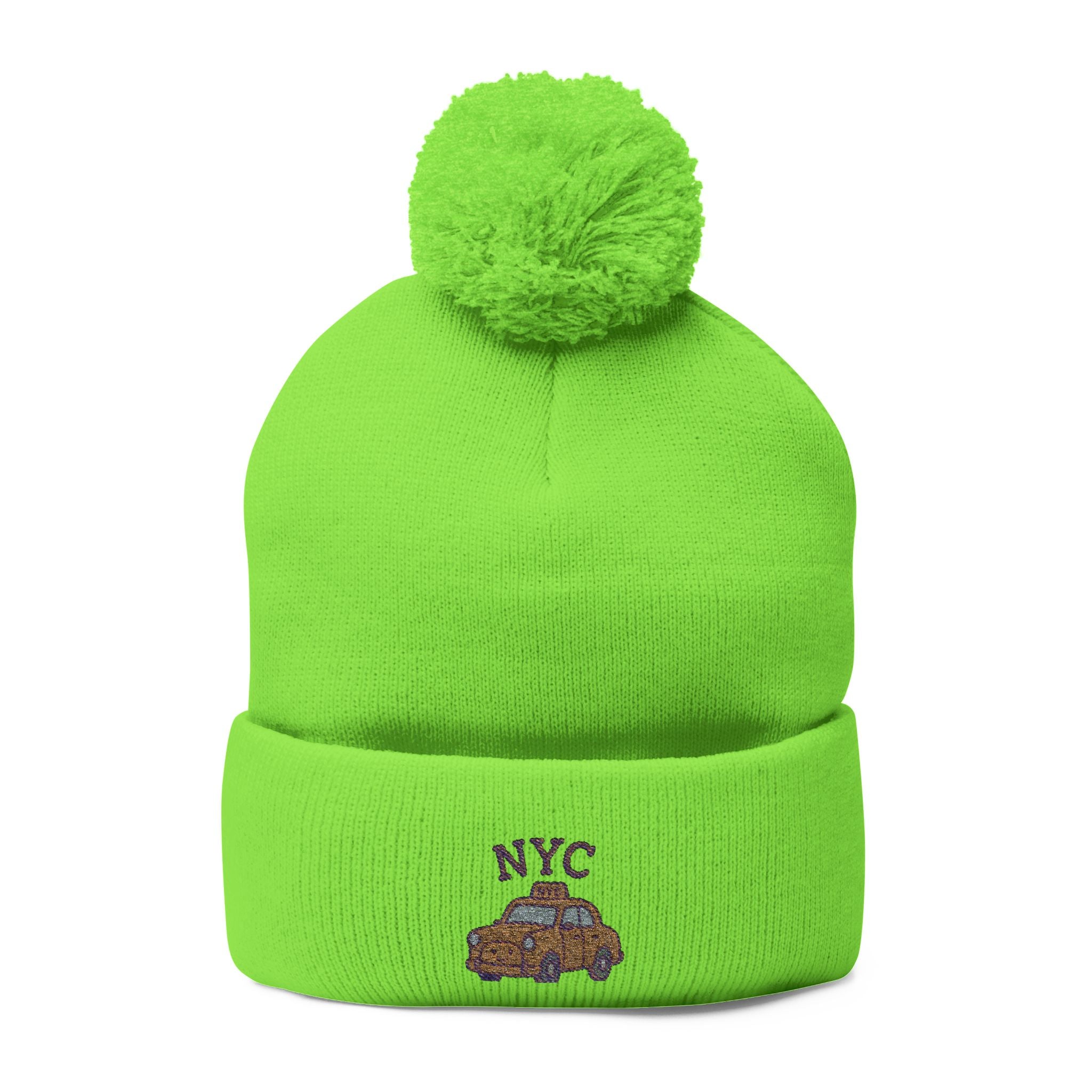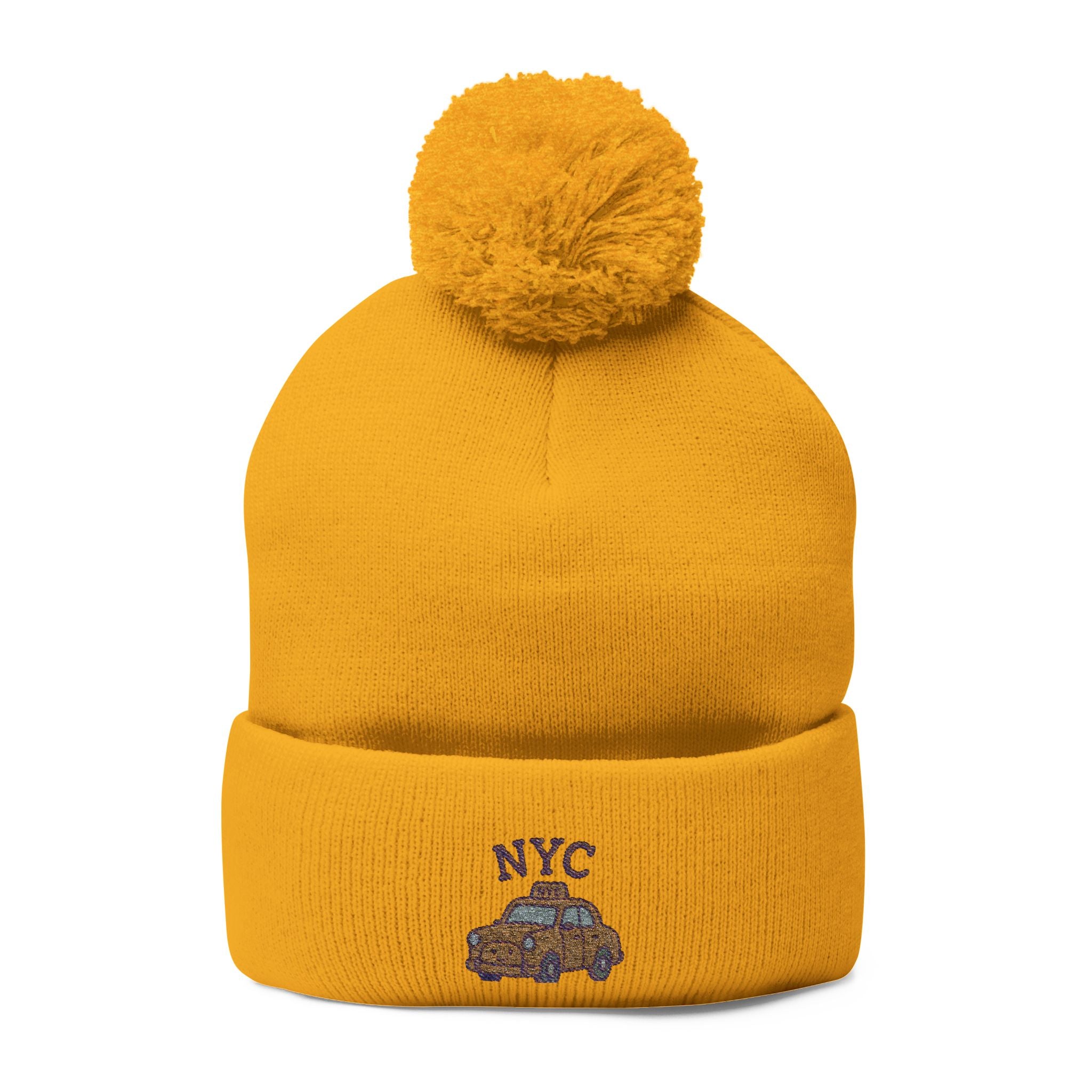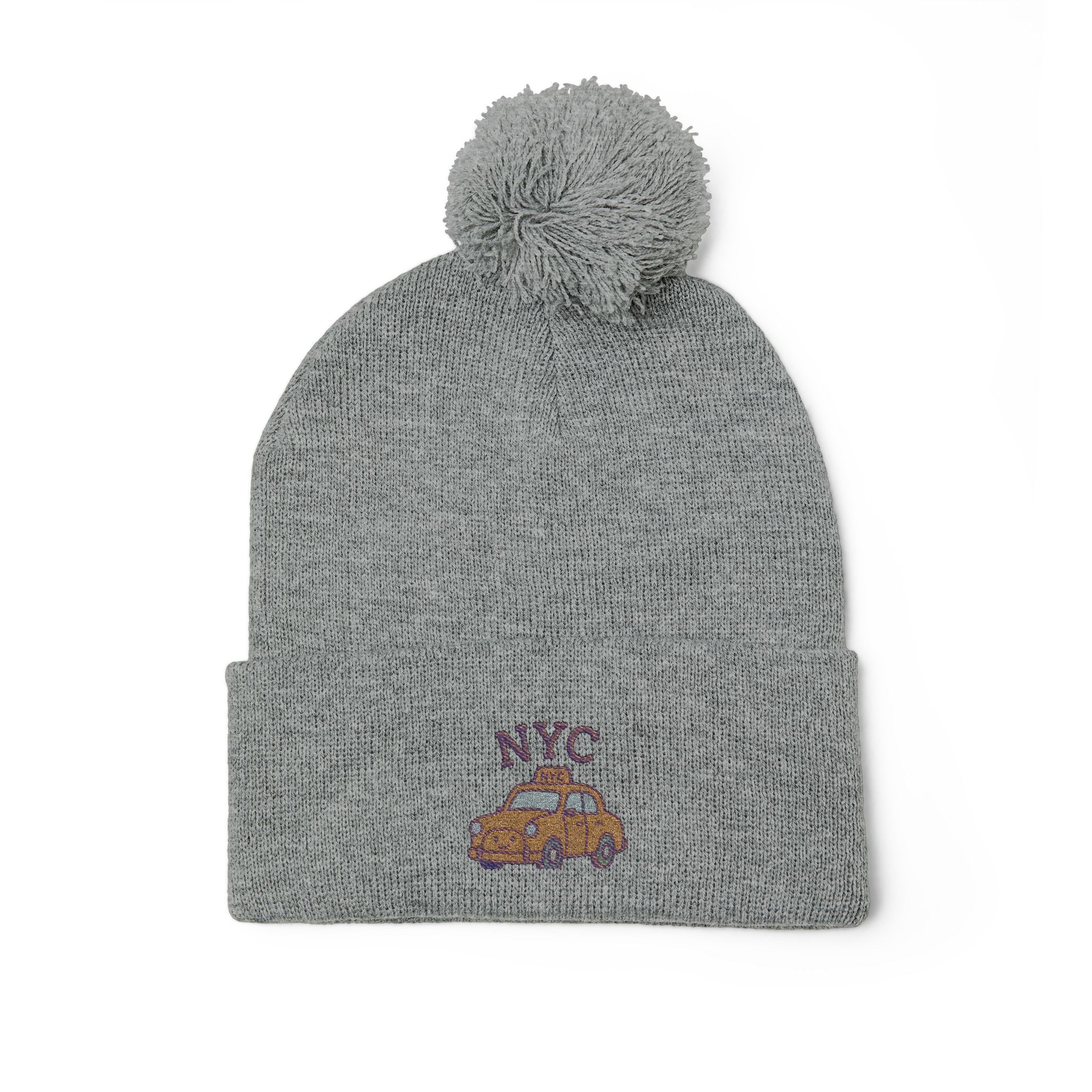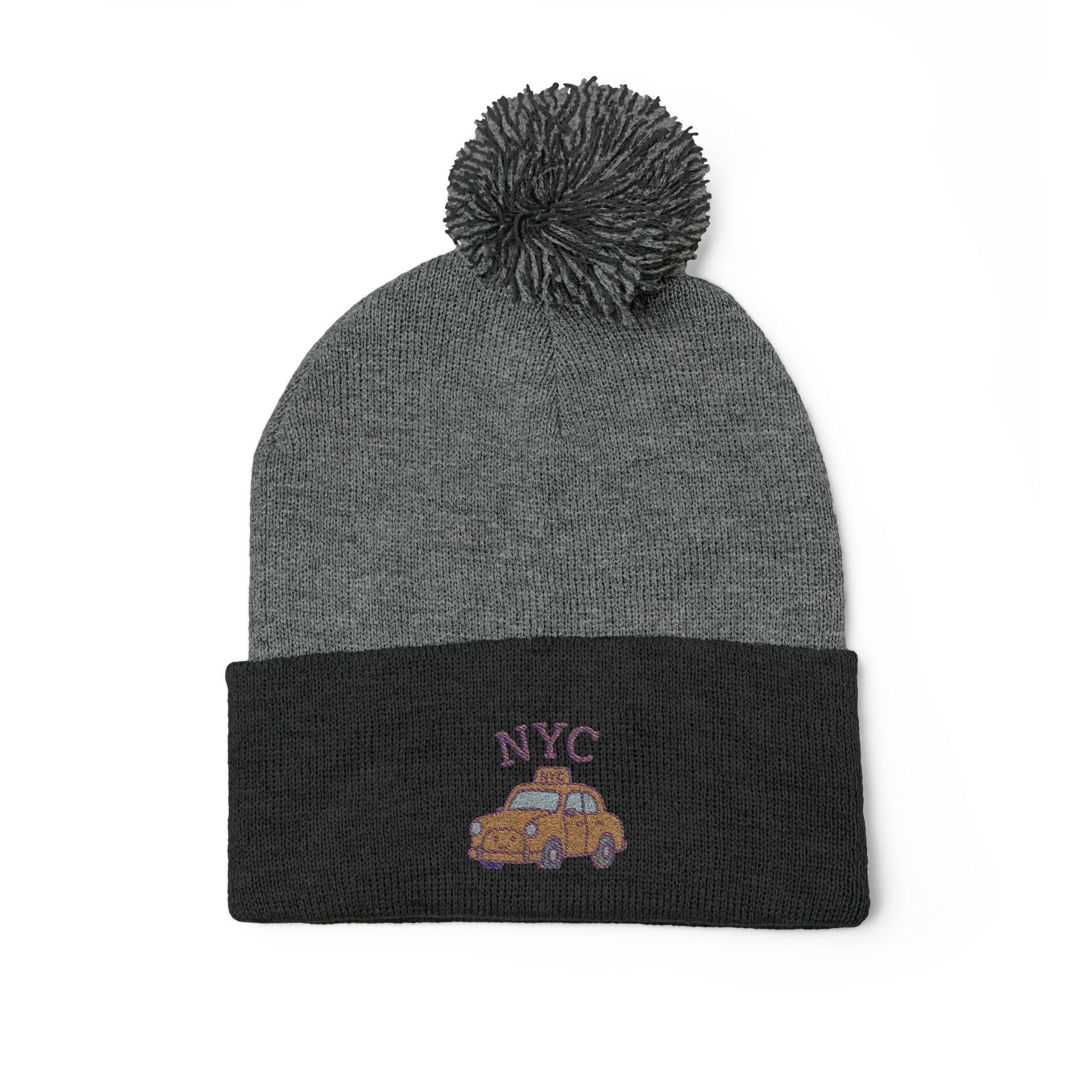 Cozy NYC Pom-Pom Knit Cap, Winter Hat, Embroidered Beanie