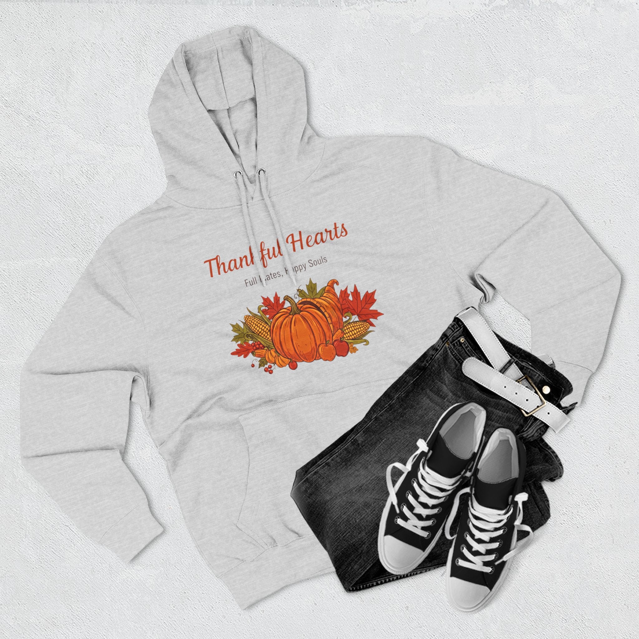 Thankful Hearts Fall Fleece Hoodie, Autumn Apparel, Cozy Gift, Thanksgiving Outfit, Fall Fashion, Pumpkin Design