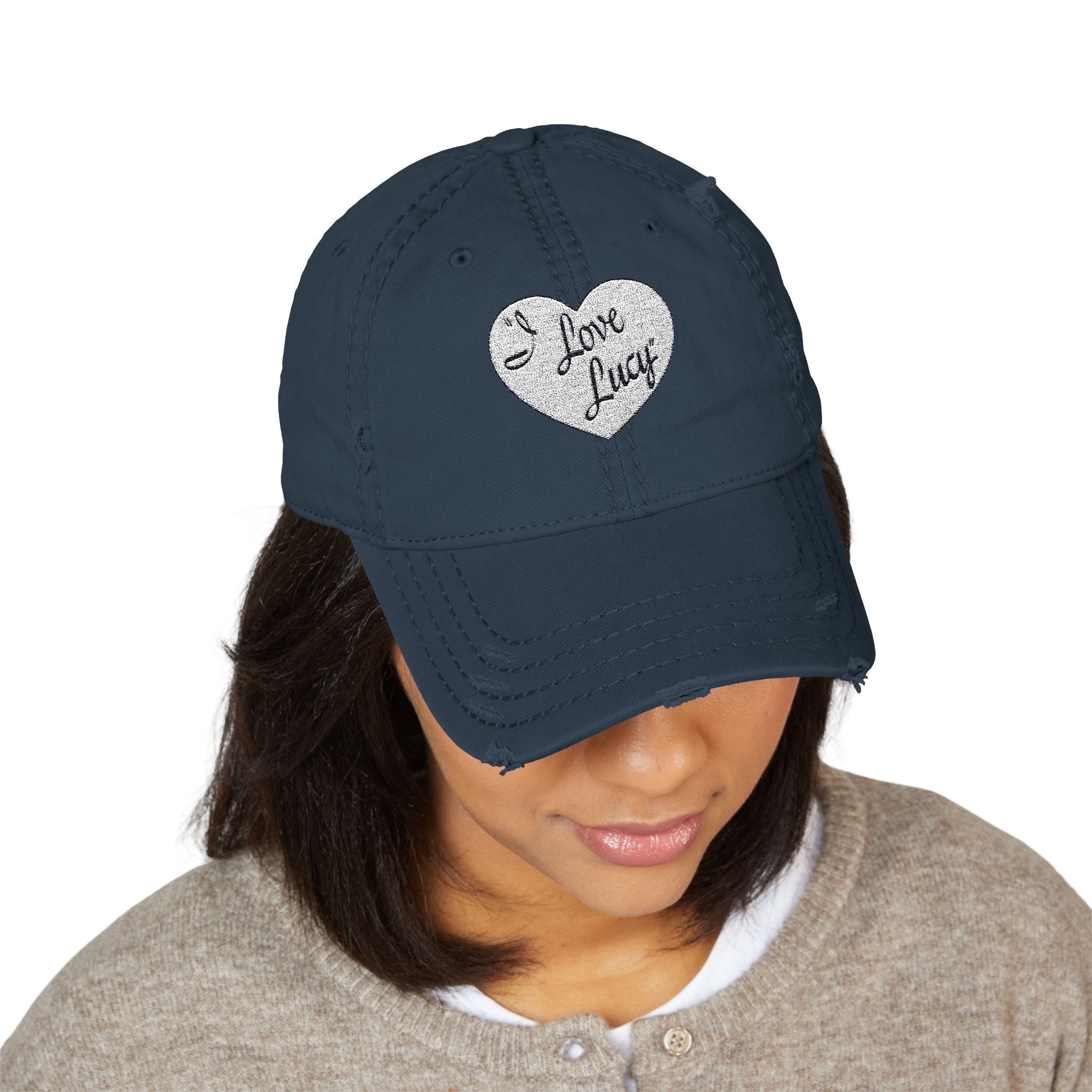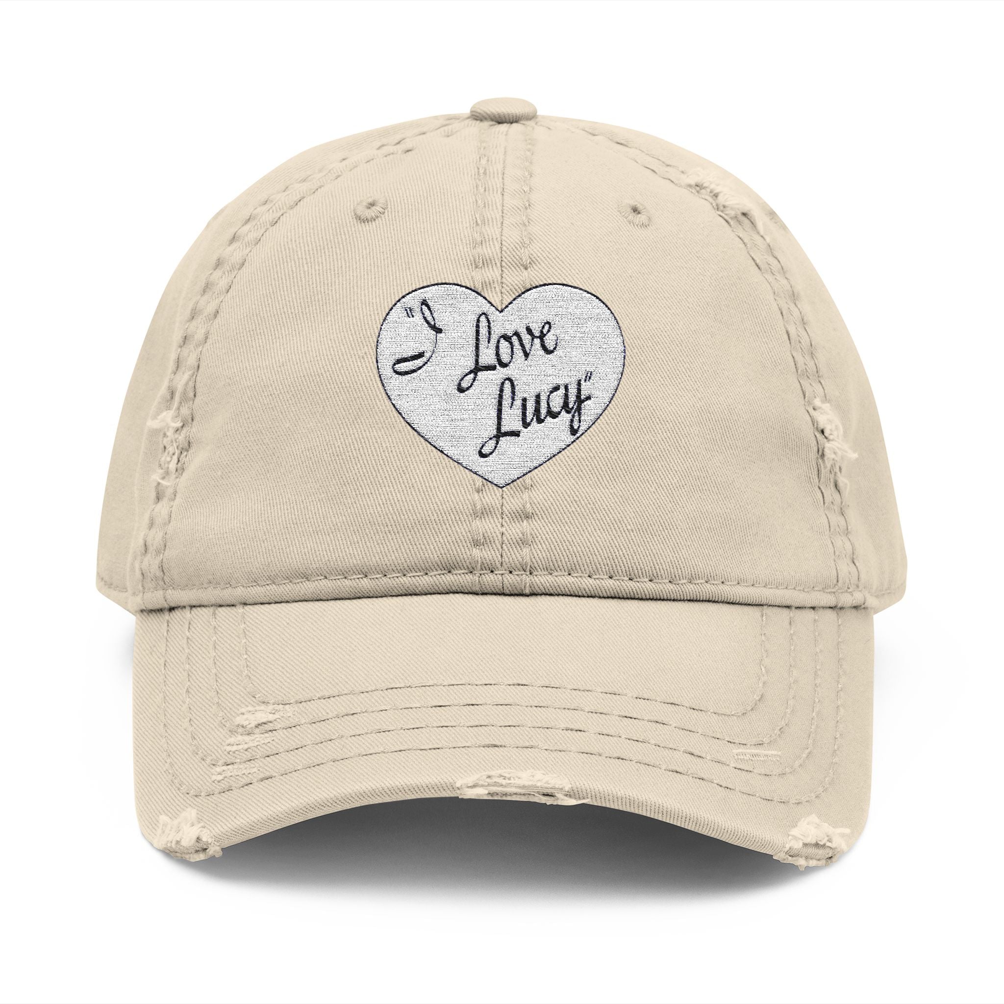 Distressed Dad Hat - Cute 'I Love Lucy' Embroidered Cap, Trendy Baseball Cap, Gift for Parents, Casual Outfit Accessory, Father's Day Gift