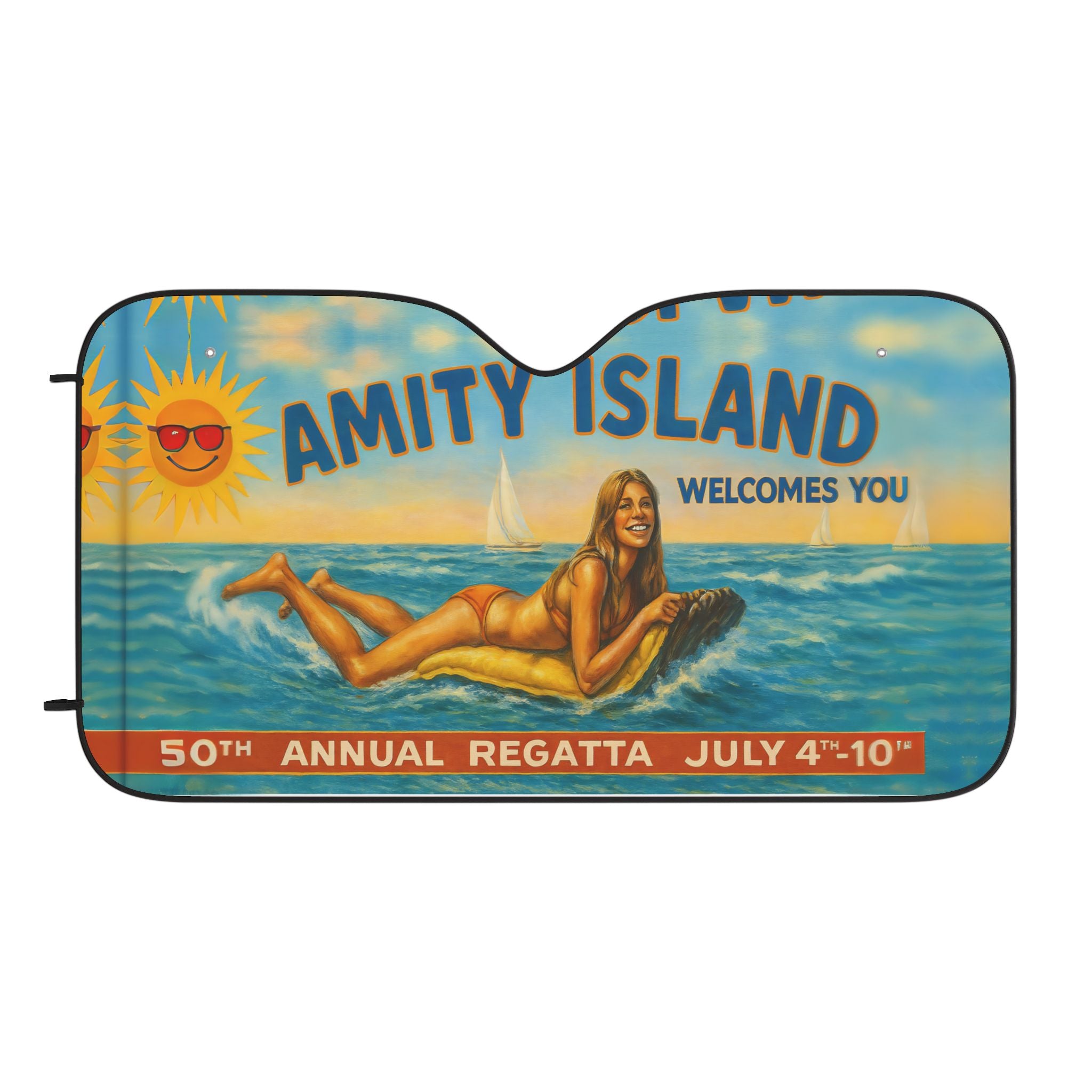 JAws Amity Island 50th Anniversary Car Sun Shades with Summer Vibes, Auto Accessories