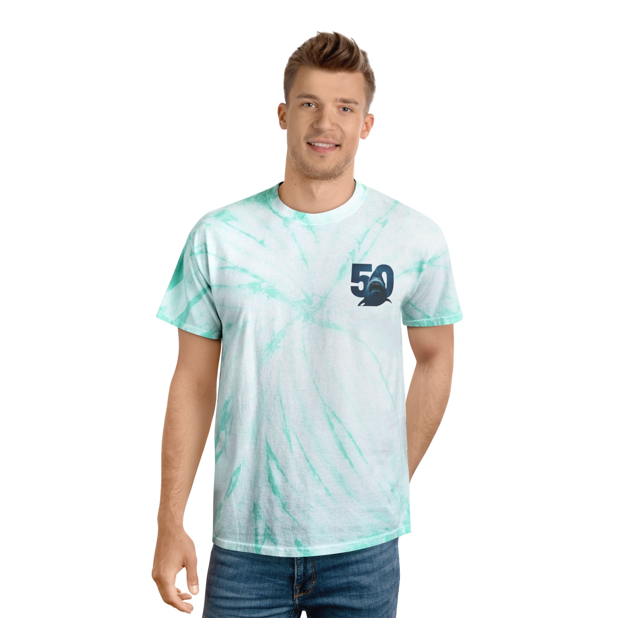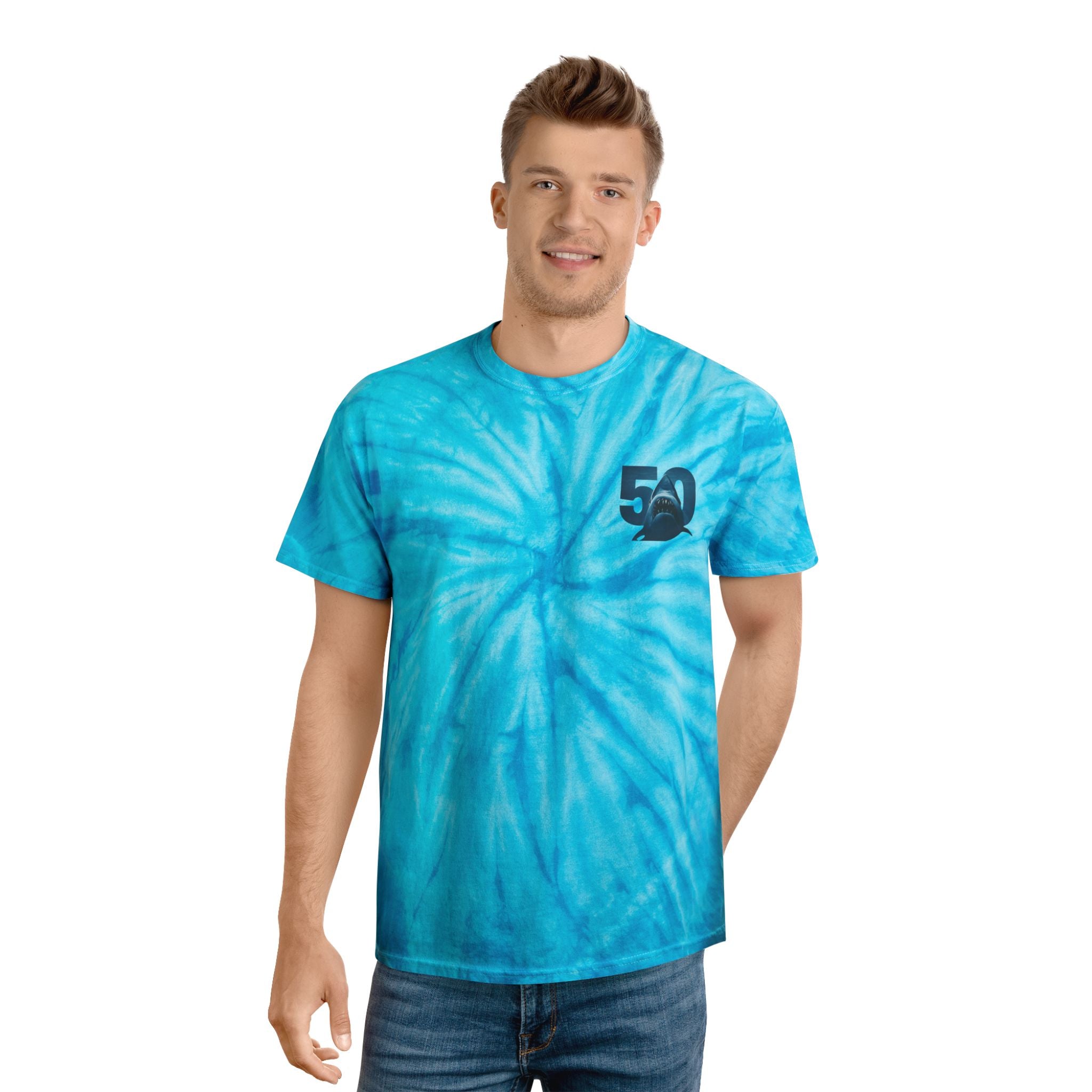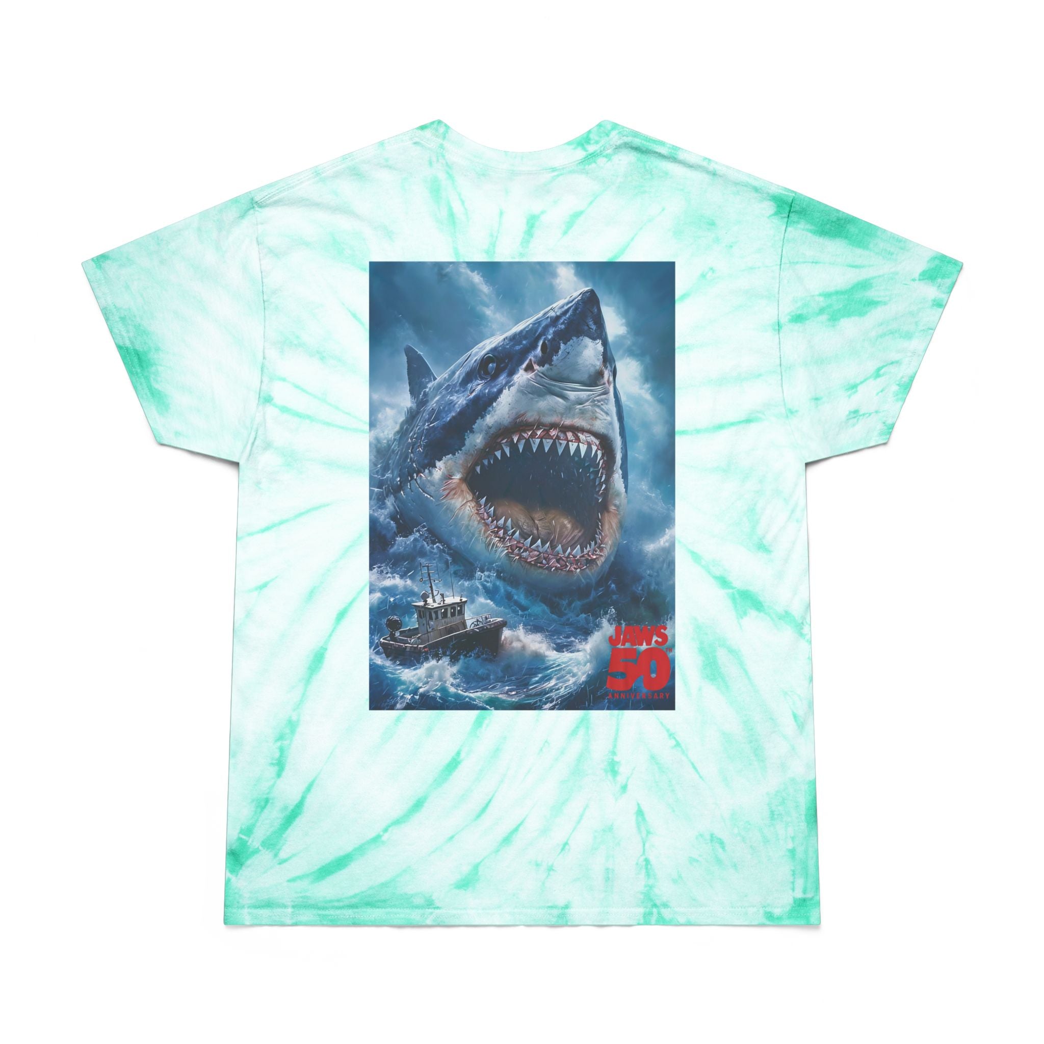 Retro Jaws 50th Anniversary Shark Tie-Dye Tee, Cozy Summer Tee