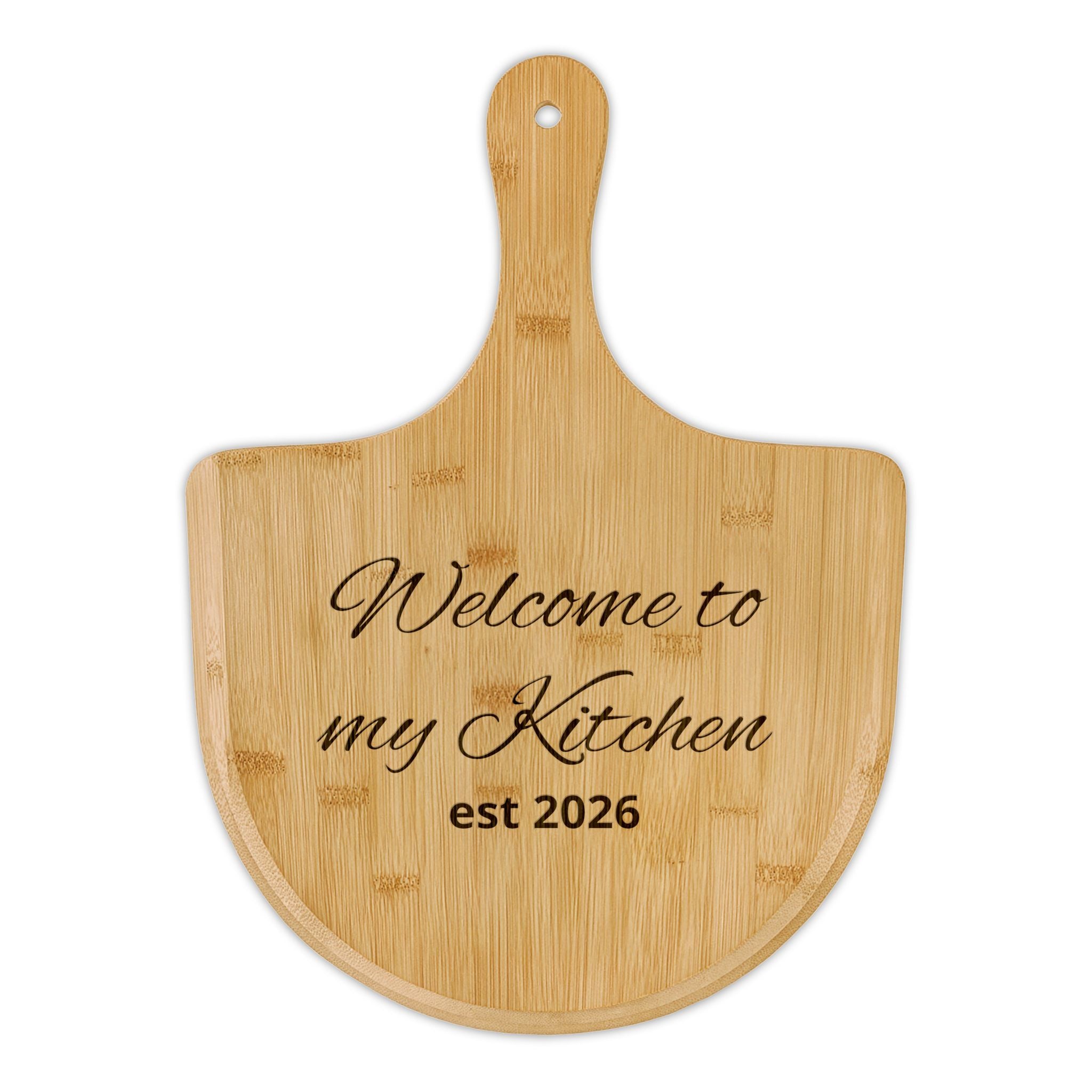 Engraved Bamboo Pizza Peel - "Welcome to my Kitchen" Personalized Est. 2026