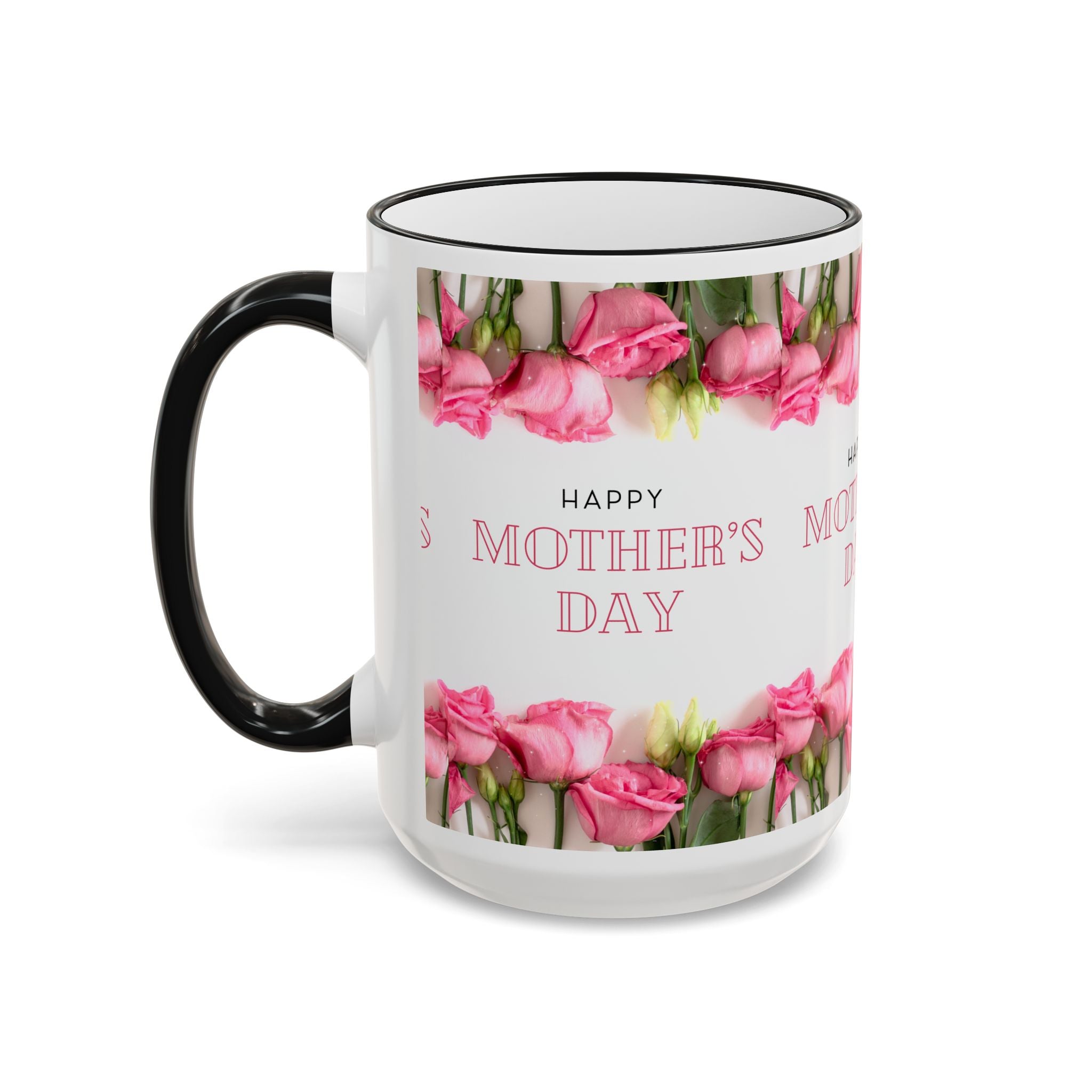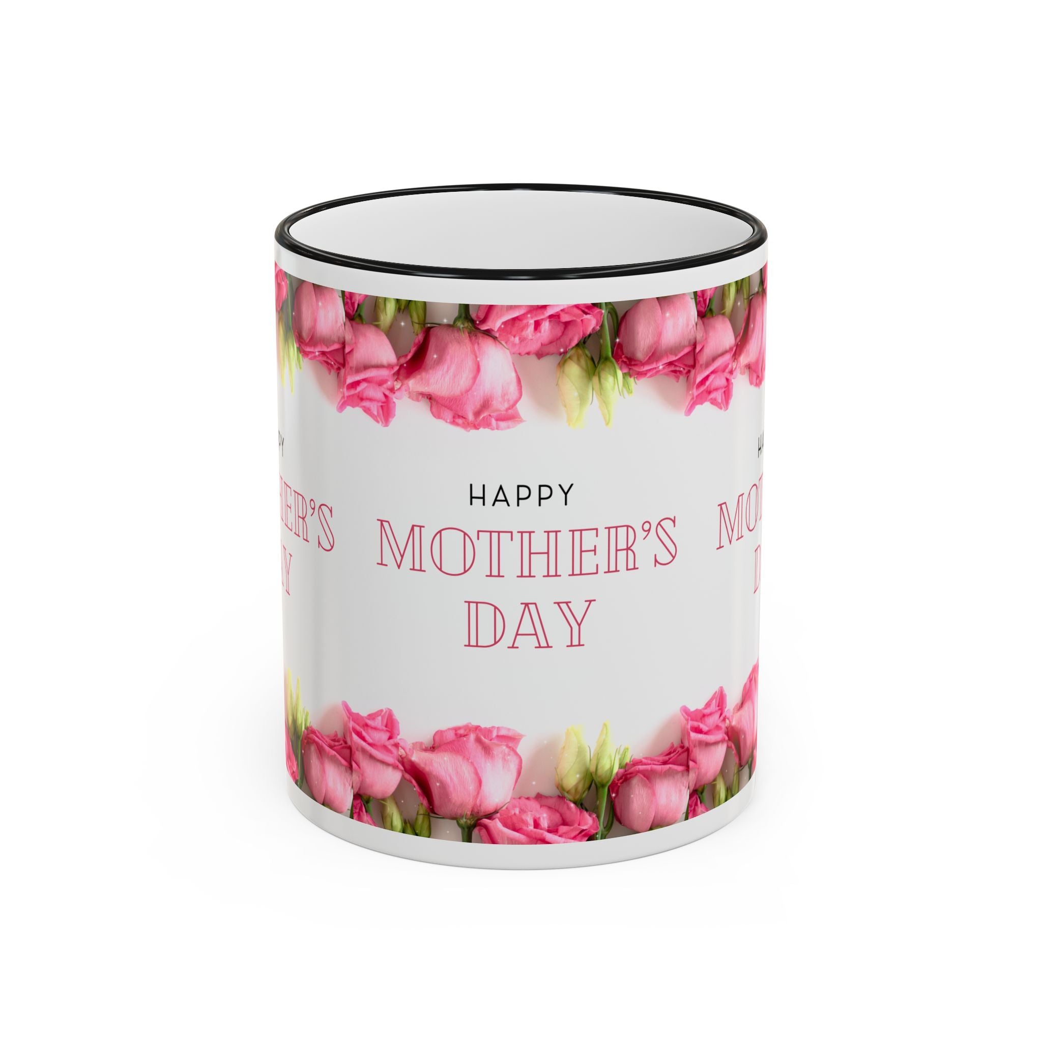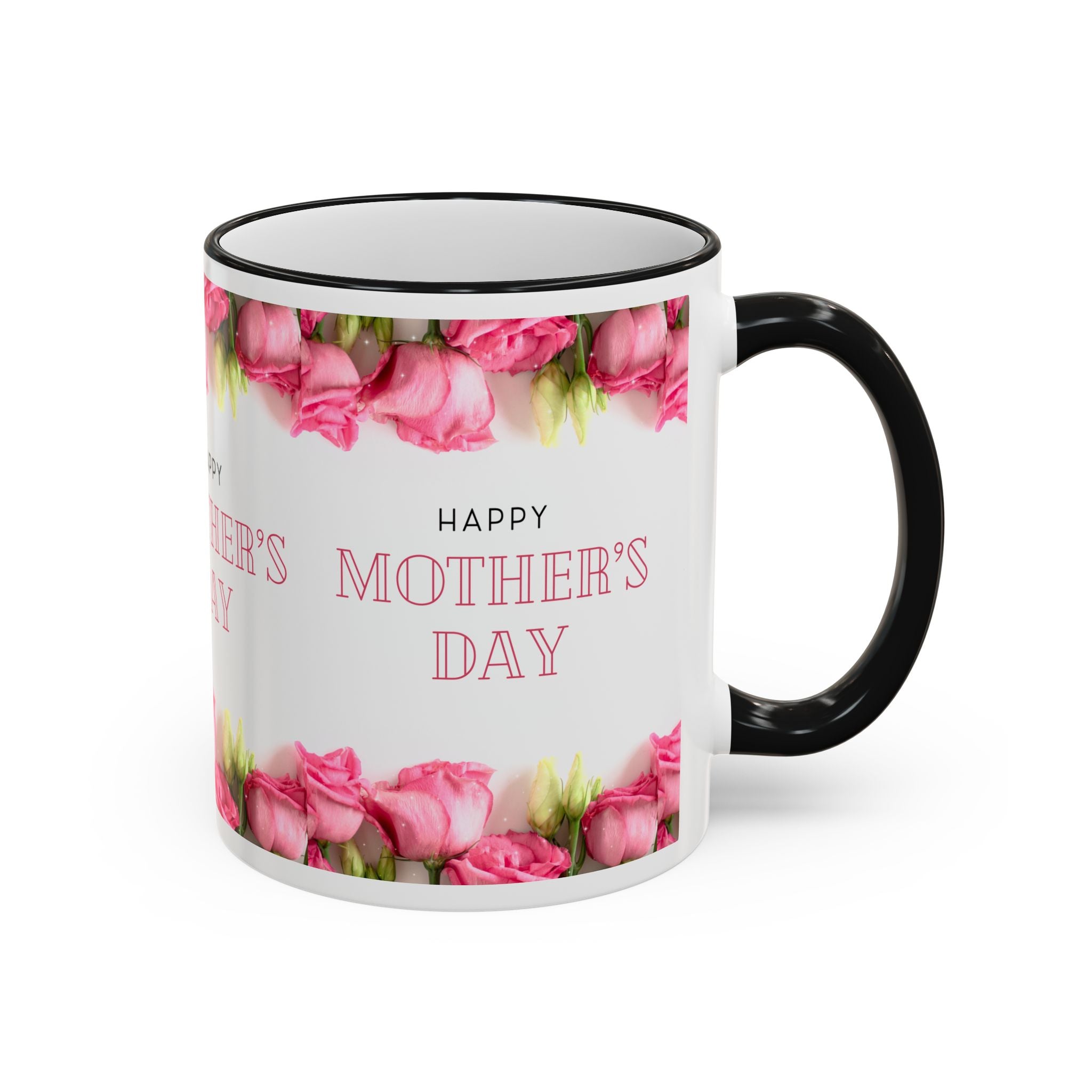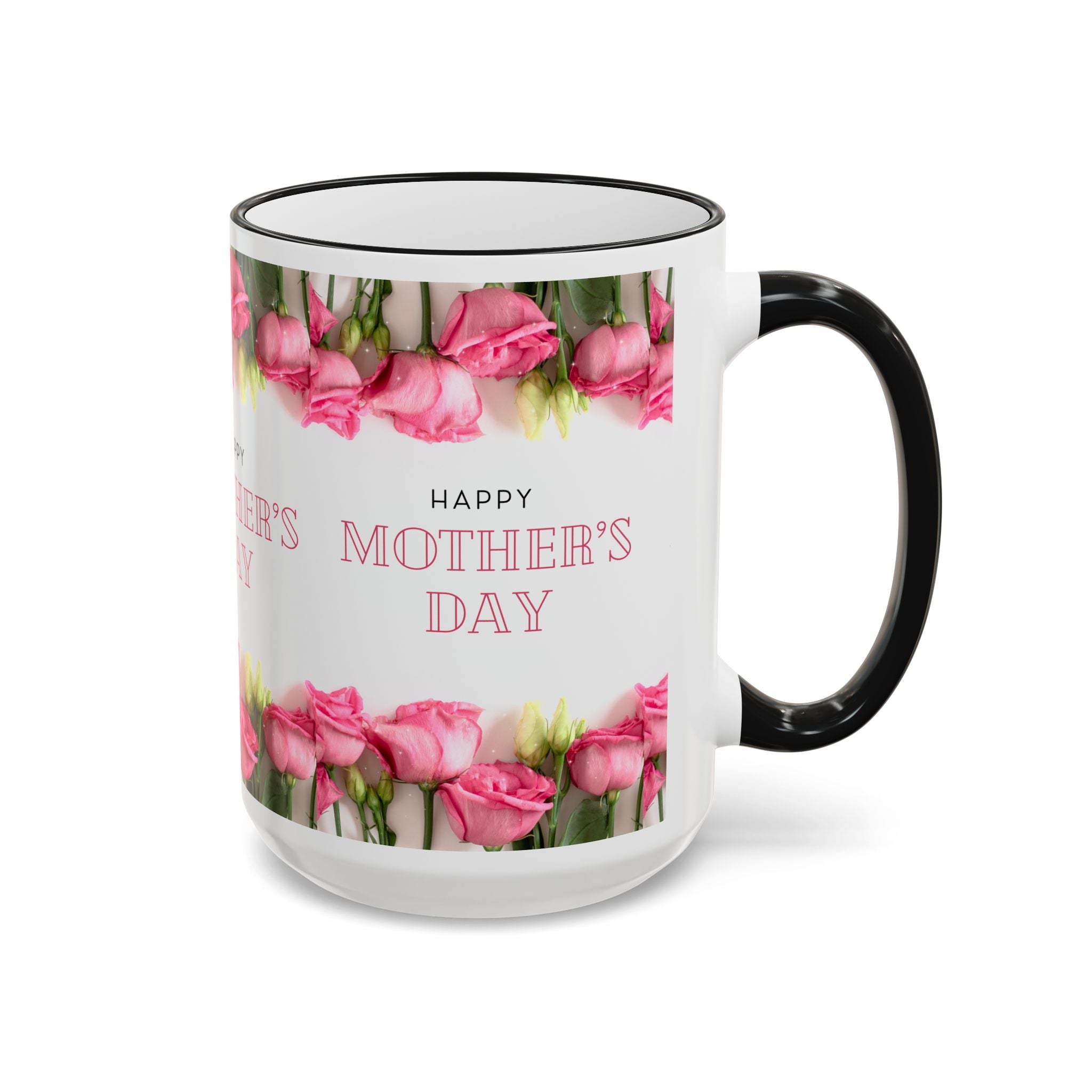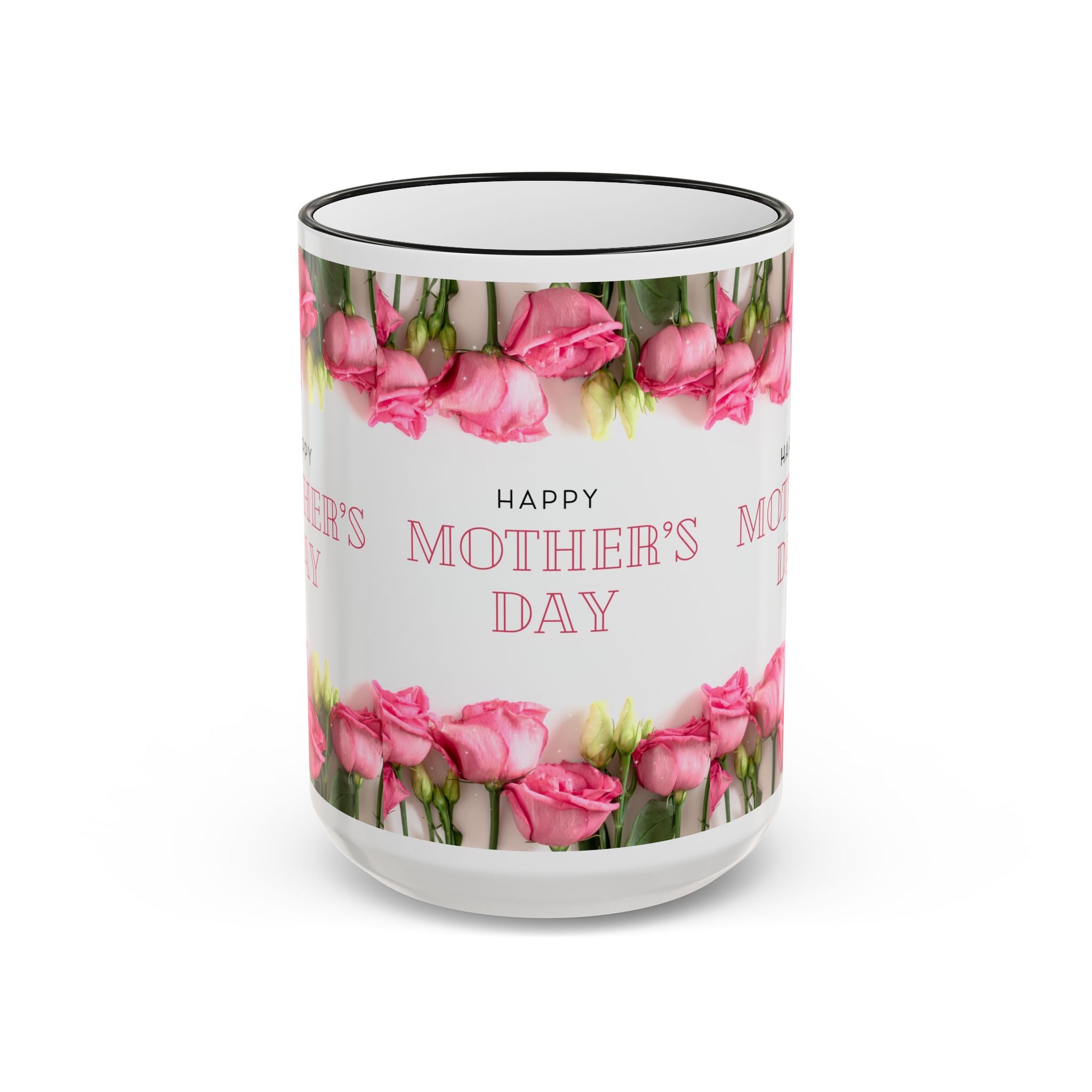 Mother's Day Floral Accent Rim Mug — Happy Mother's Day Pink Roses (11oz/15oz)