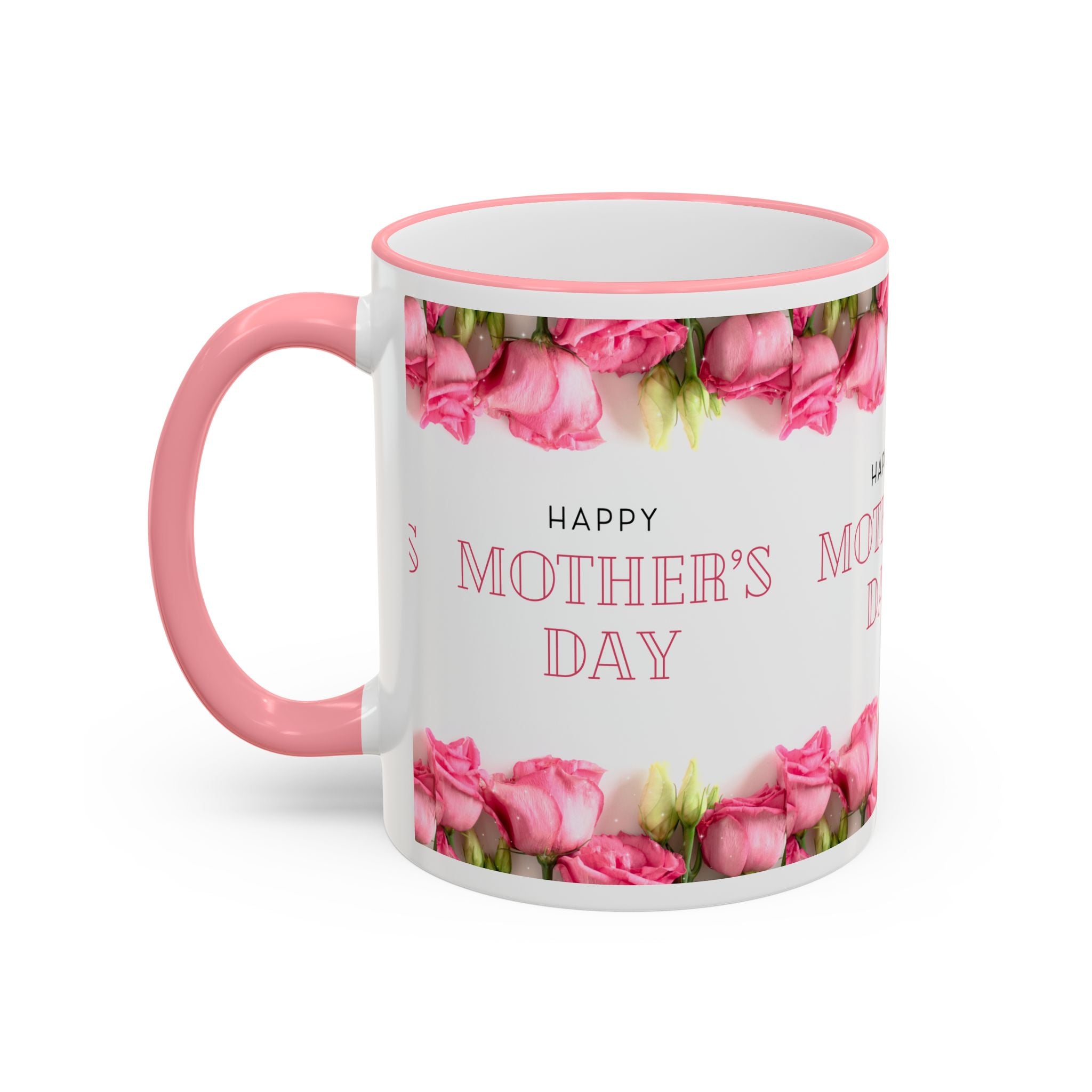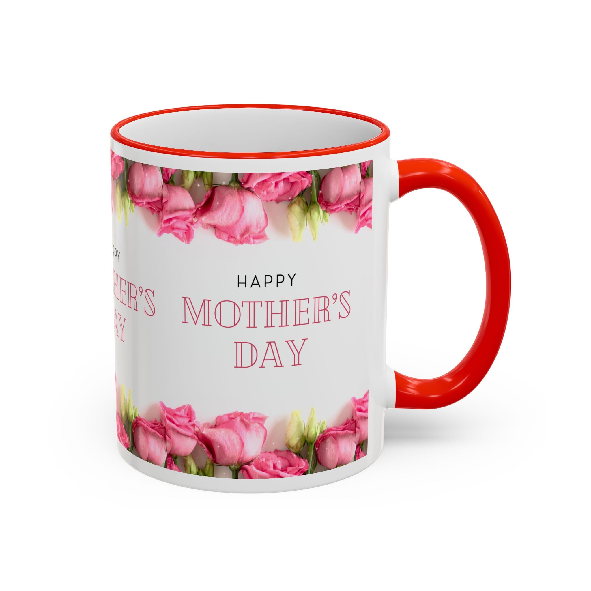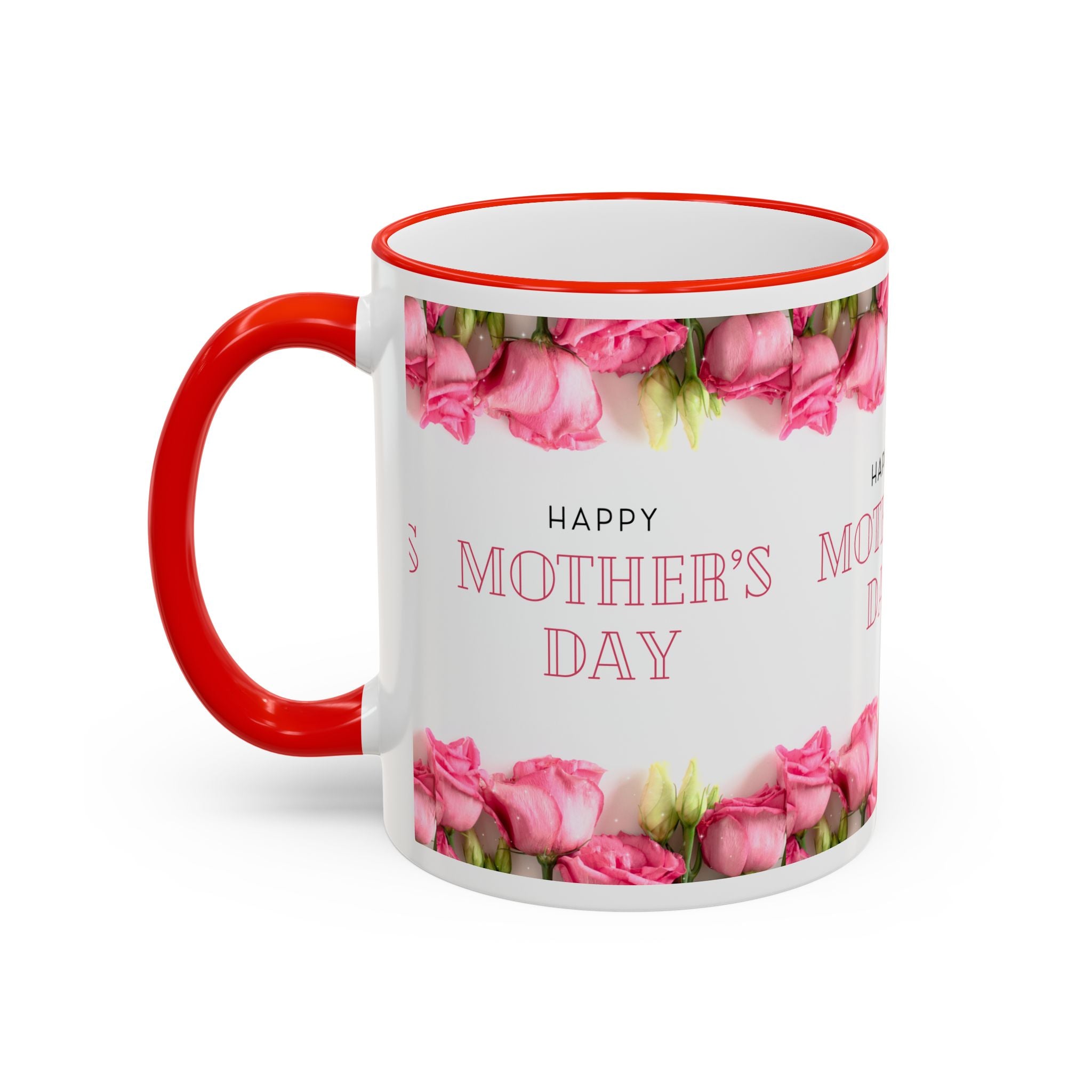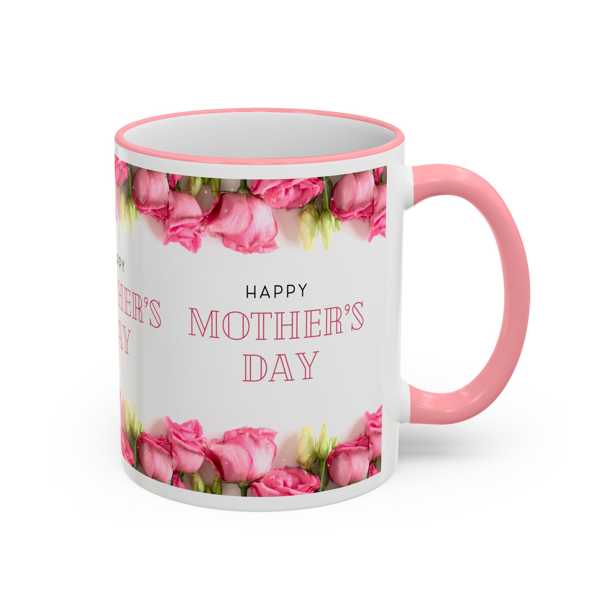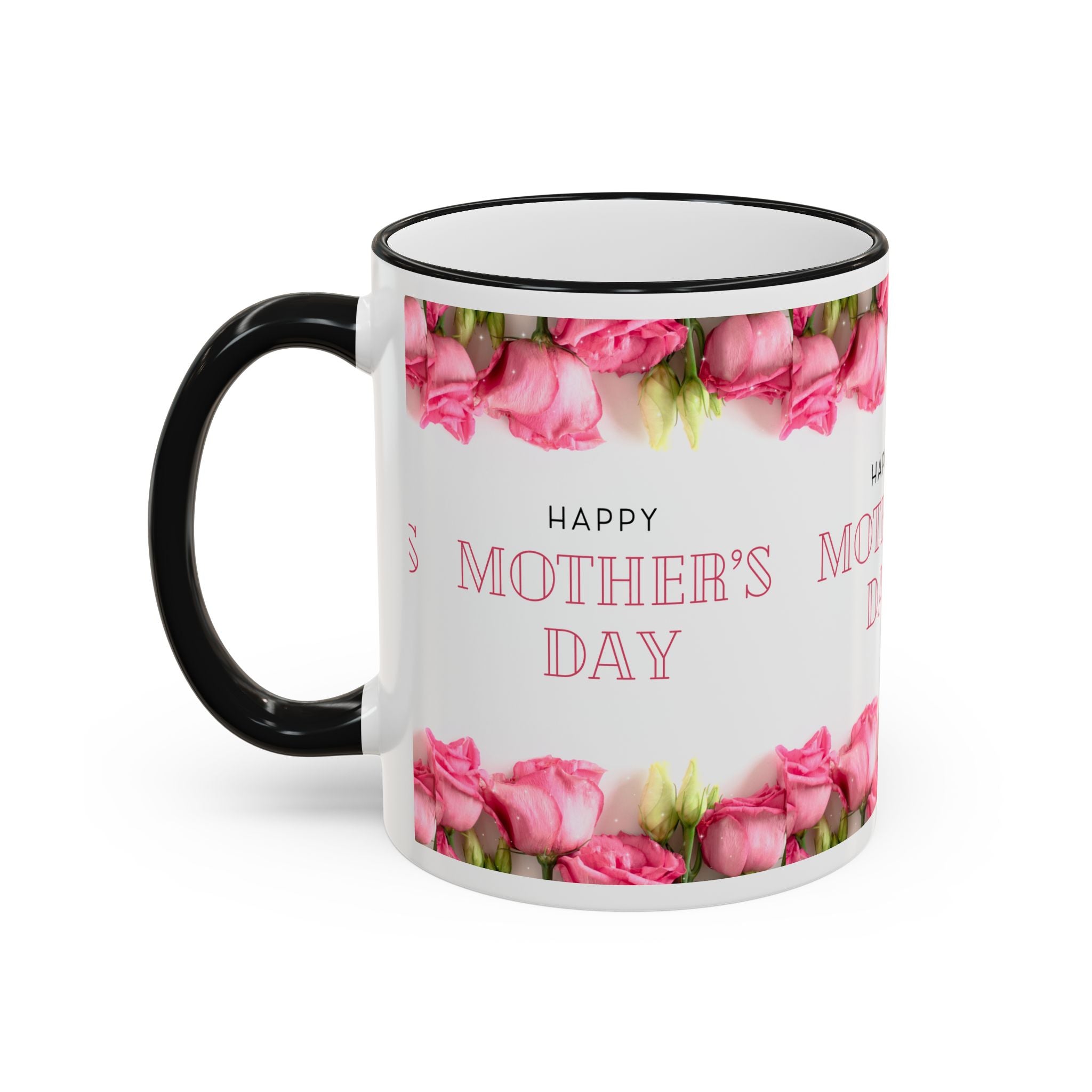 Mother's Day Floral Accent Rim Mug — Happy Mother's Day Pink Roses (11oz/15oz)