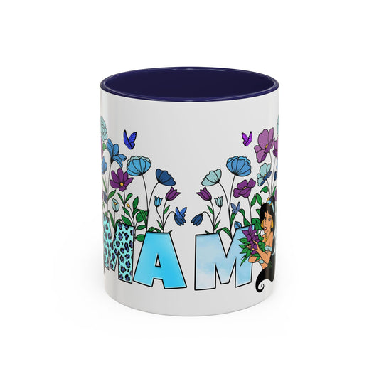 Mama Floral Accent Coffee Mug — Blue Leopard Lettering & Floral Design (11/15oz)
