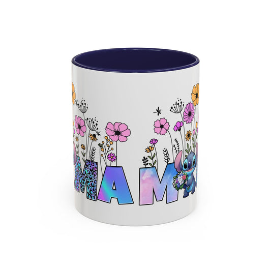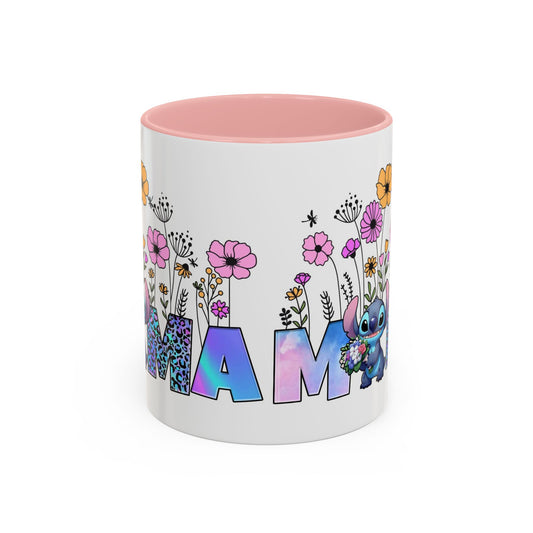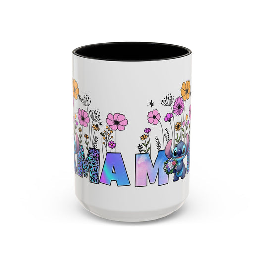 Mamma Floral Mug — Colorful 'MAMA' Lettering with Flowers & Cute Lilo Character (11oz/15oz)