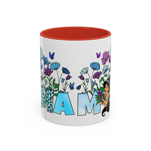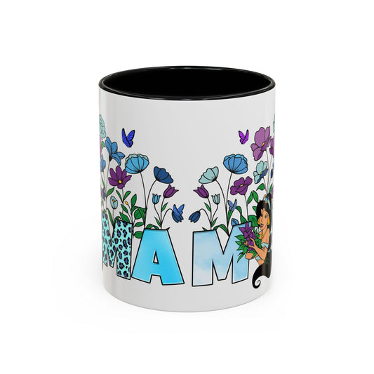 • Mama Floral Accent Coffee Mug — Blue Leopard Lettering & Floral Design (11/15oz)