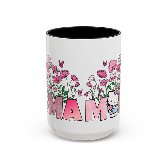Mama Floral Coffee Mug — Cute Pink Hello Kitty Style Mother's Day Gift (11/15oz)