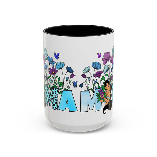 • Mama Floral Accent Coffee Mug — Colorful The Little Mermaid Mom Coffee Cup (11/15 oz)