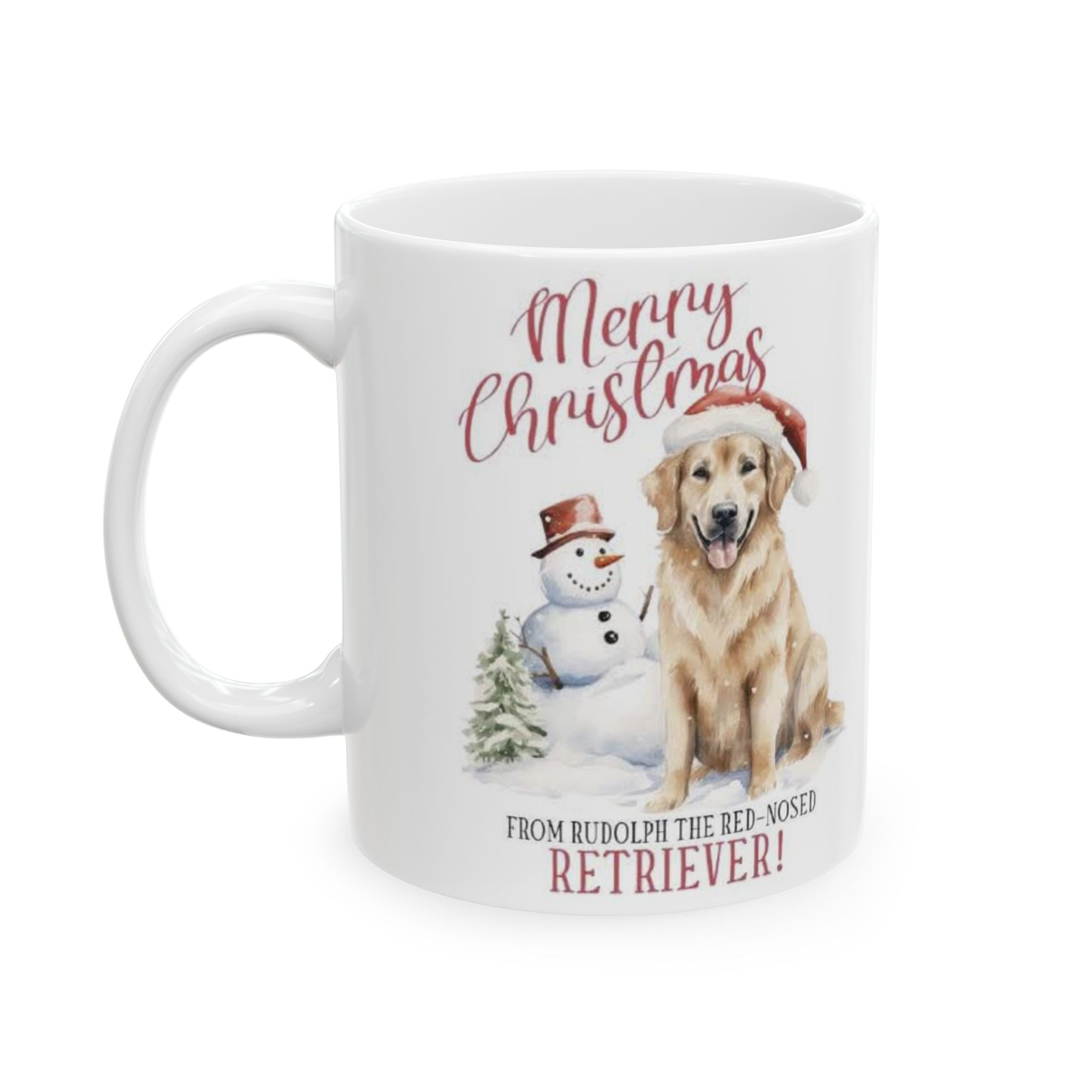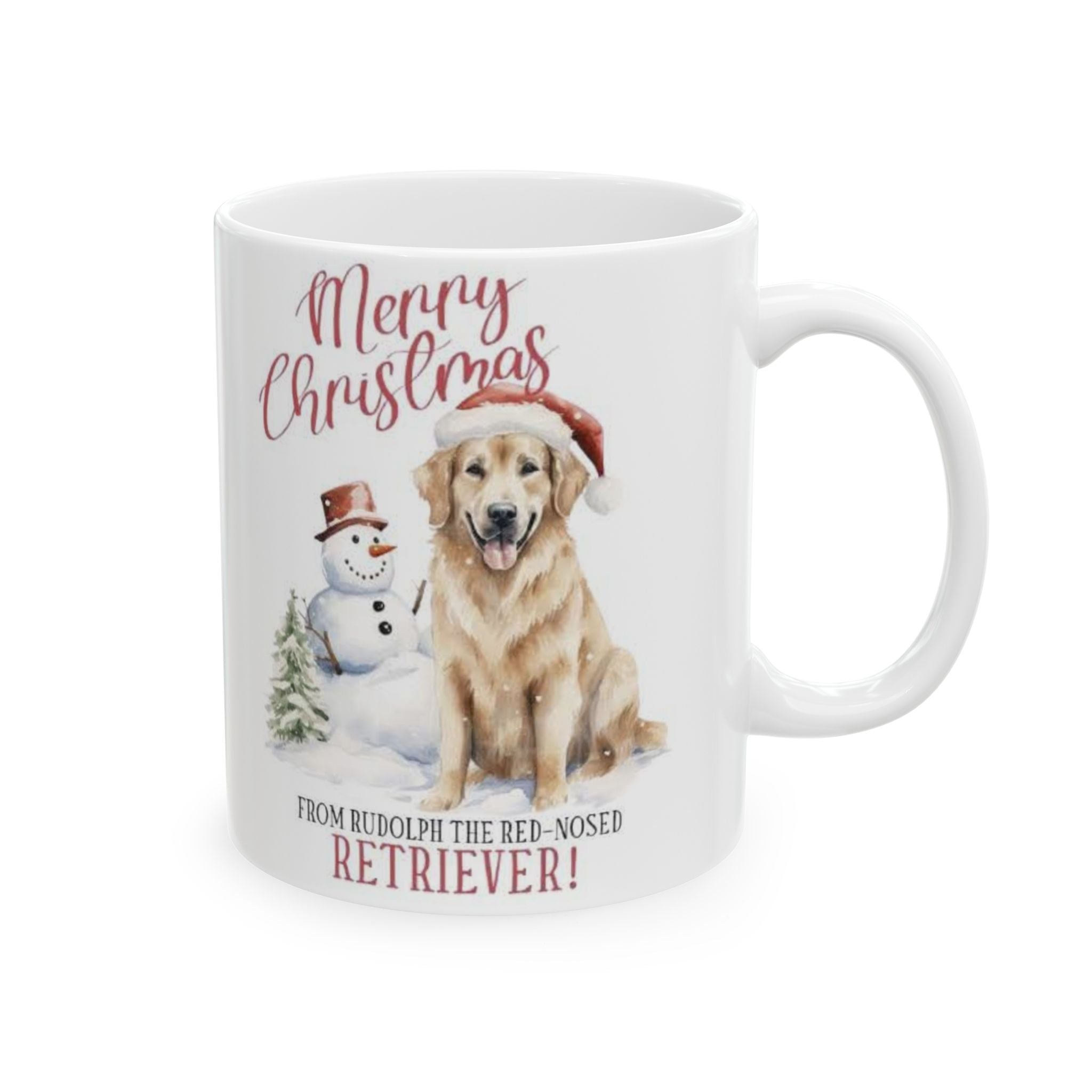 Festive Animal Mug - Merry Christmas Dog & Snowman, Holiday Gift, Coffee Cup, Pet Lover's Mug, Winter Decor, Comfy Home Drinkware