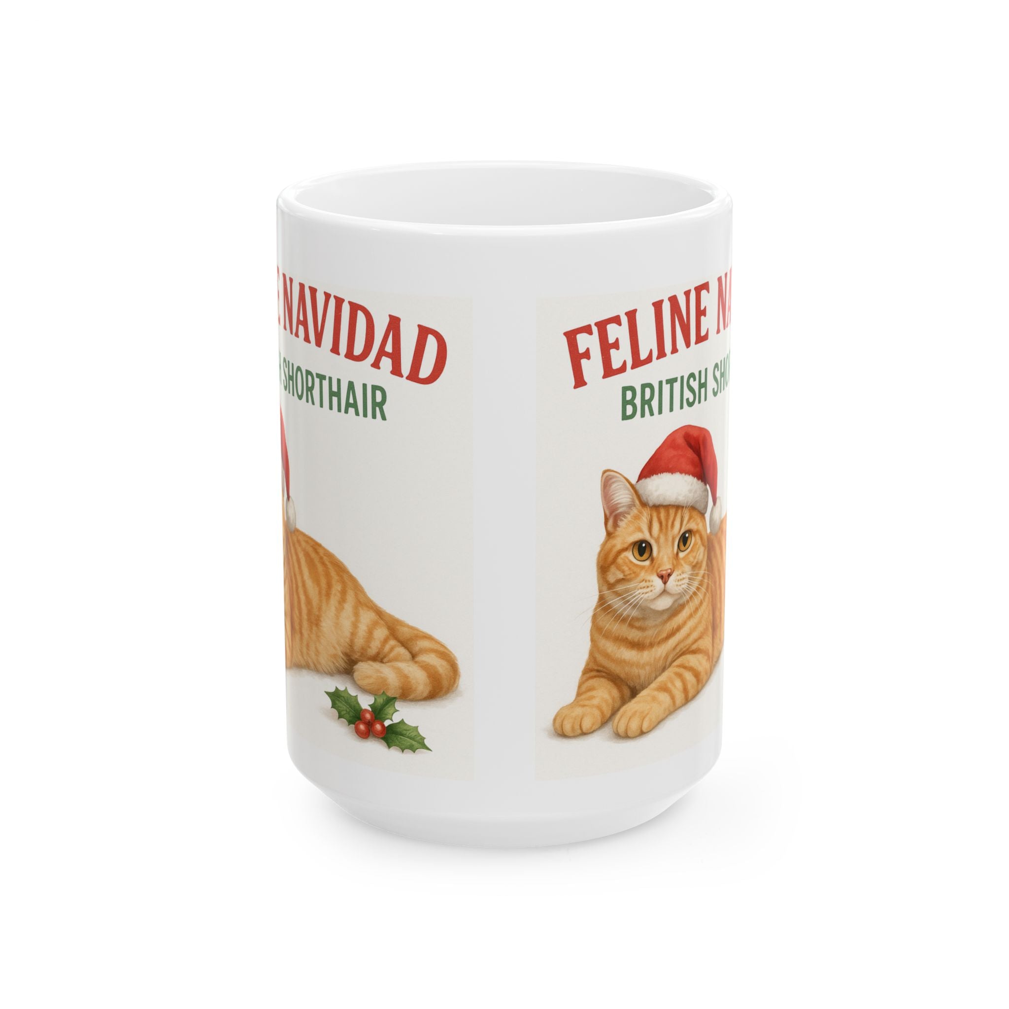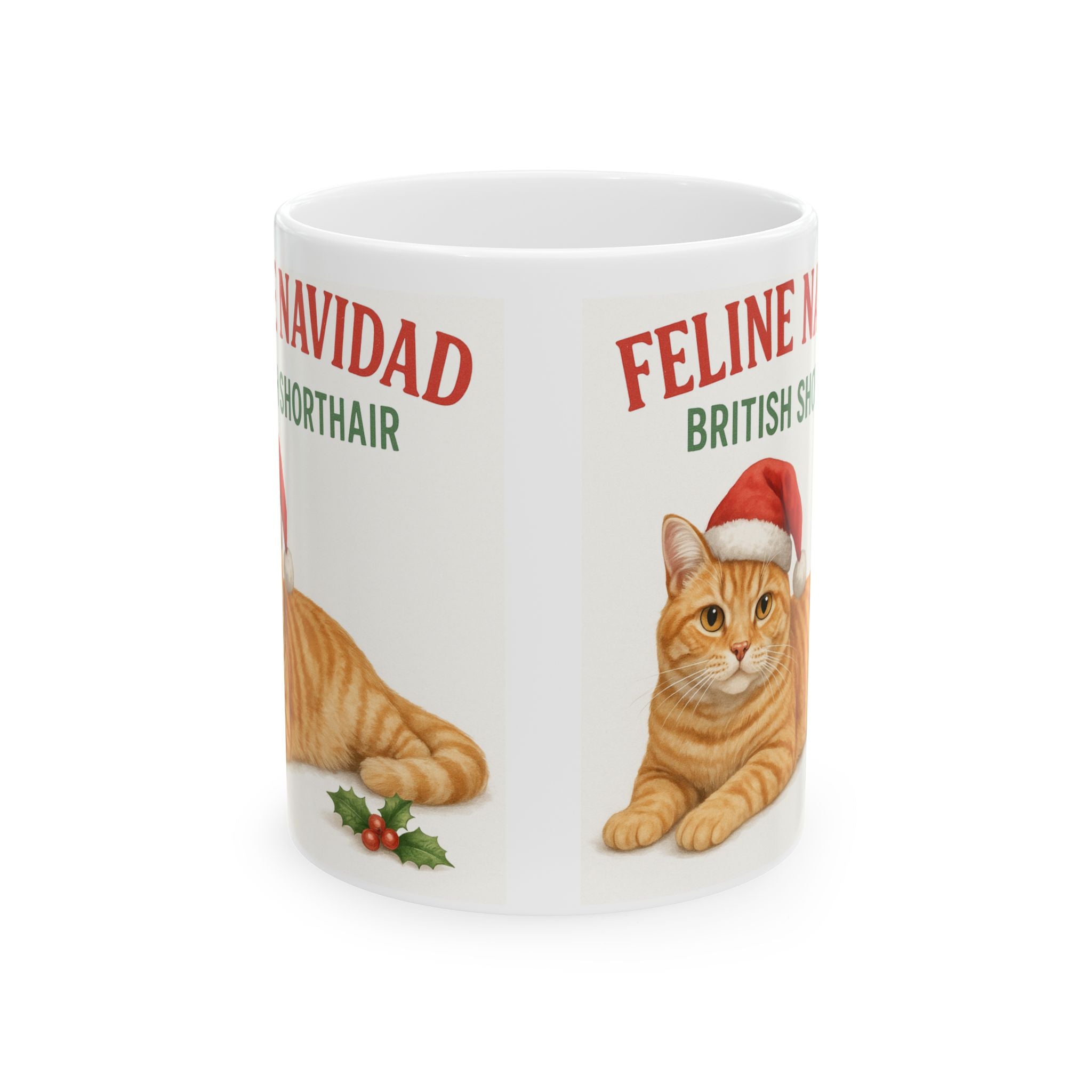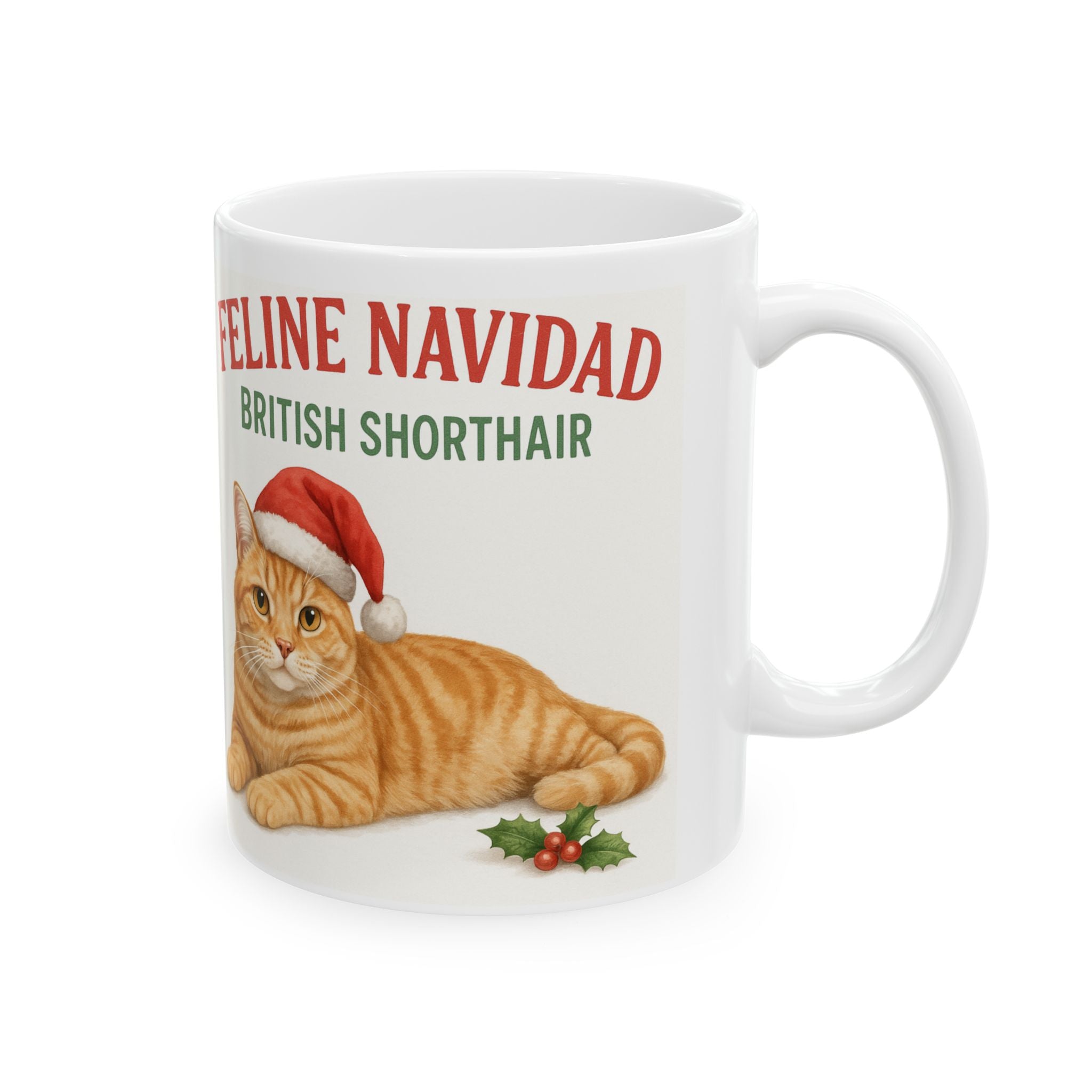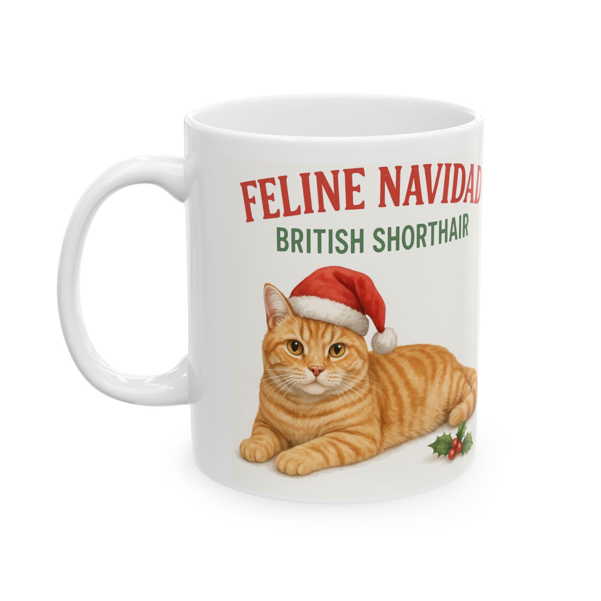 Festive Feline Mug: British Shorthair Christmas Gift, Cat Lover's Coffee Cup, Holiday Drinkware, Cute Xmas Mug, Feline Navidad
