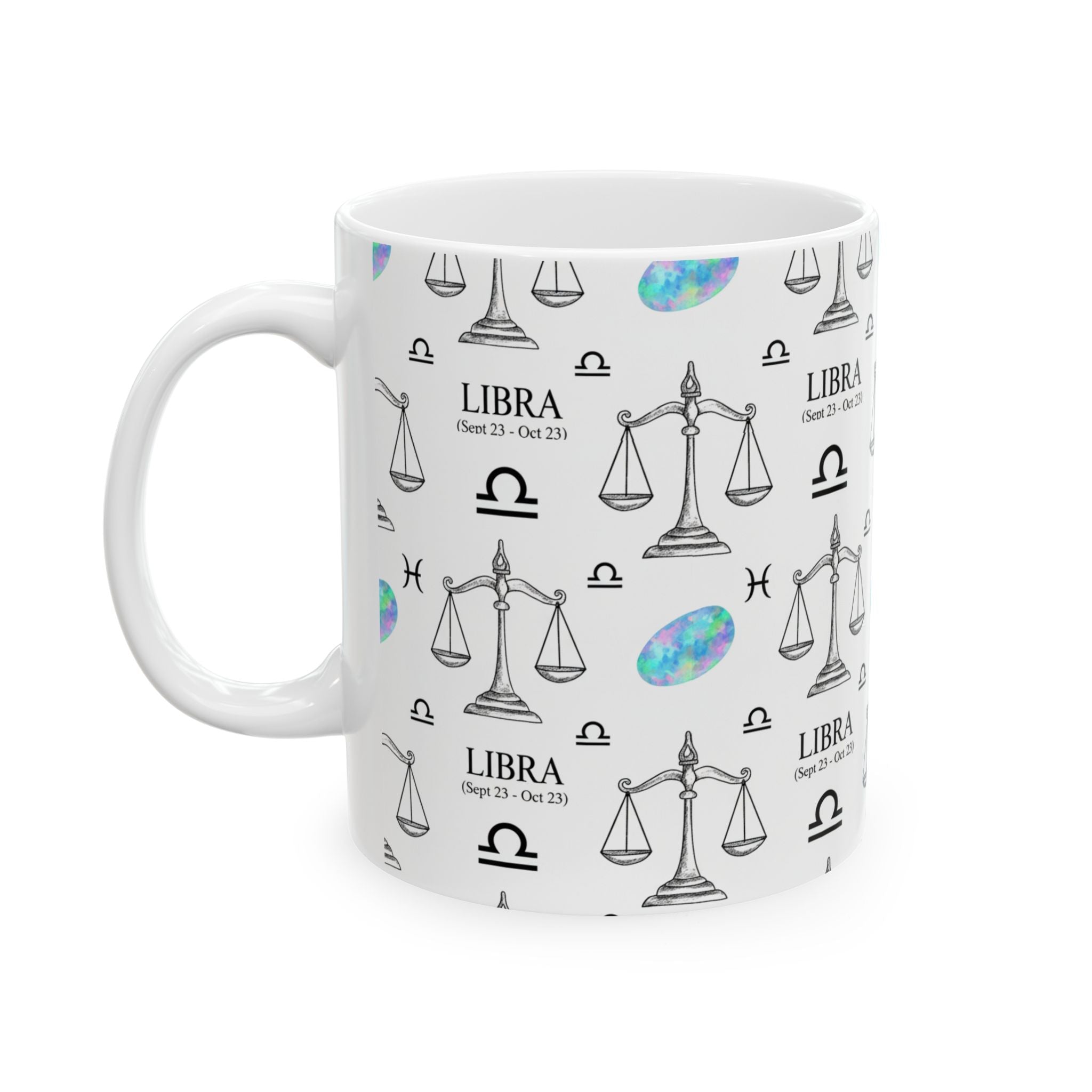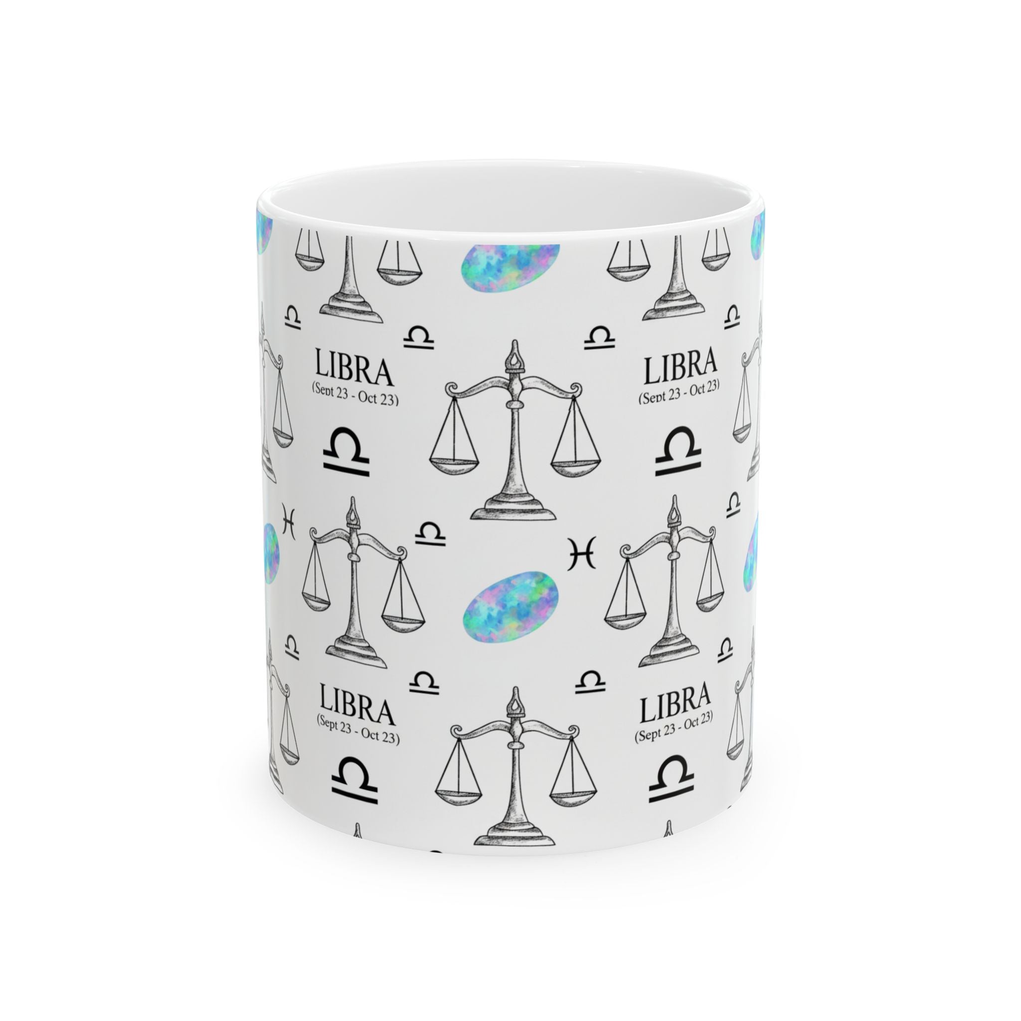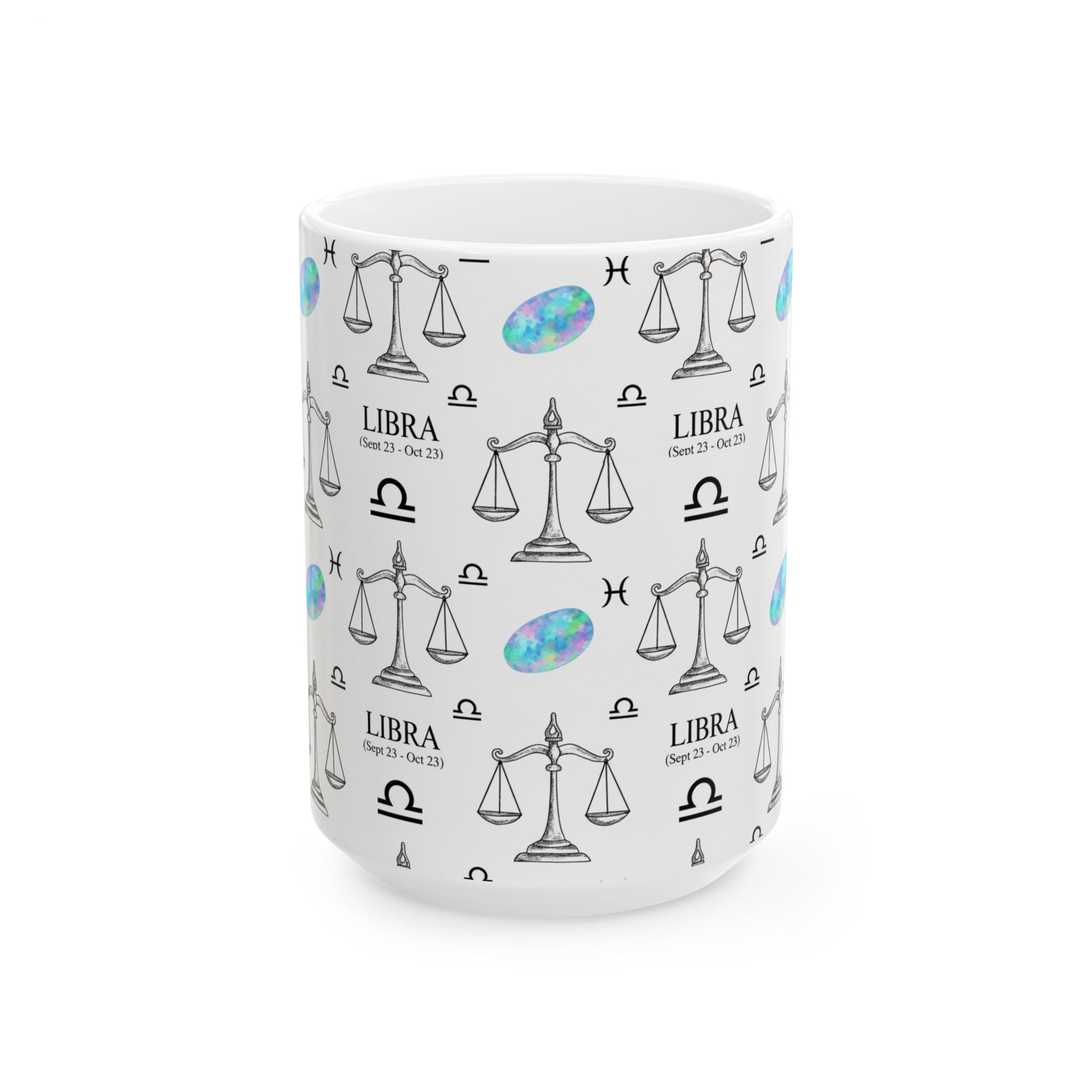 Libra Zodiac Ceramic Mug Sep 23 – Oct 22 Astrology Gift for Libra Lovers, Horoscope Coffee Cup, Opal Gem Astrology Decor, Birthday Gift