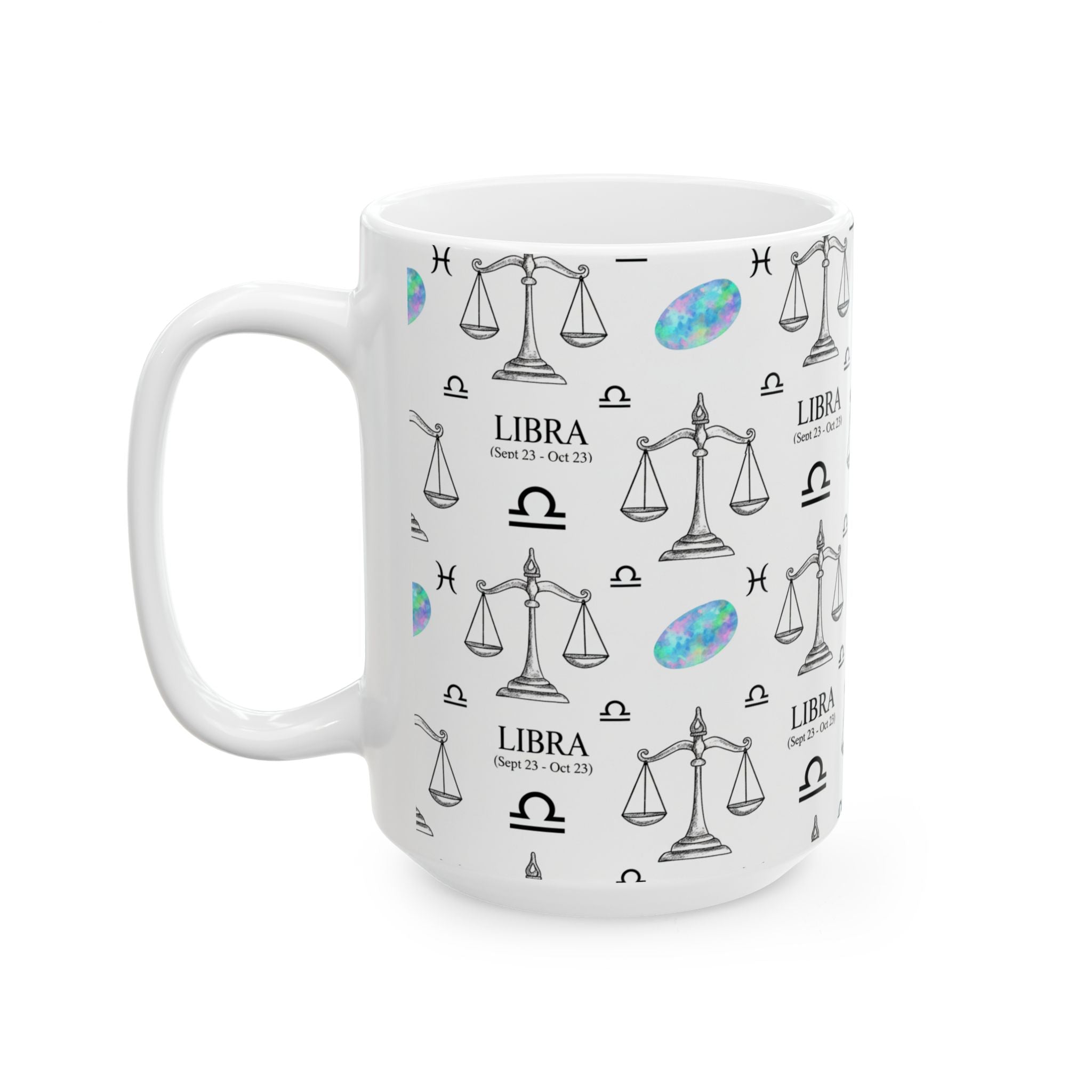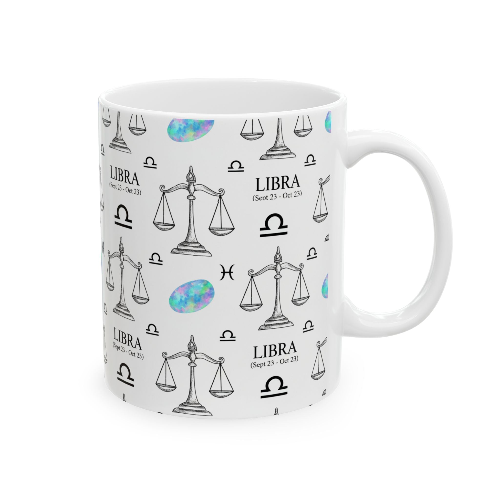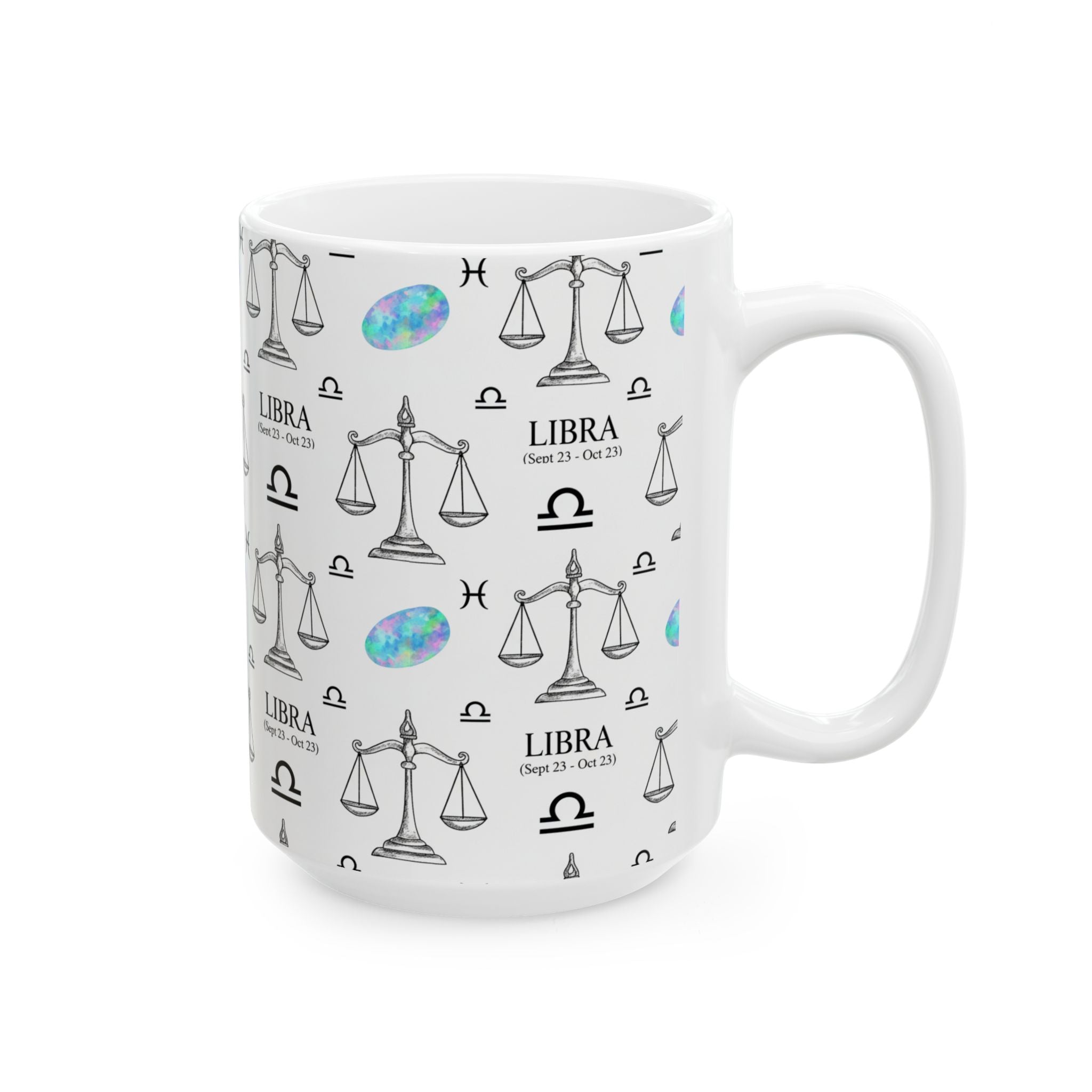 Libra Zodiac Ceramic Mug Sep 23 – Oct 22 Astrology Gift for Libra Lovers, Horoscope Coffee Cup, Opal Gem Astrology Decor, Birthday Gift
