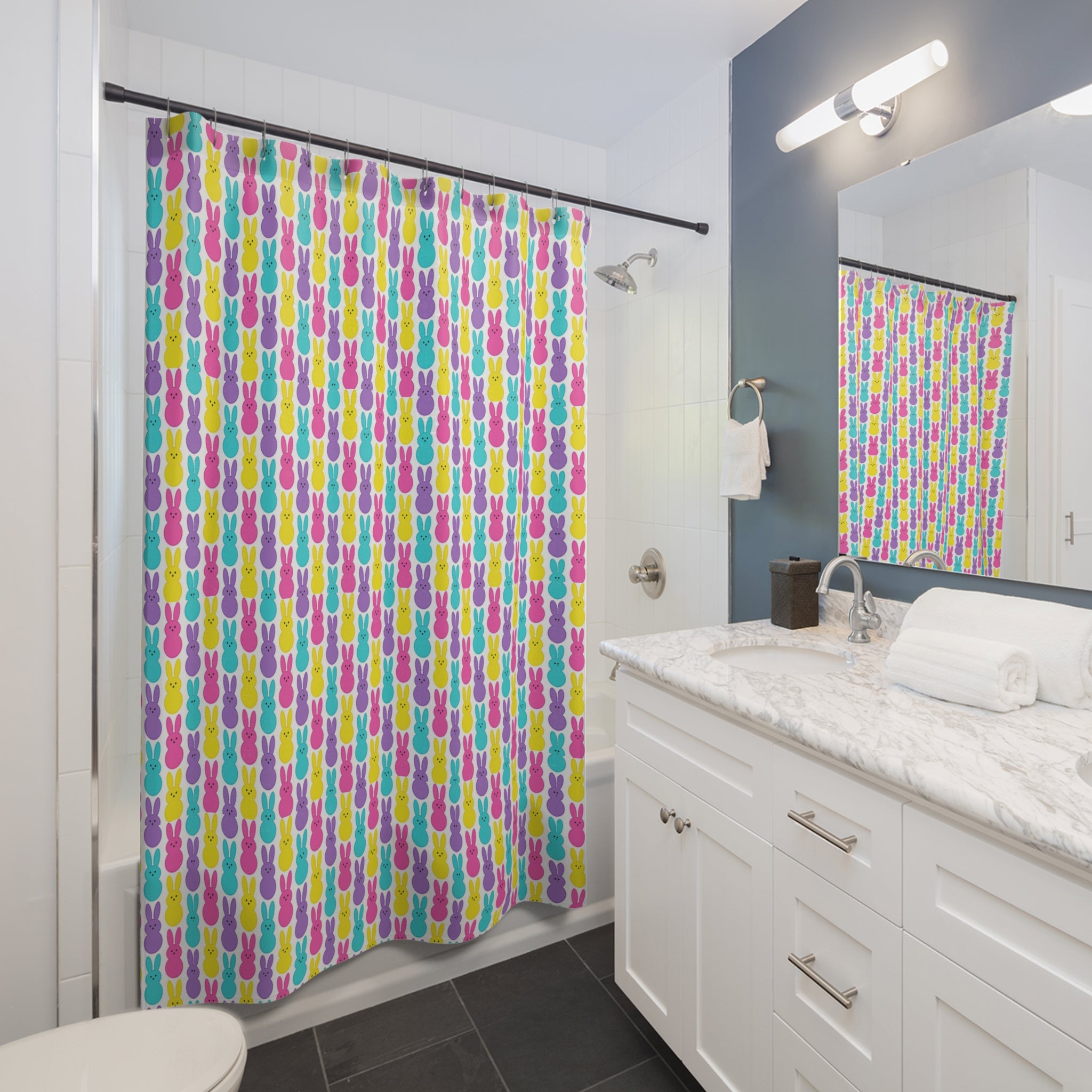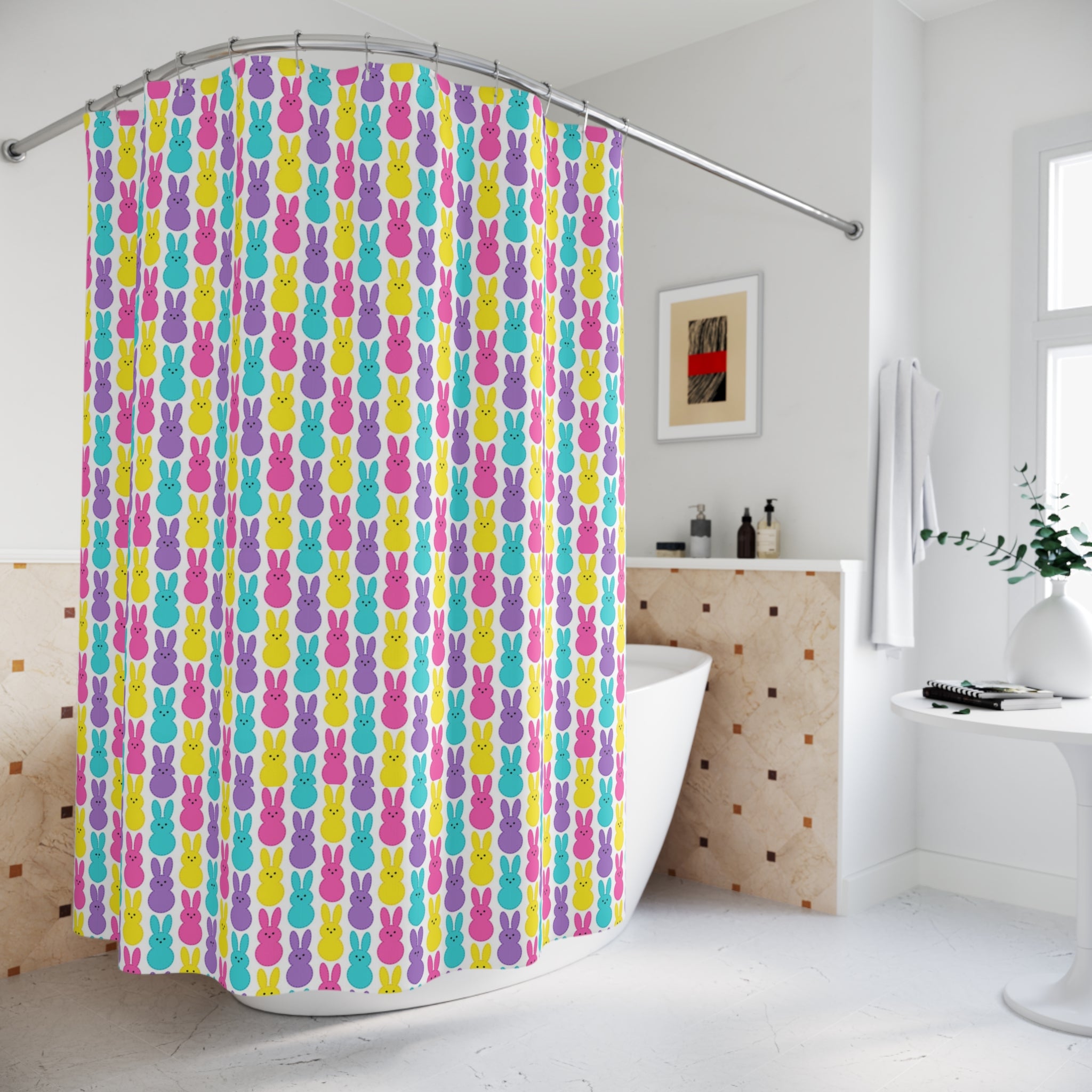 Easter Peeps Bunny Pattern Shower Curtain — Bright Pastel Holiday Bathroom Decor