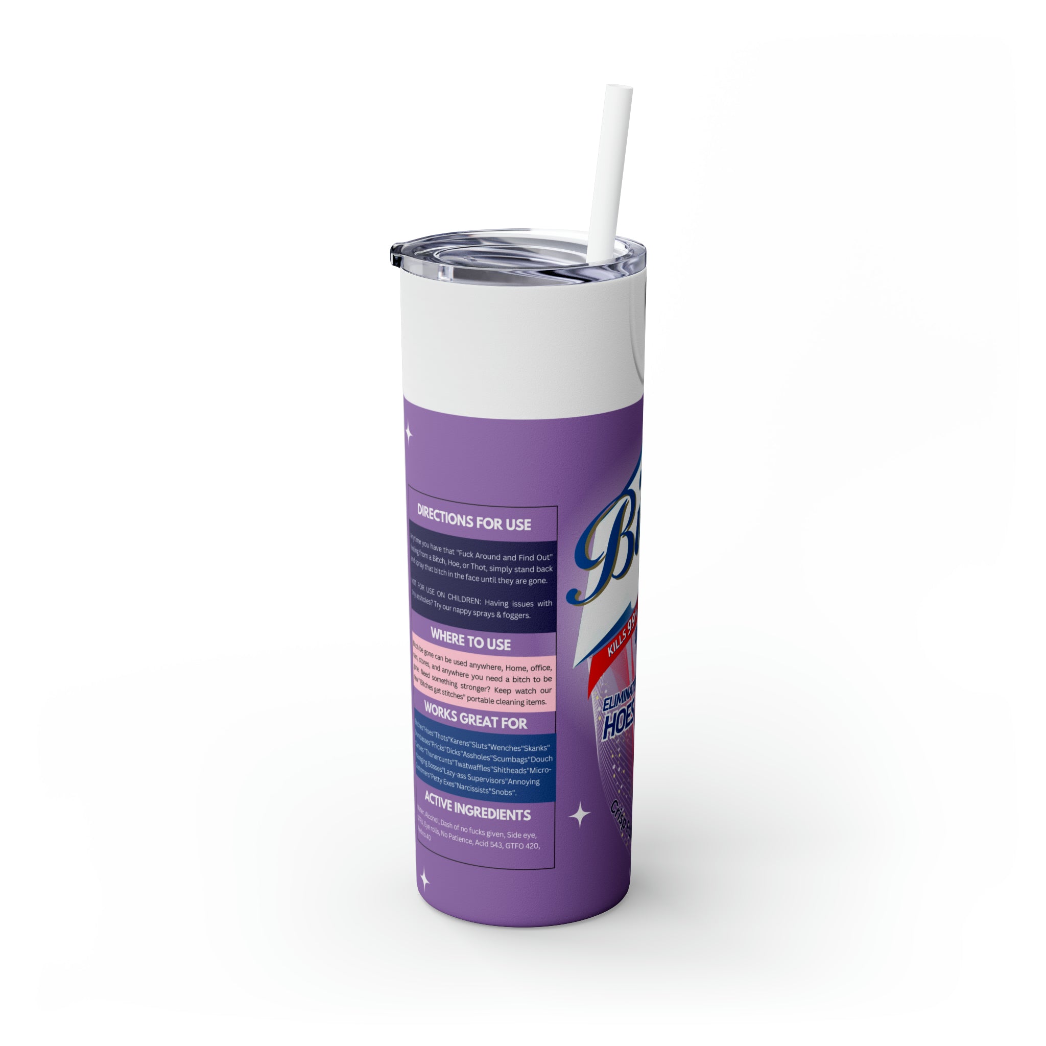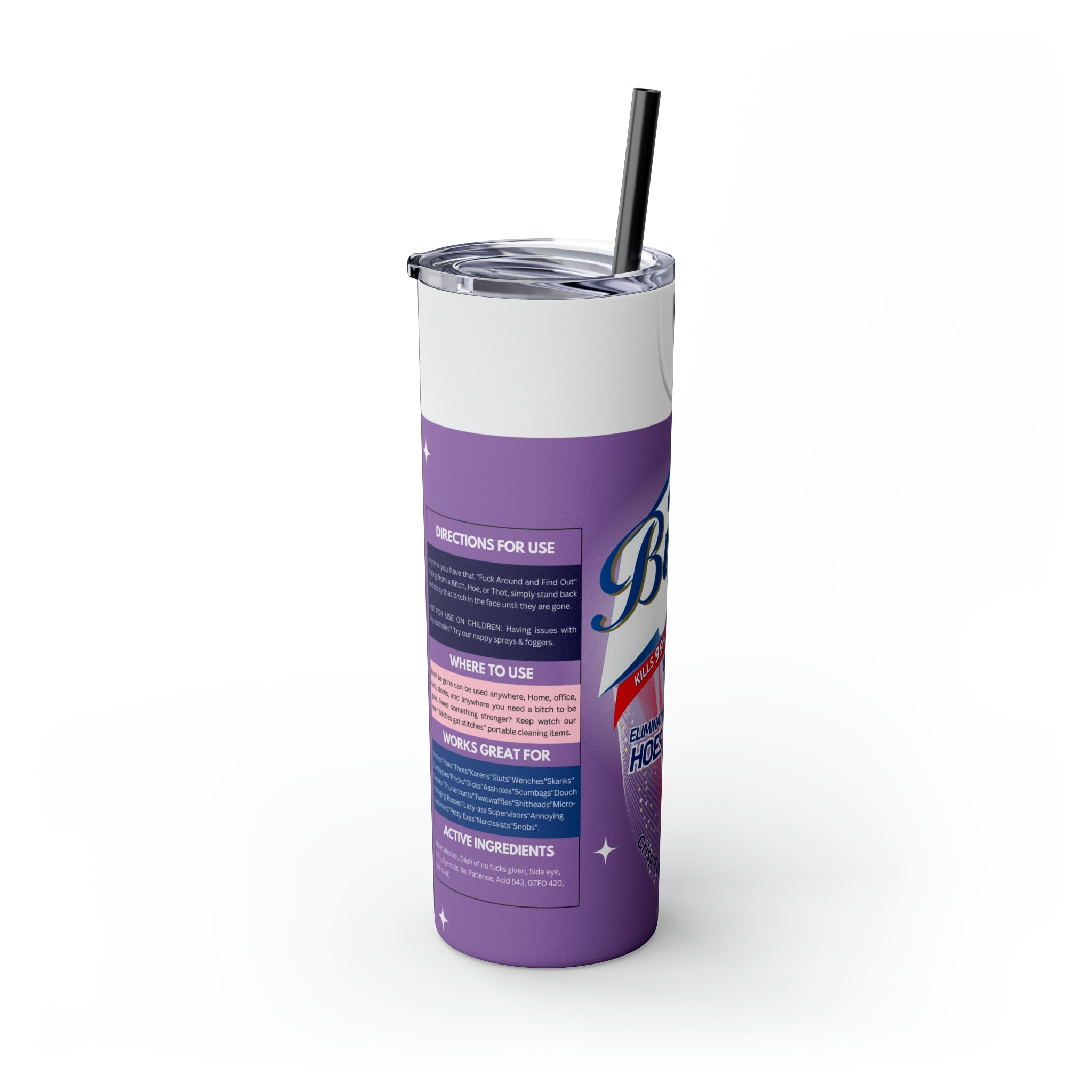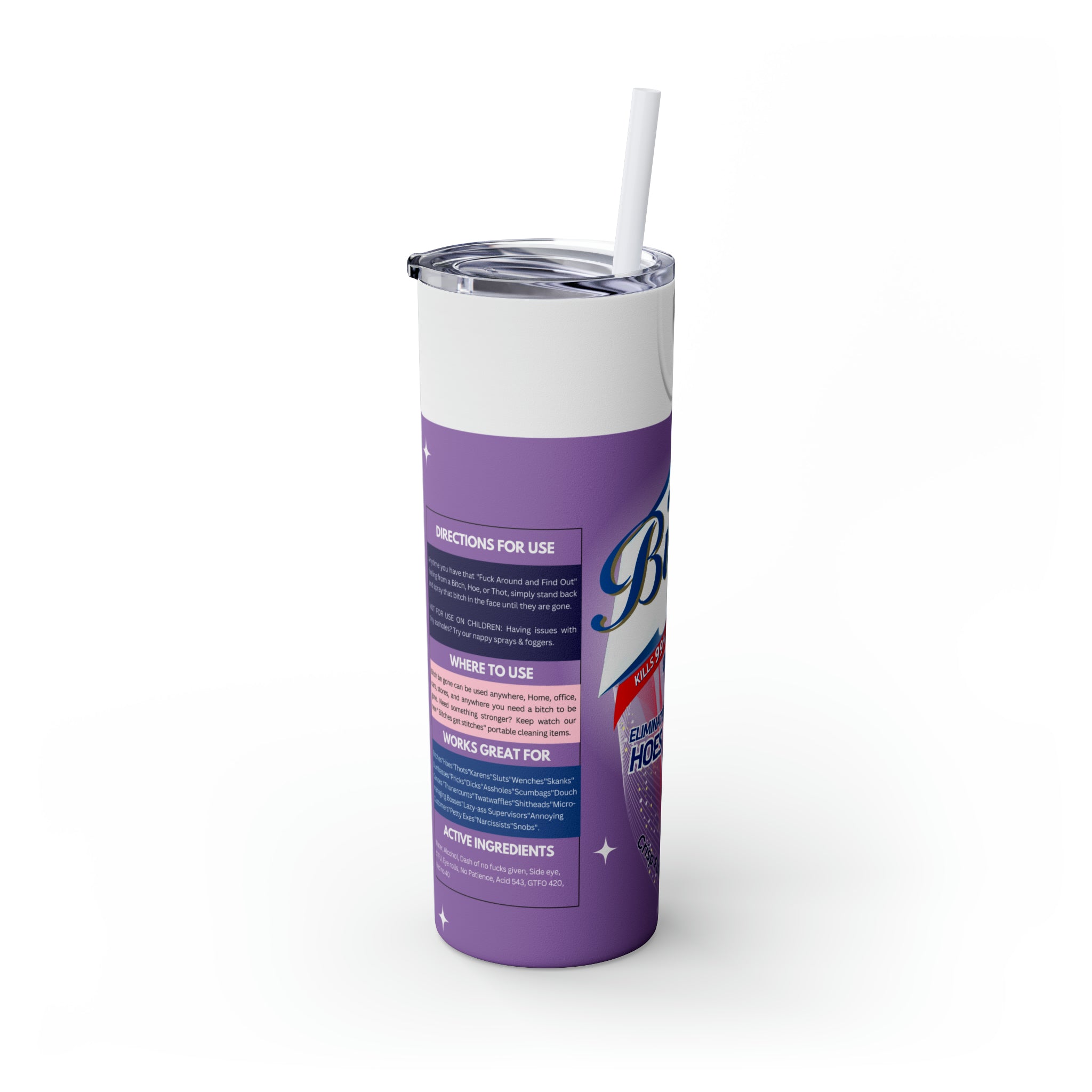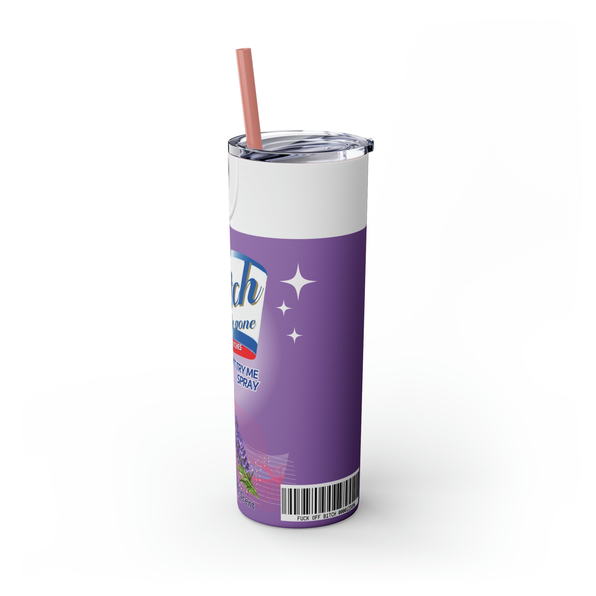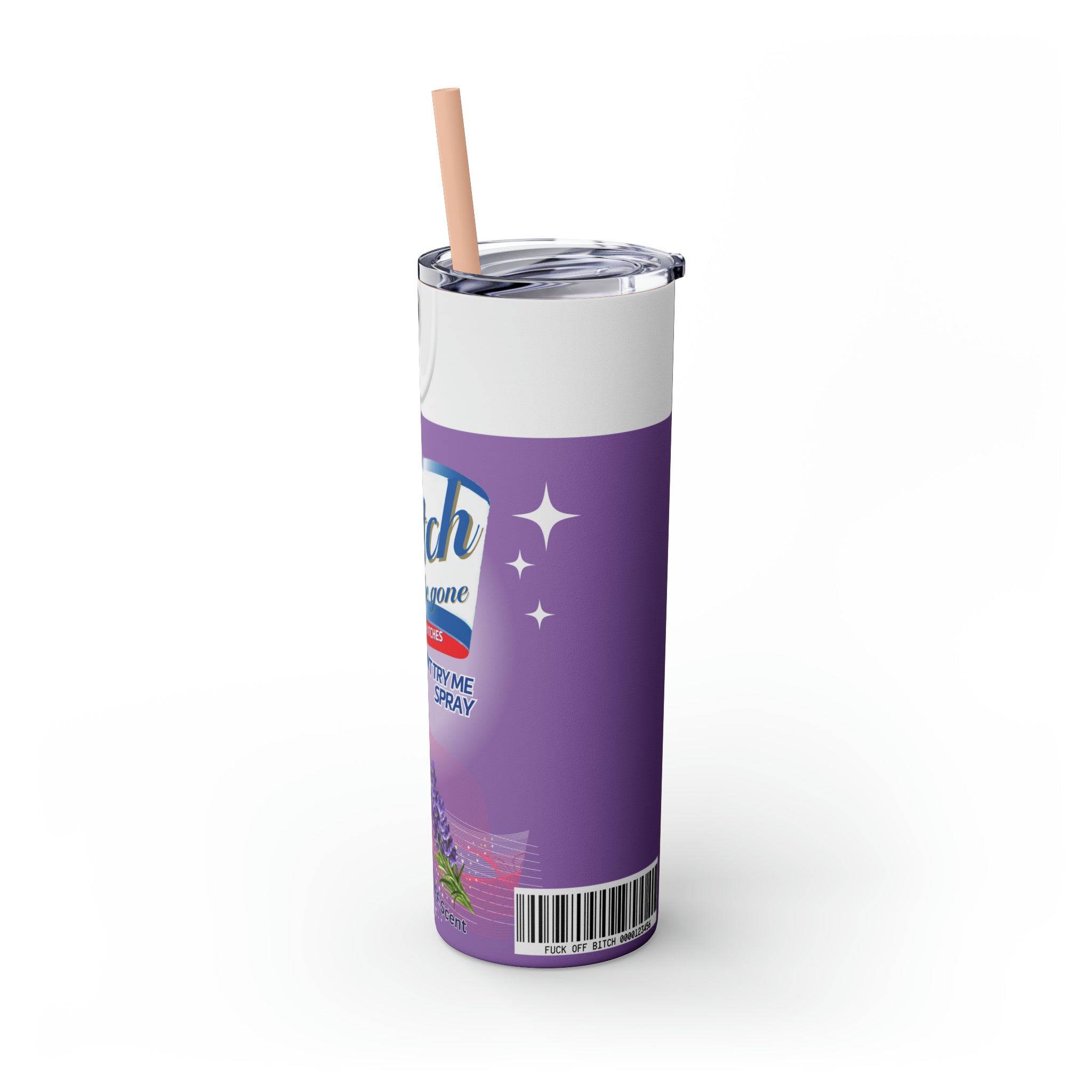 Bitch Be Gone- Purple Skinny Tumbler with Straw, 20oz