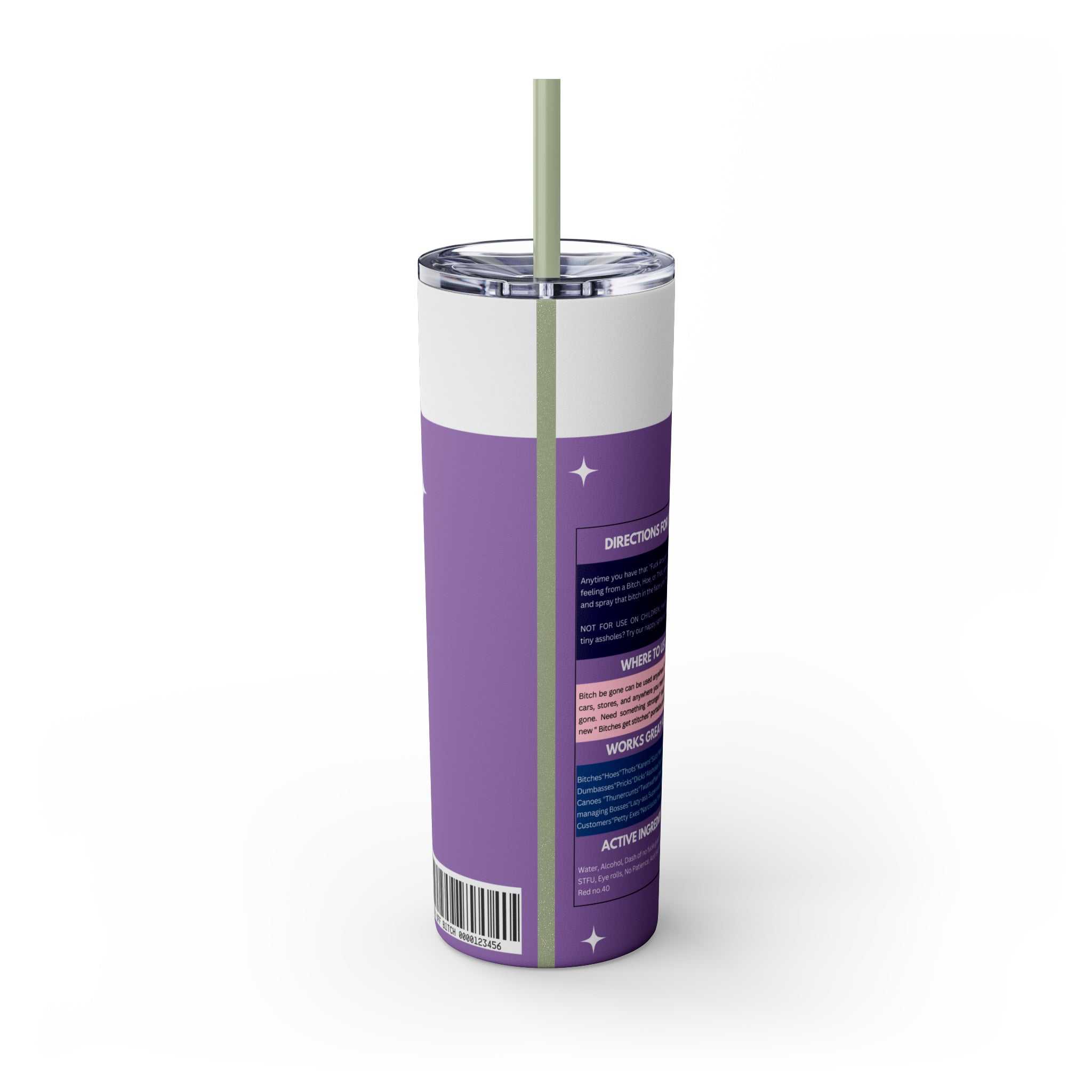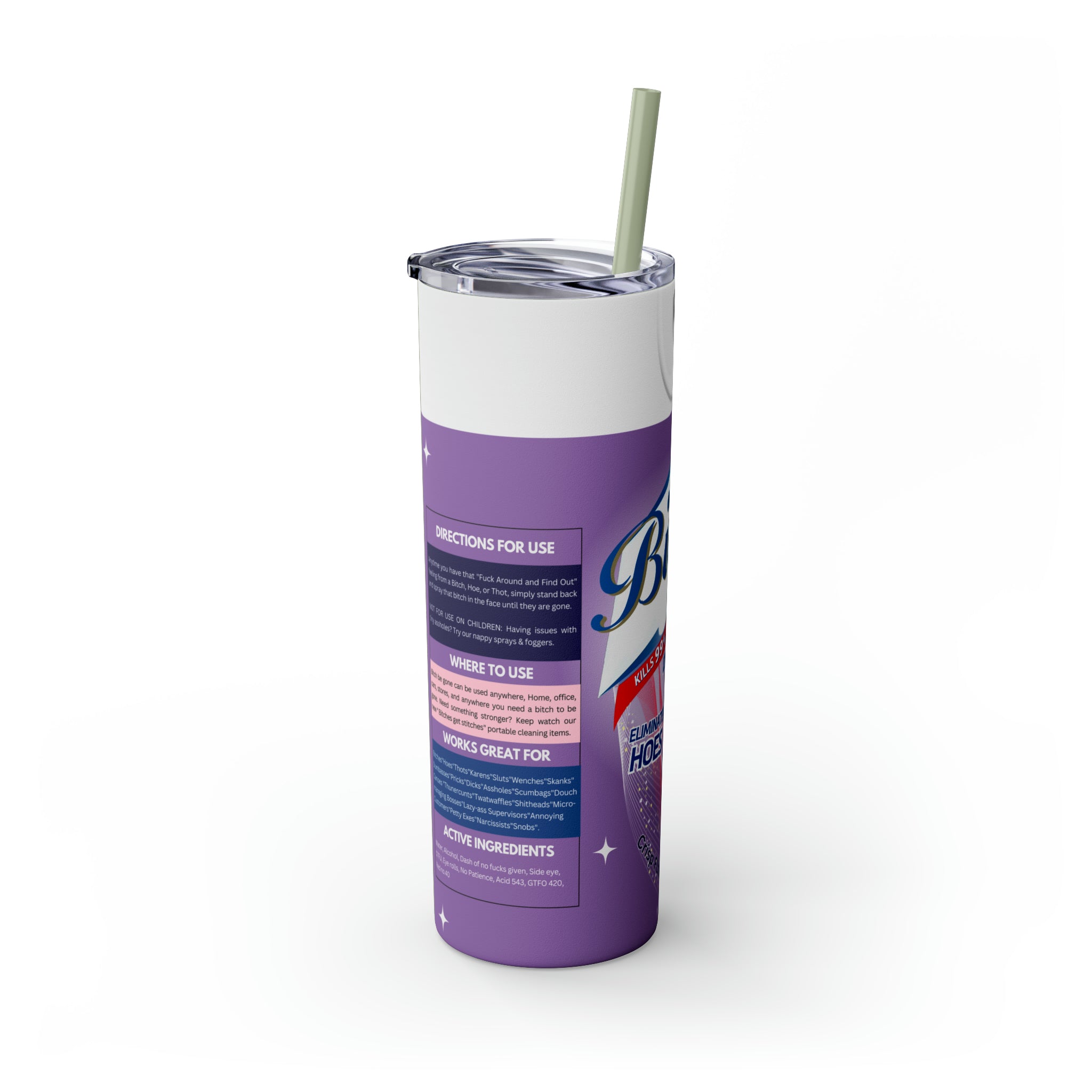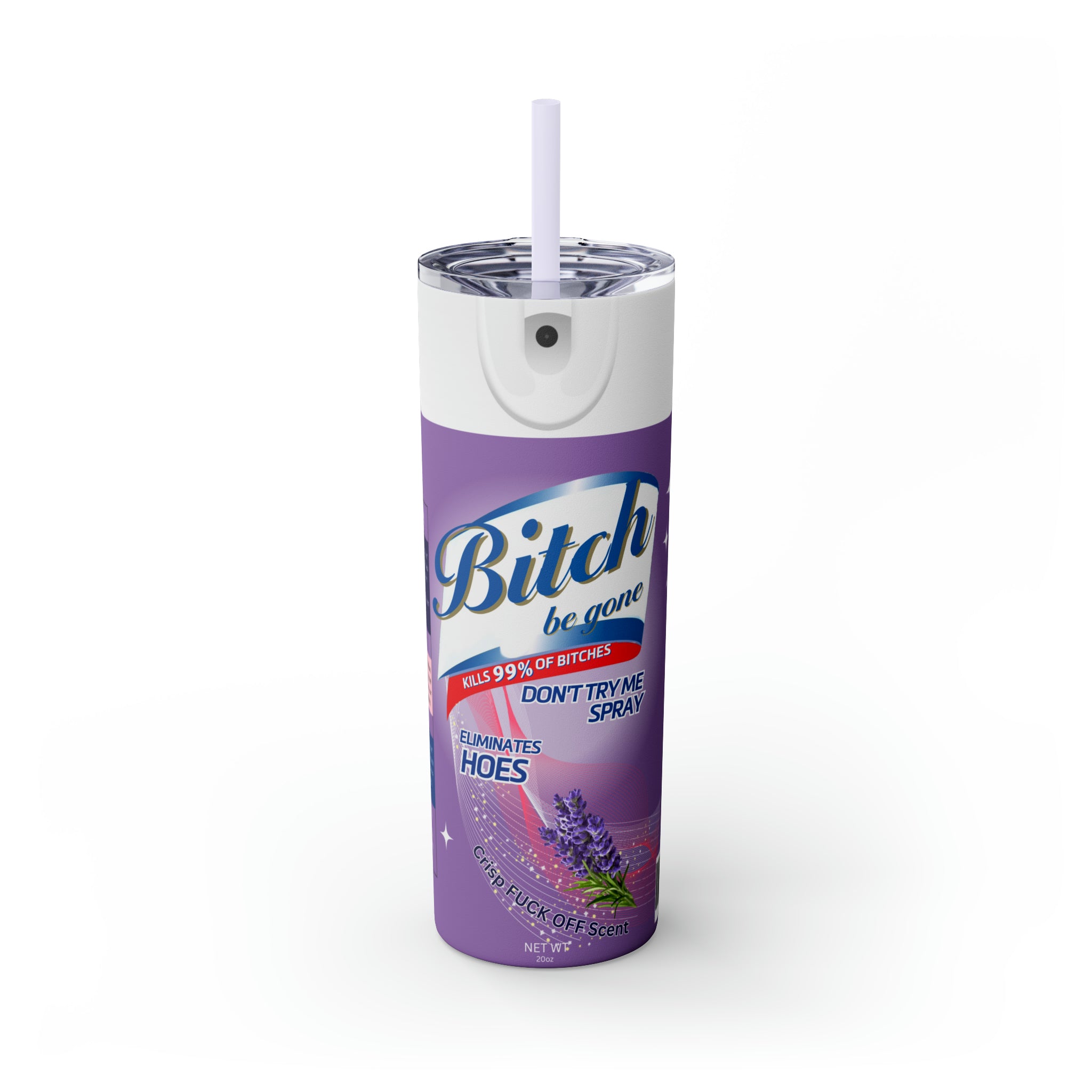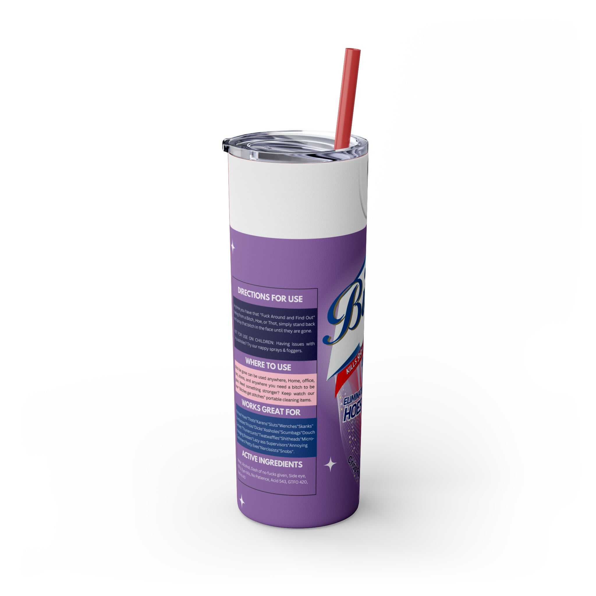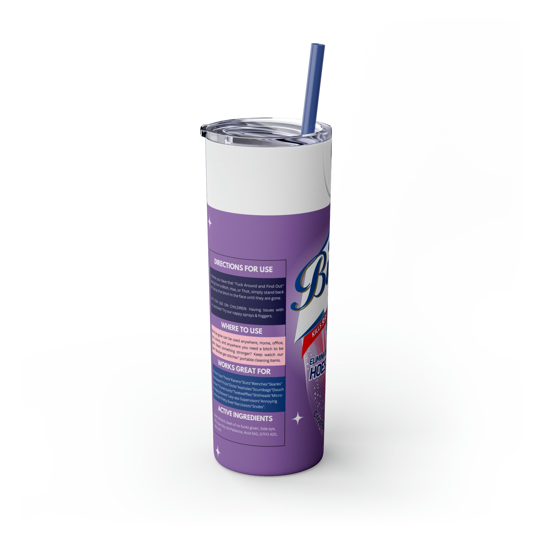 Bitch Be Gone- Purple Skinny Tumbler with Straw, 20oz