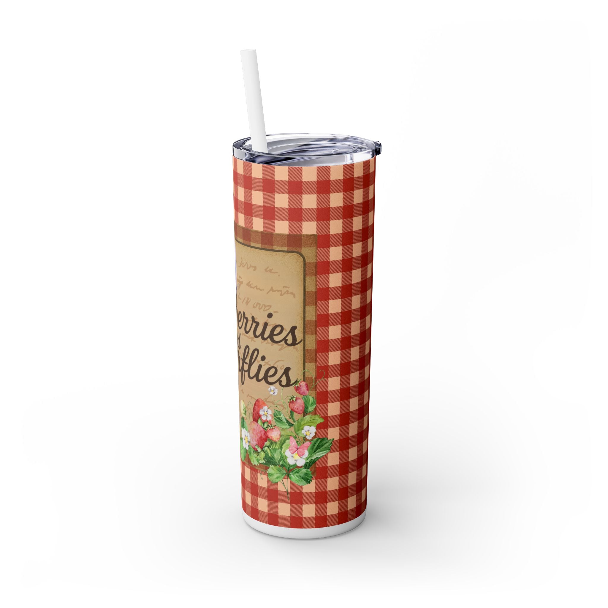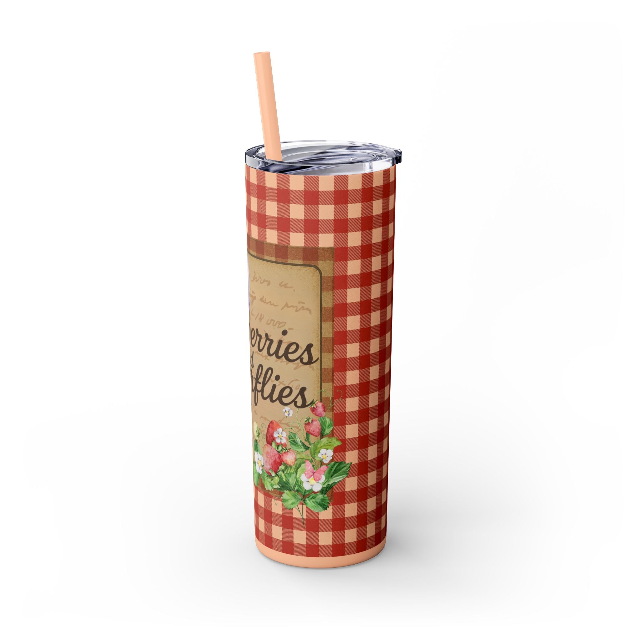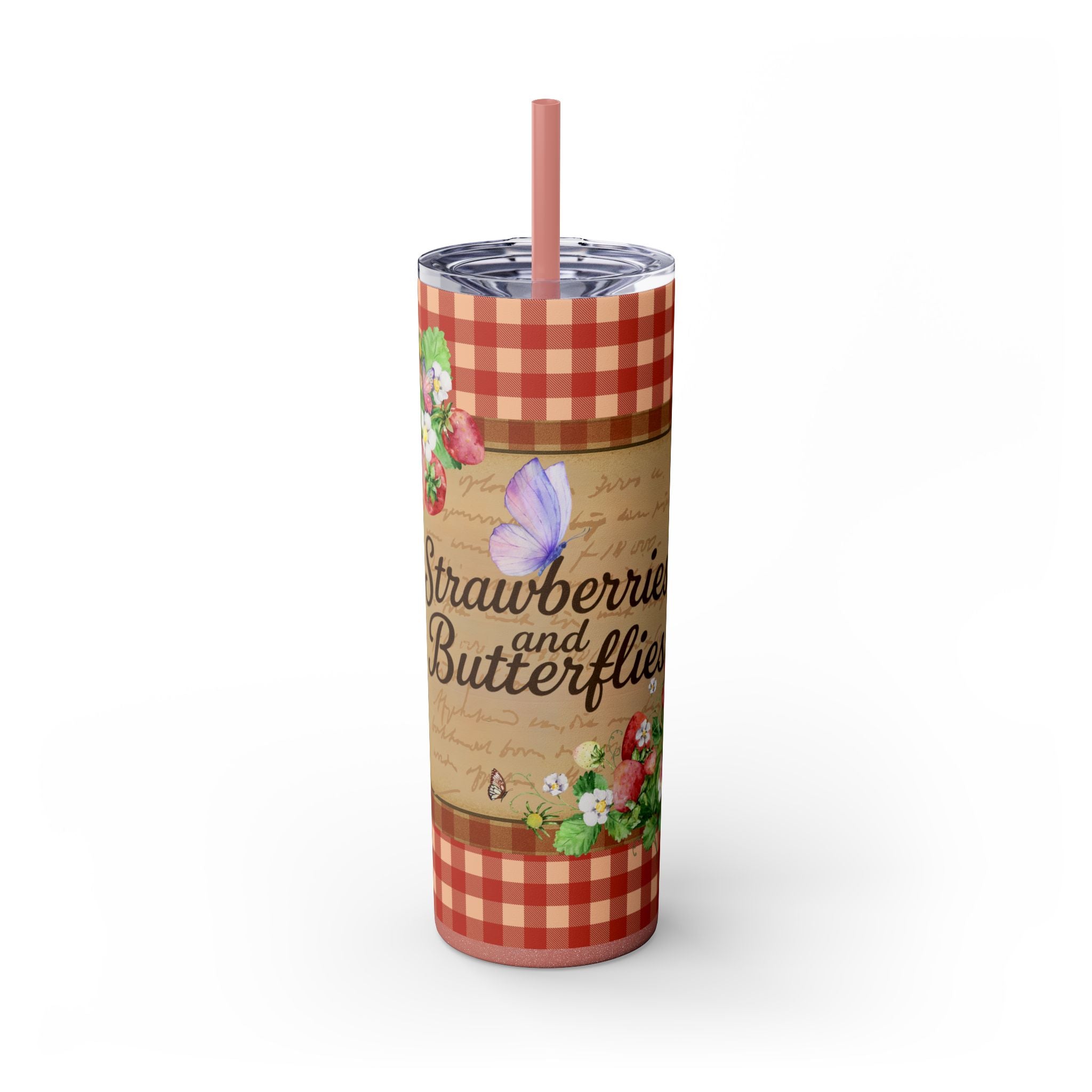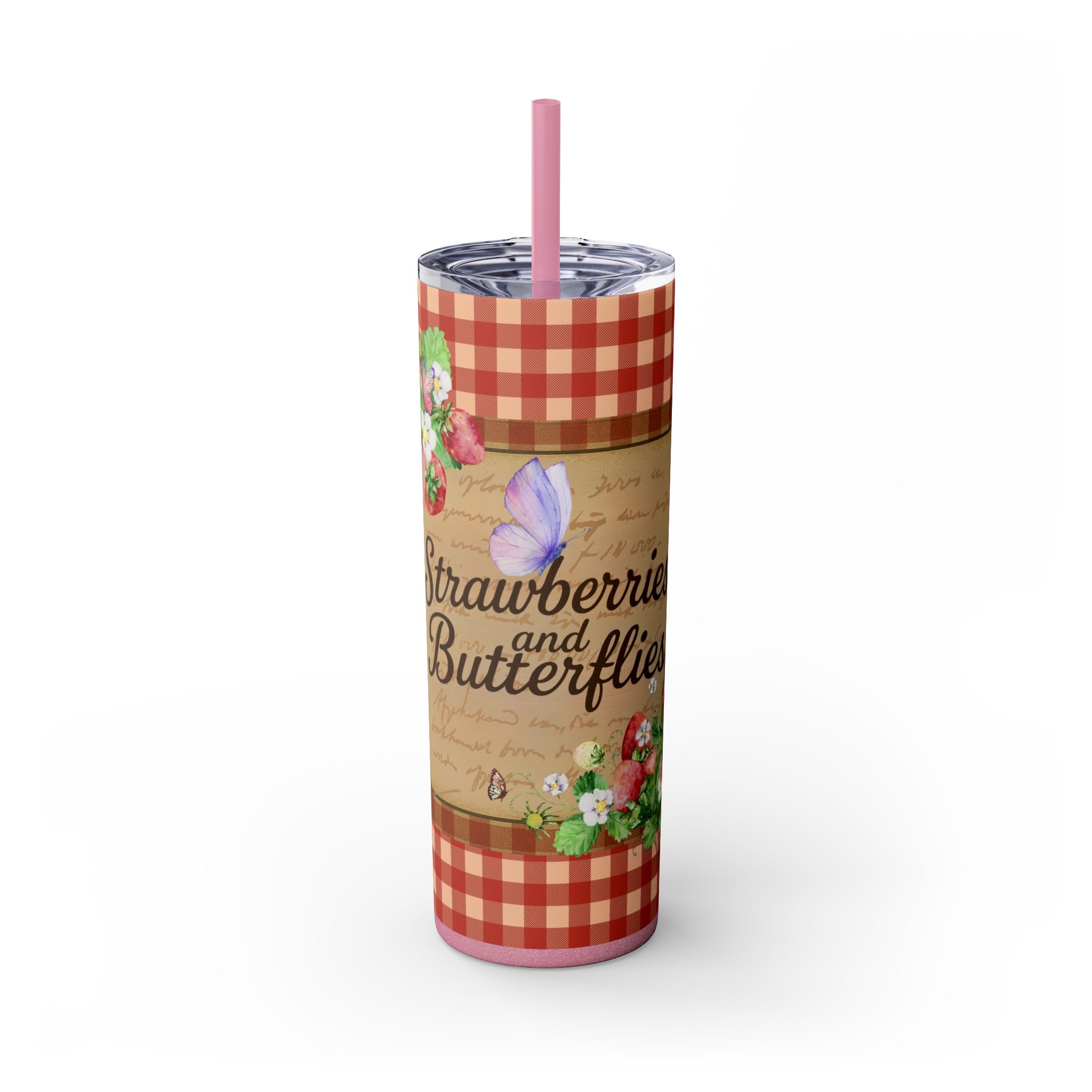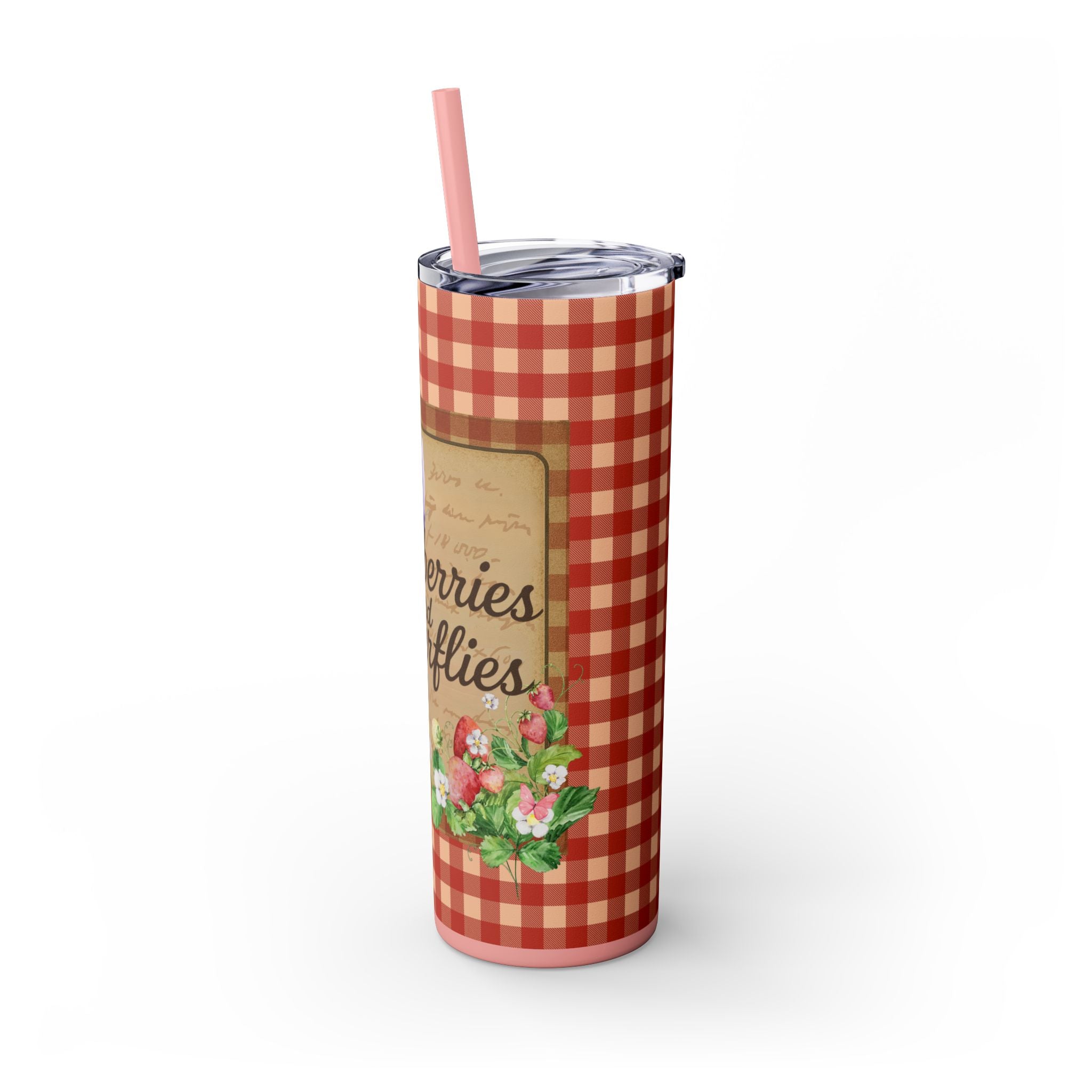 Charming Floral Tumbler, Perfect for Picnics, Summer, Garden Parties, Gifts for Her, Drinkware, Pink Checkered Design
