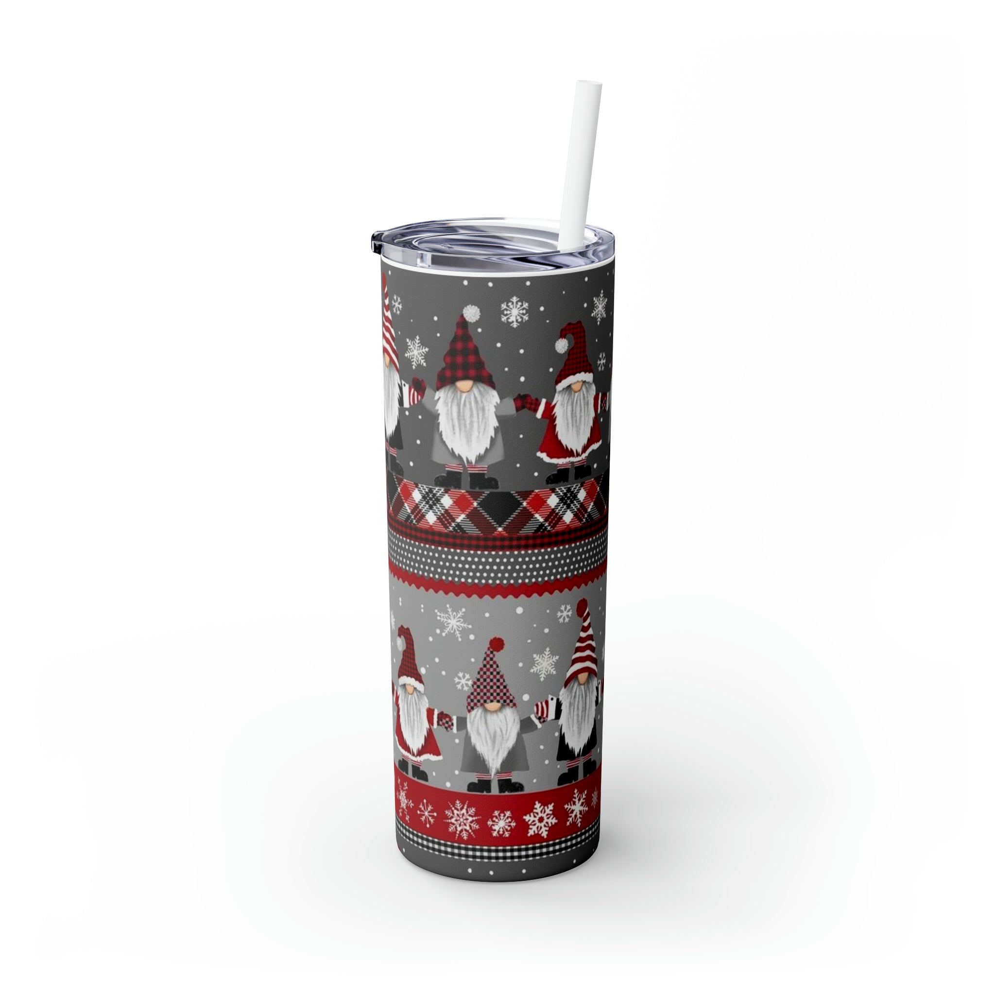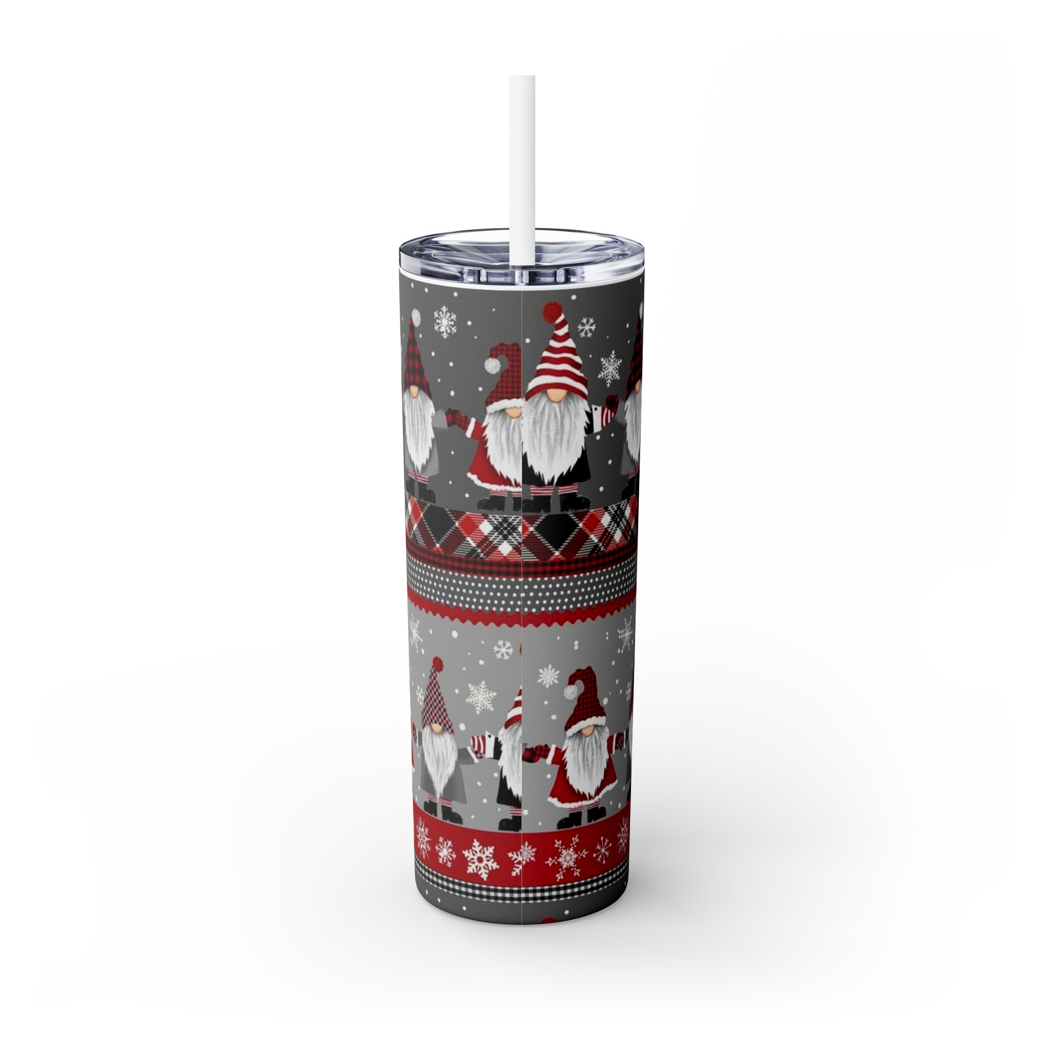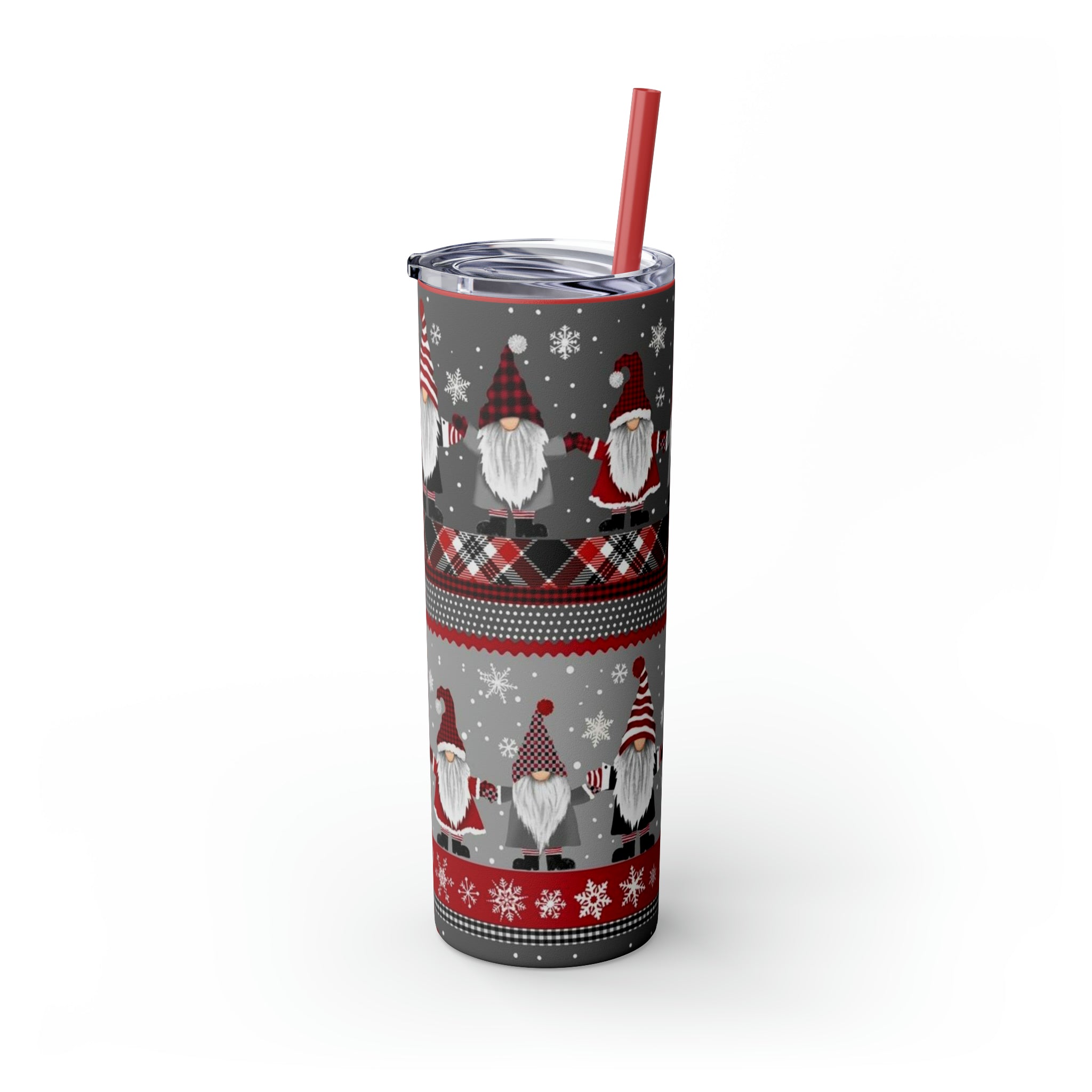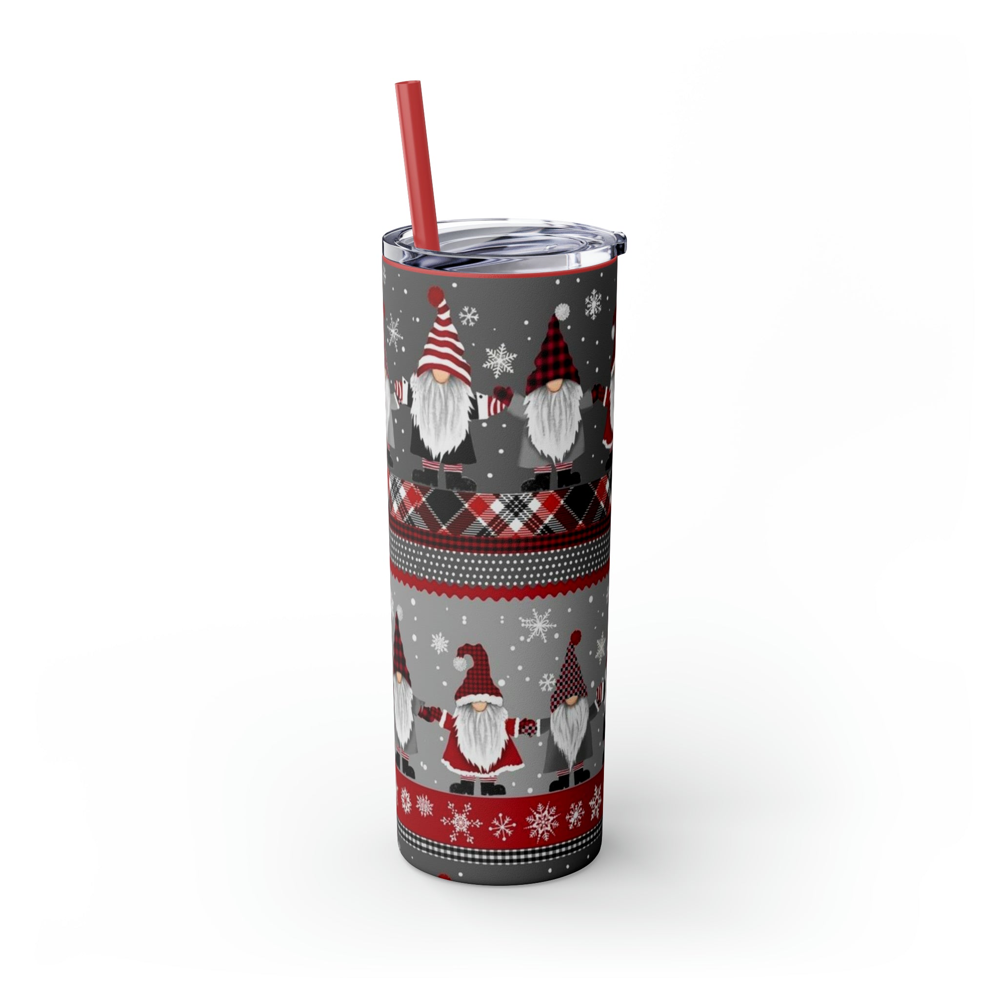 Gnomes Holiday- Skinny Tumbler with Straw, 20oz