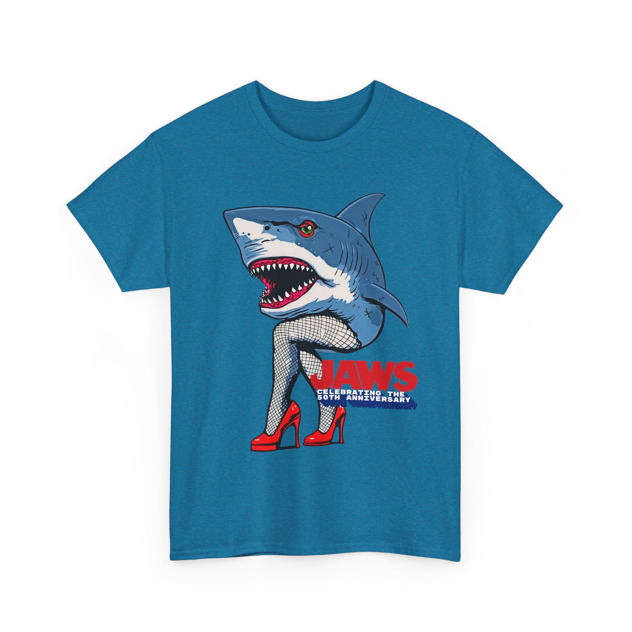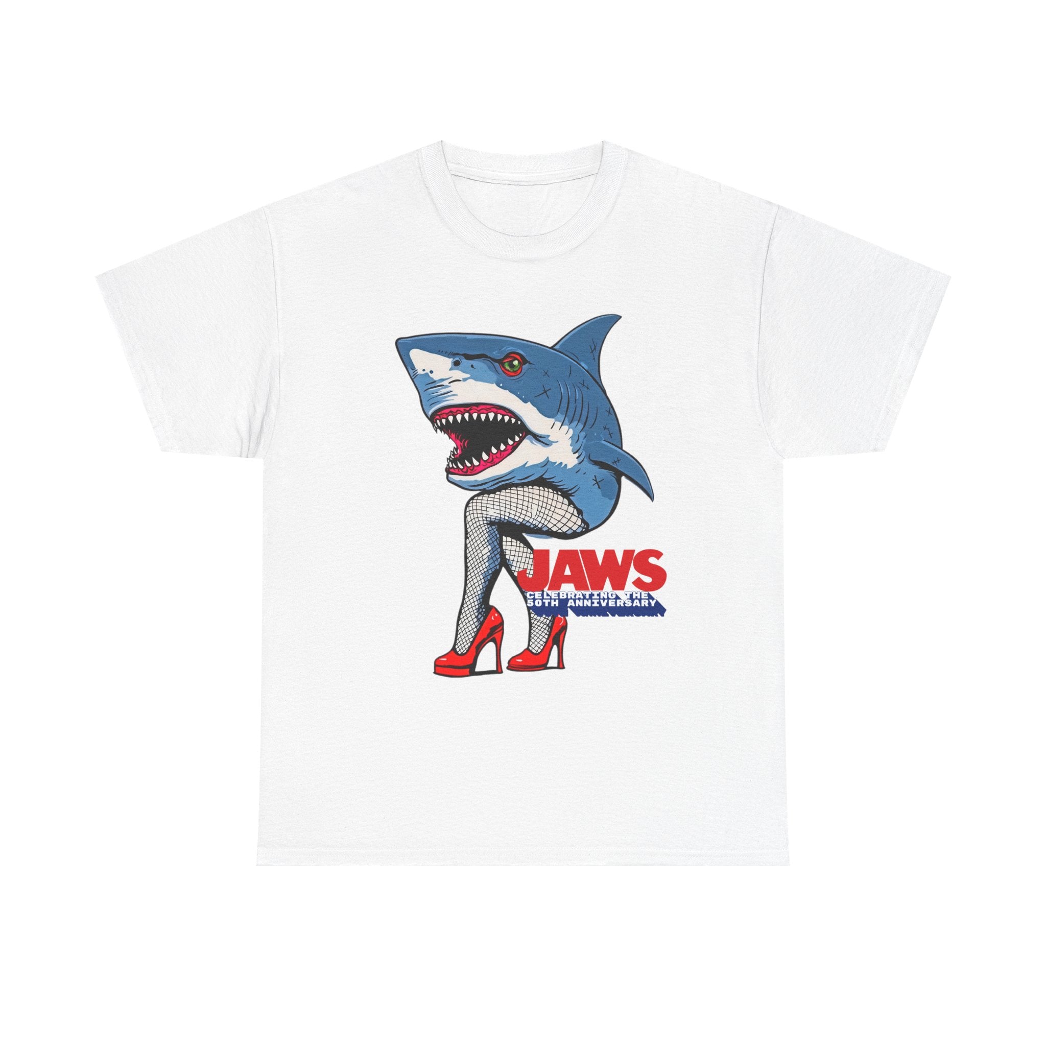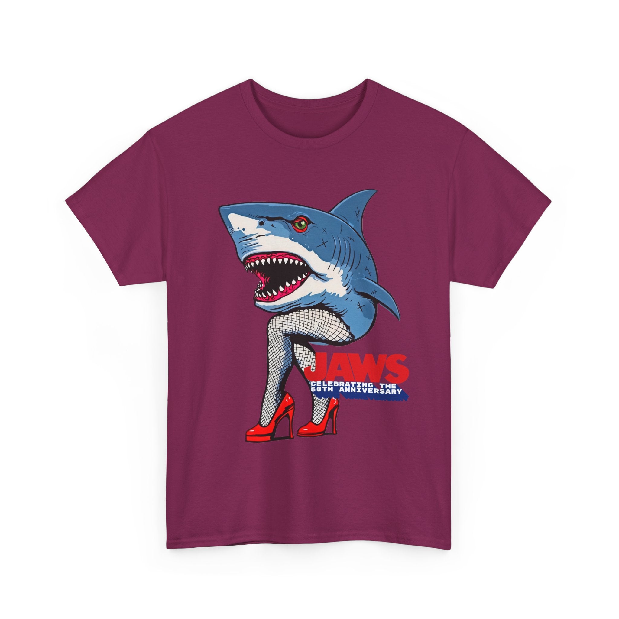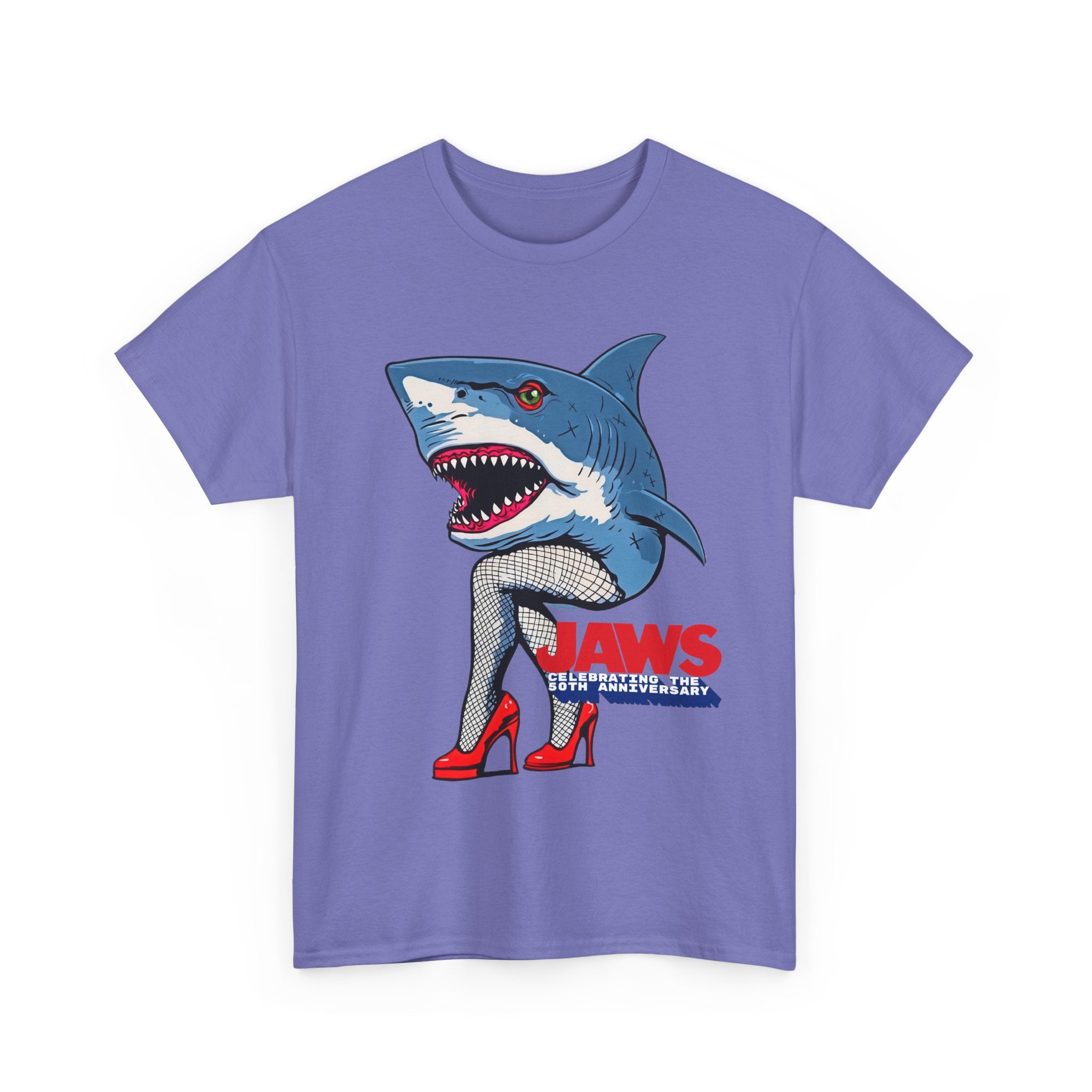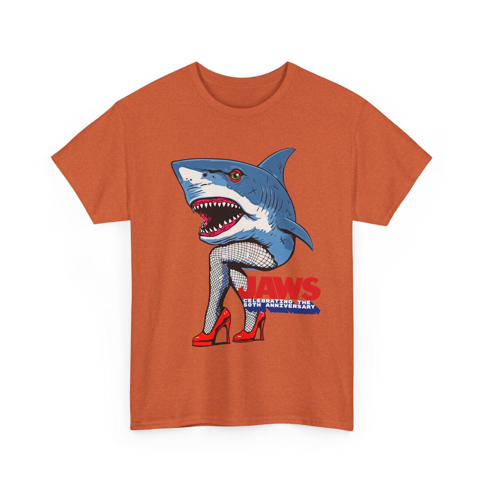 Jaws 50th Anniversary Shark-Themed Unisex Heavy Cotton Tee | Fun Graphic T-Shirt for Beach Lovers, Summer Parties, Movie Nights, Gift for Him/Her