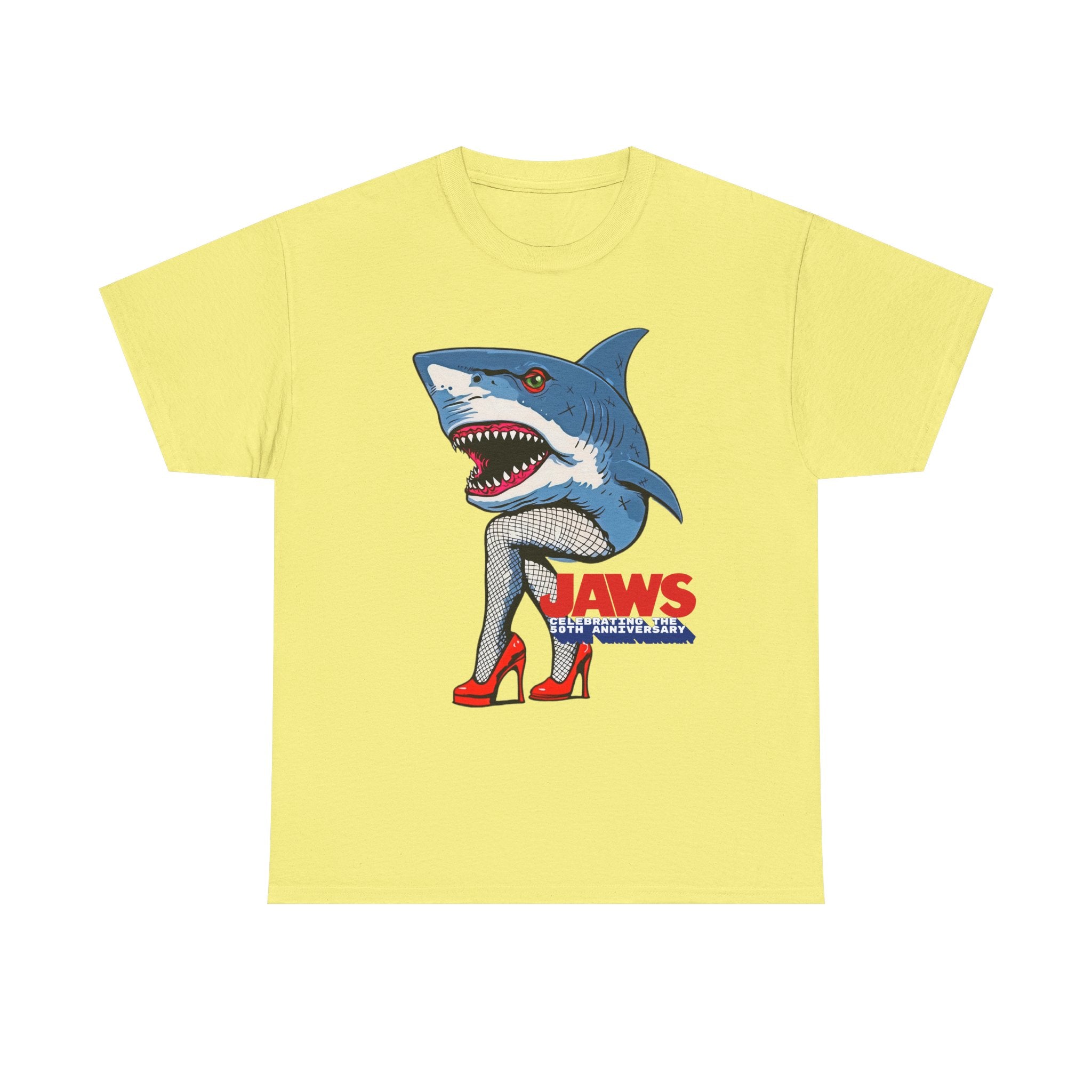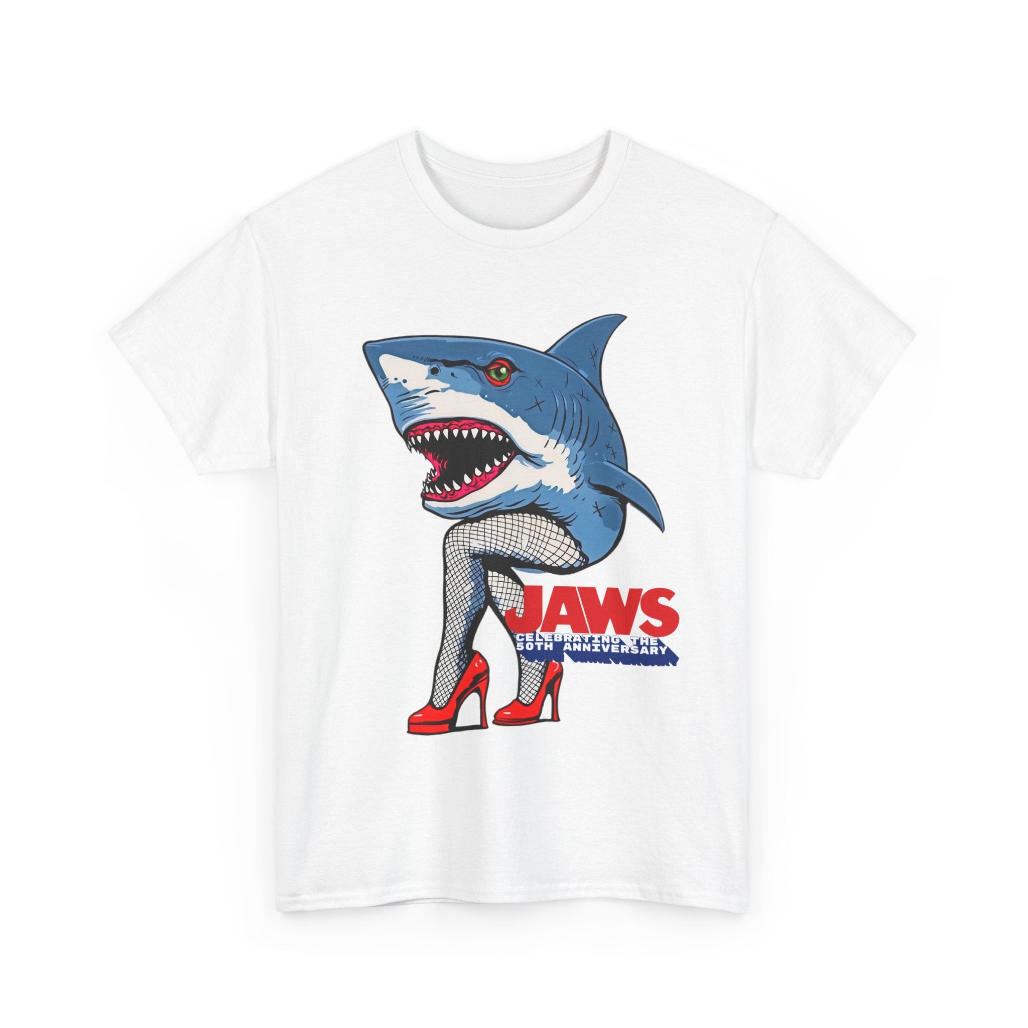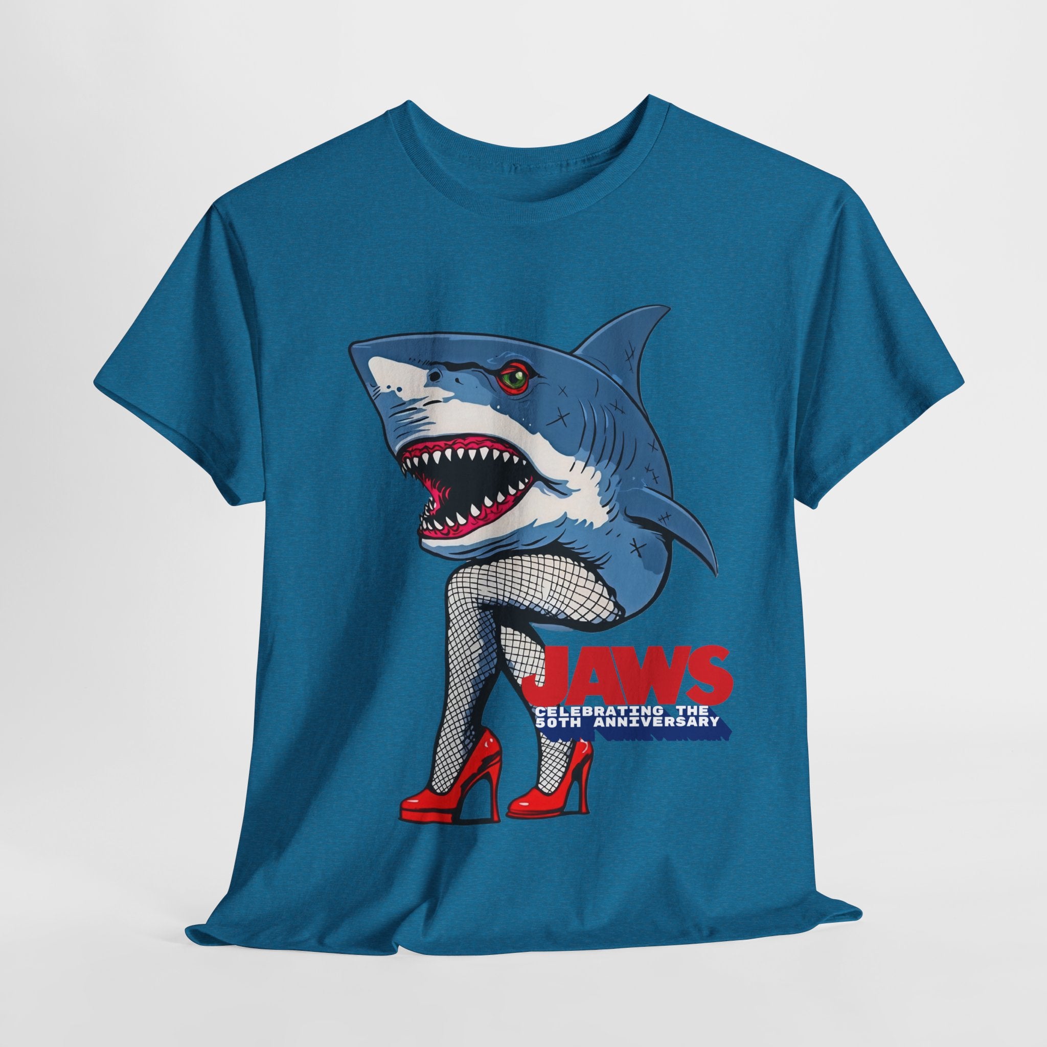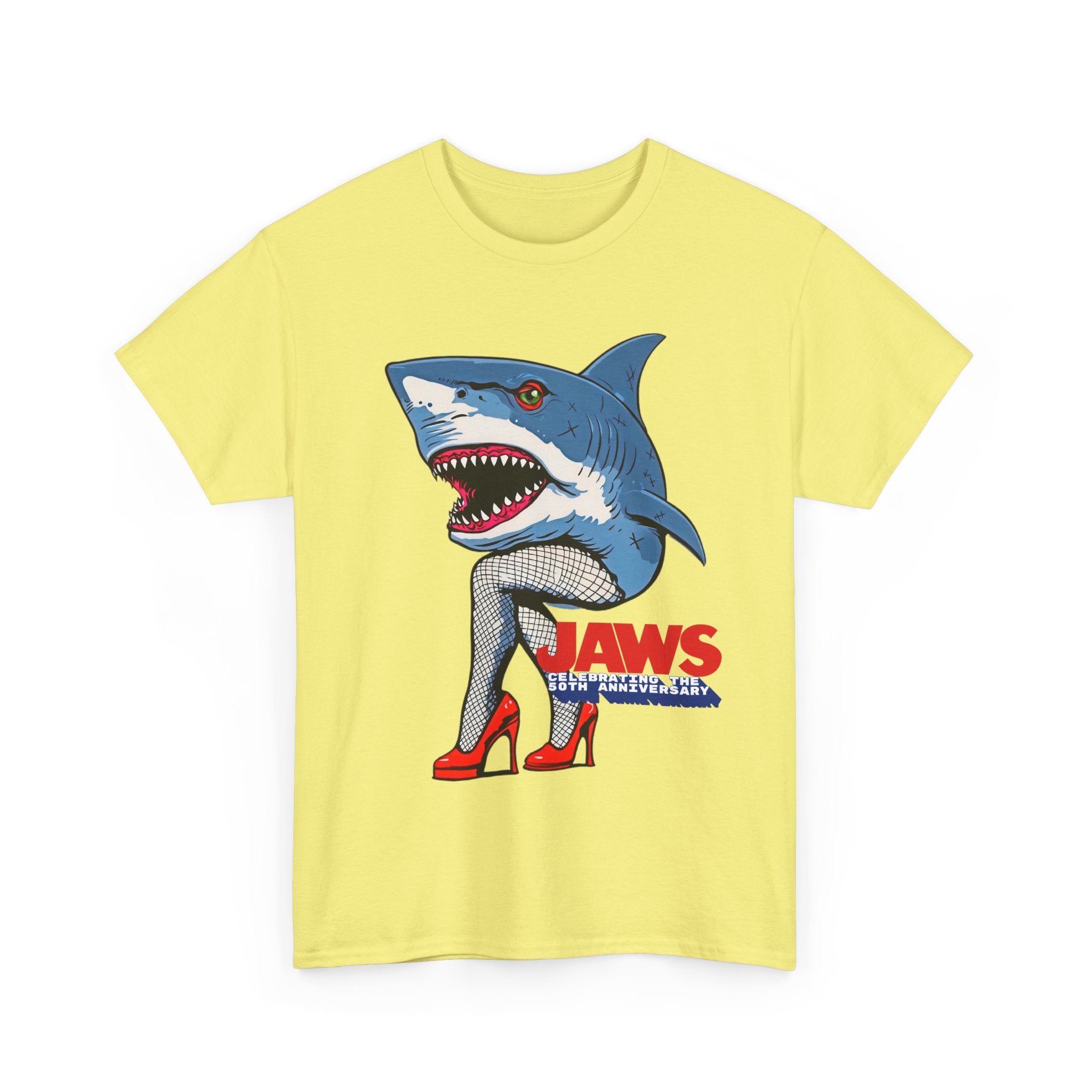 Jaws 50th Anniversary Shark-Themed Unisex Heavy Cotton Tee | Fun Graphic T-Shirt for Beach Lovers, Summer Parties, Movie Nights, Gift for Him/Her