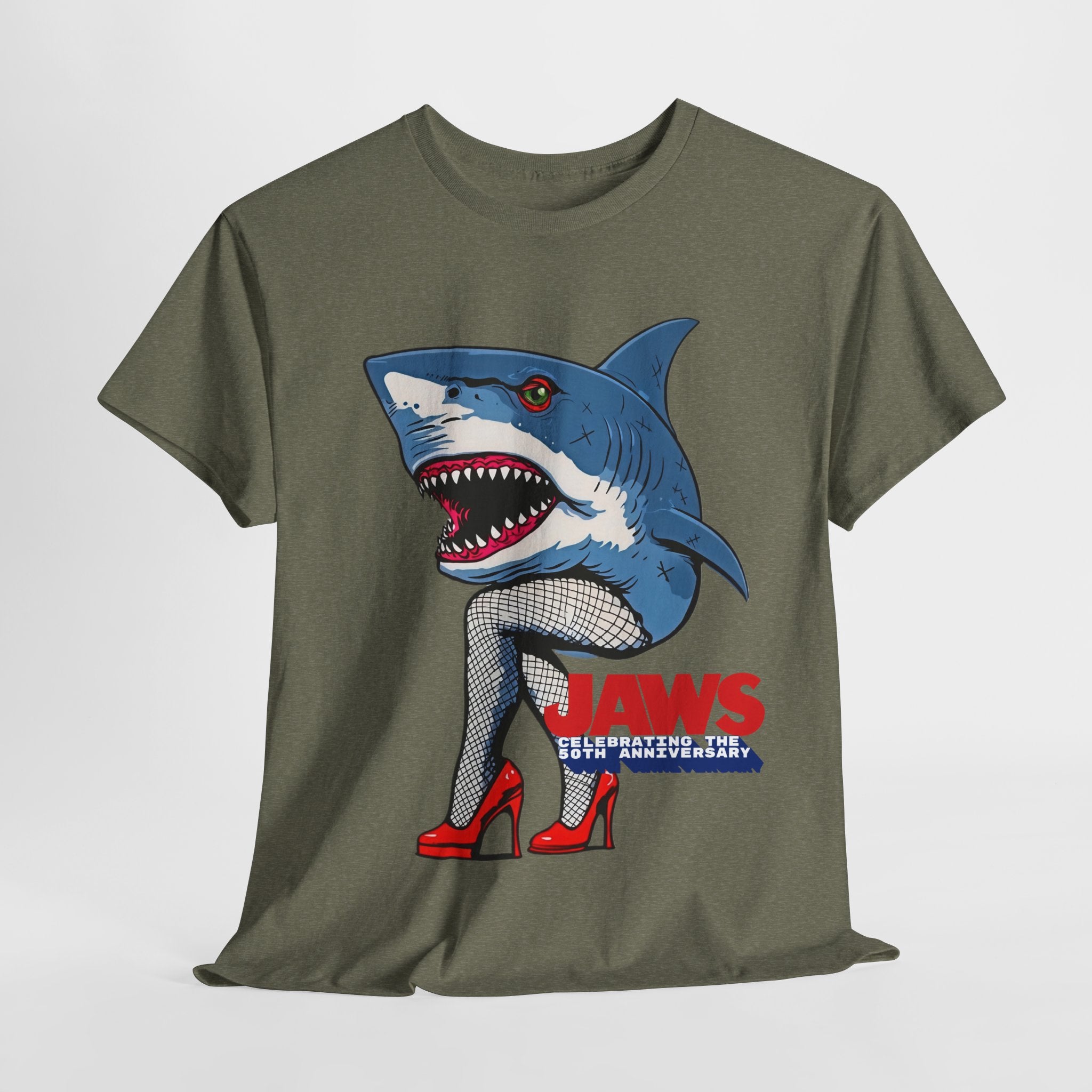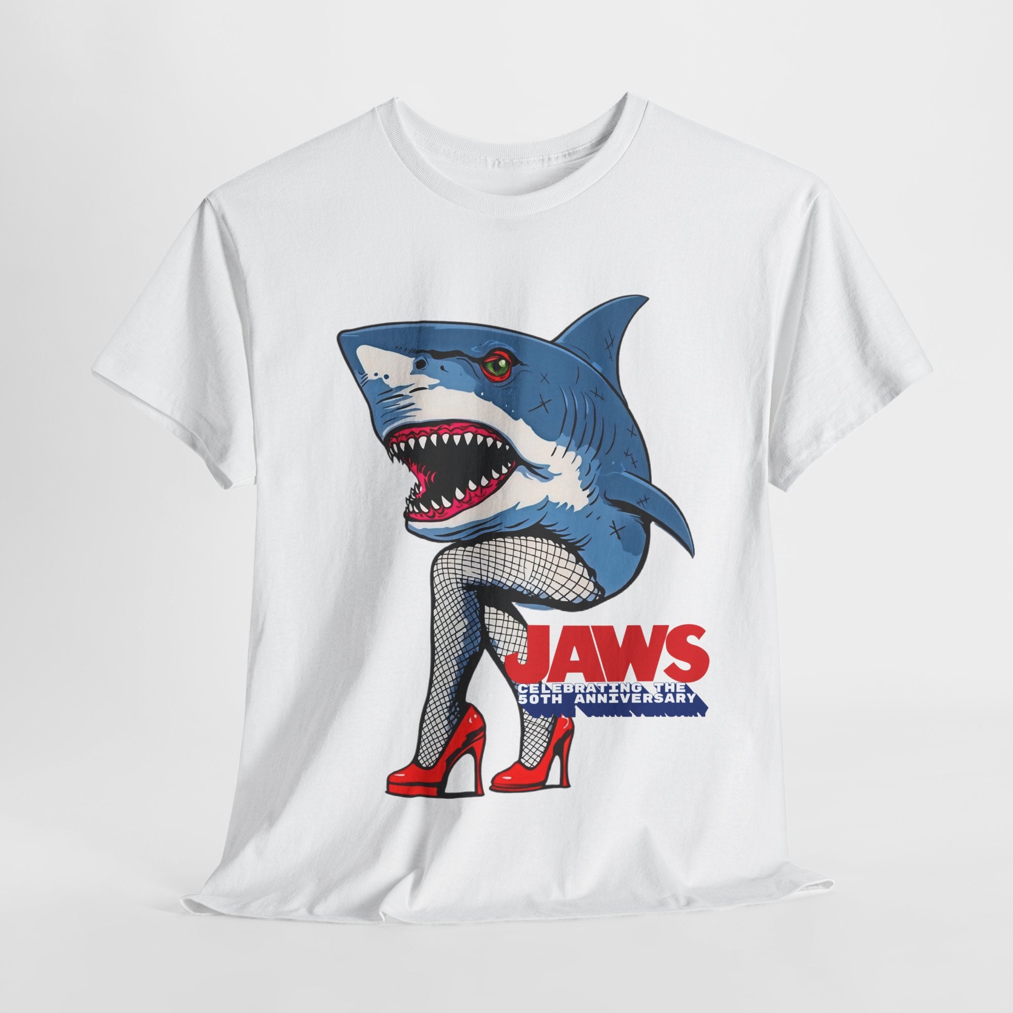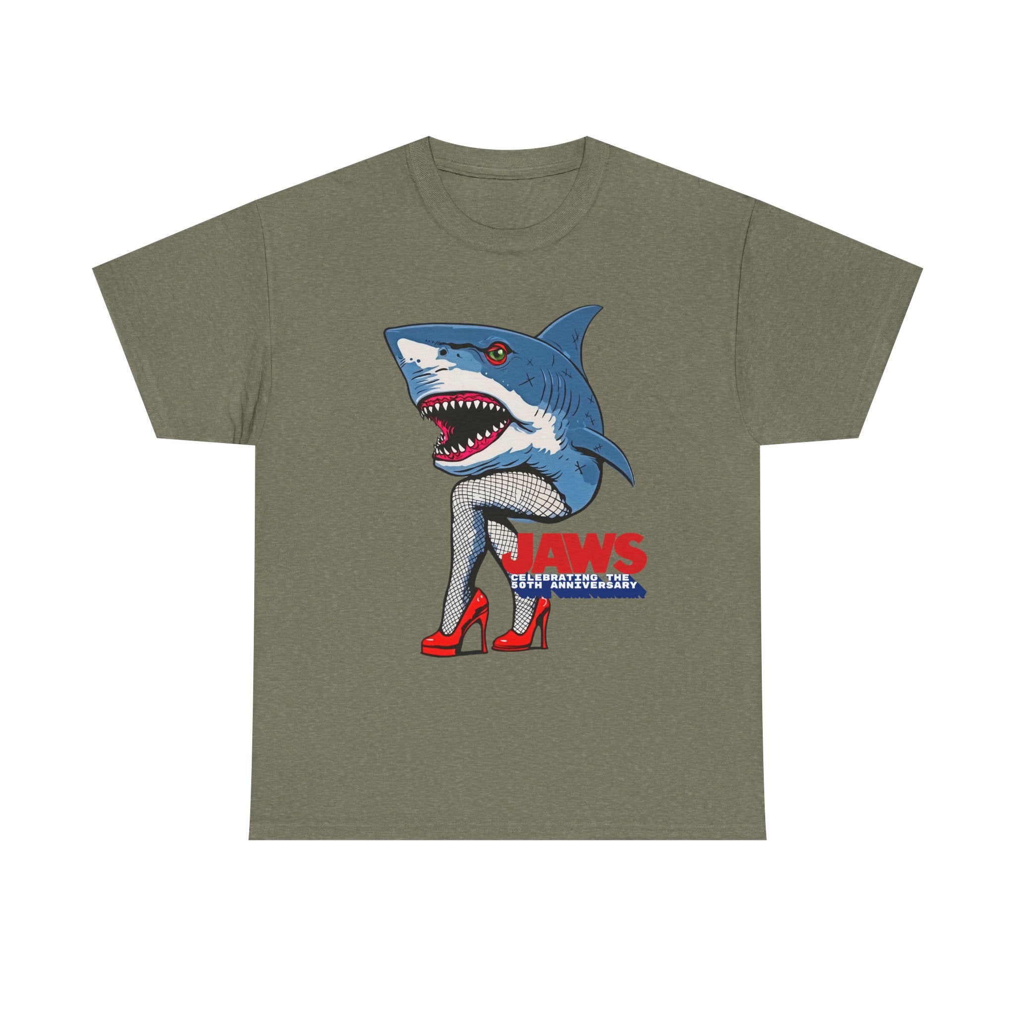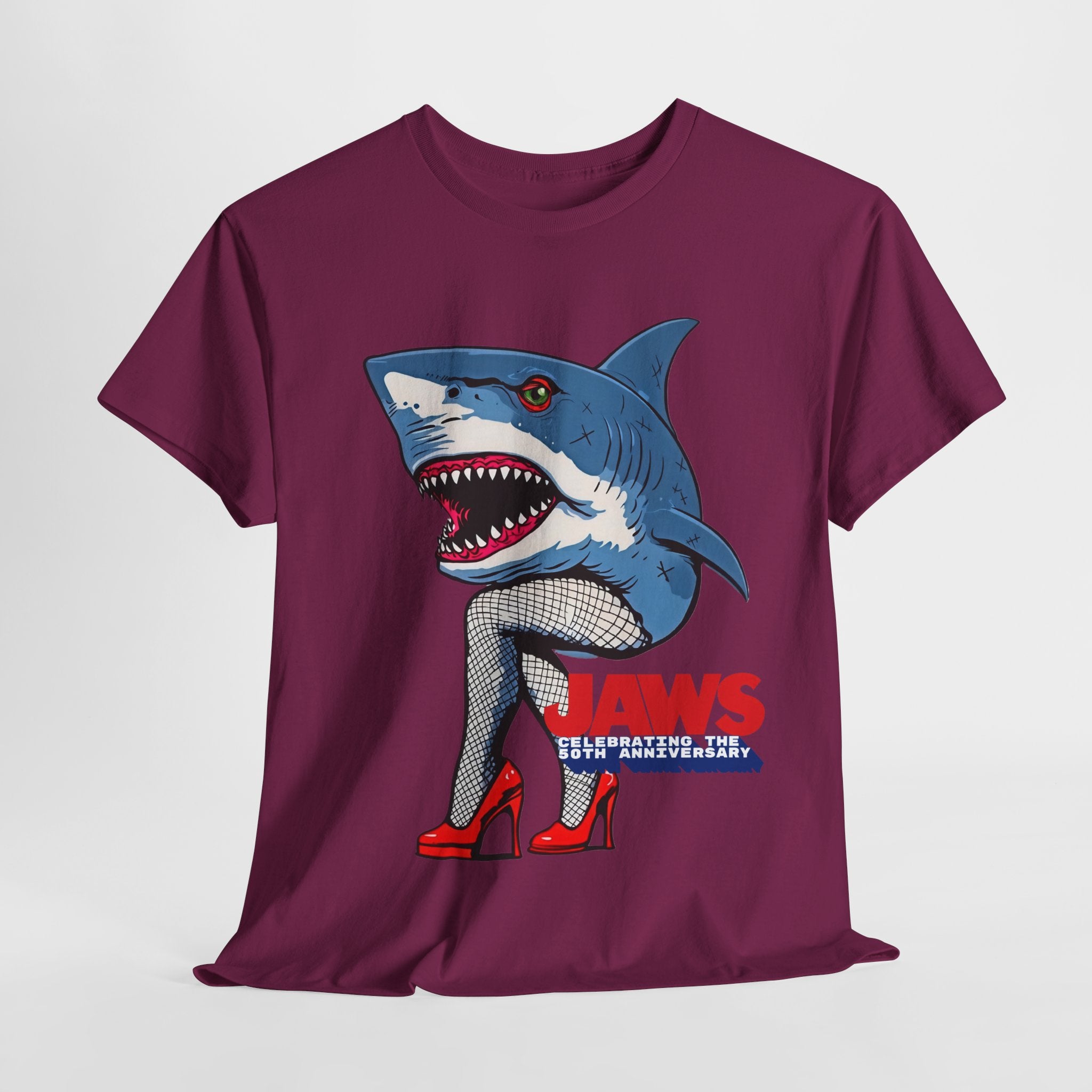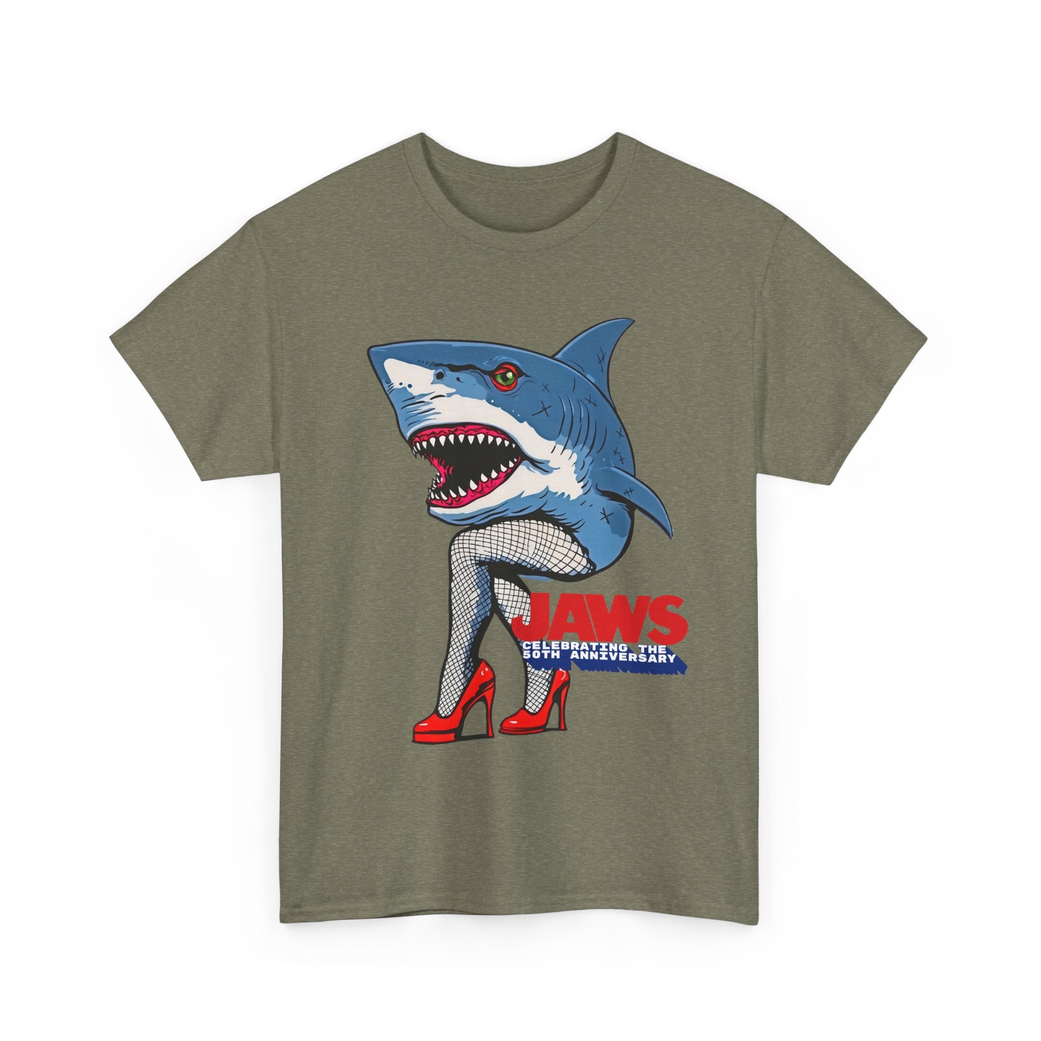 Jaws 50th Anniversary Shark-Themed Unisex Heavy Cotton Tee | Fun Graphic T-Shirt for Beach Lovers, Summer Parties, Movie Nights, Gift for Him/Her