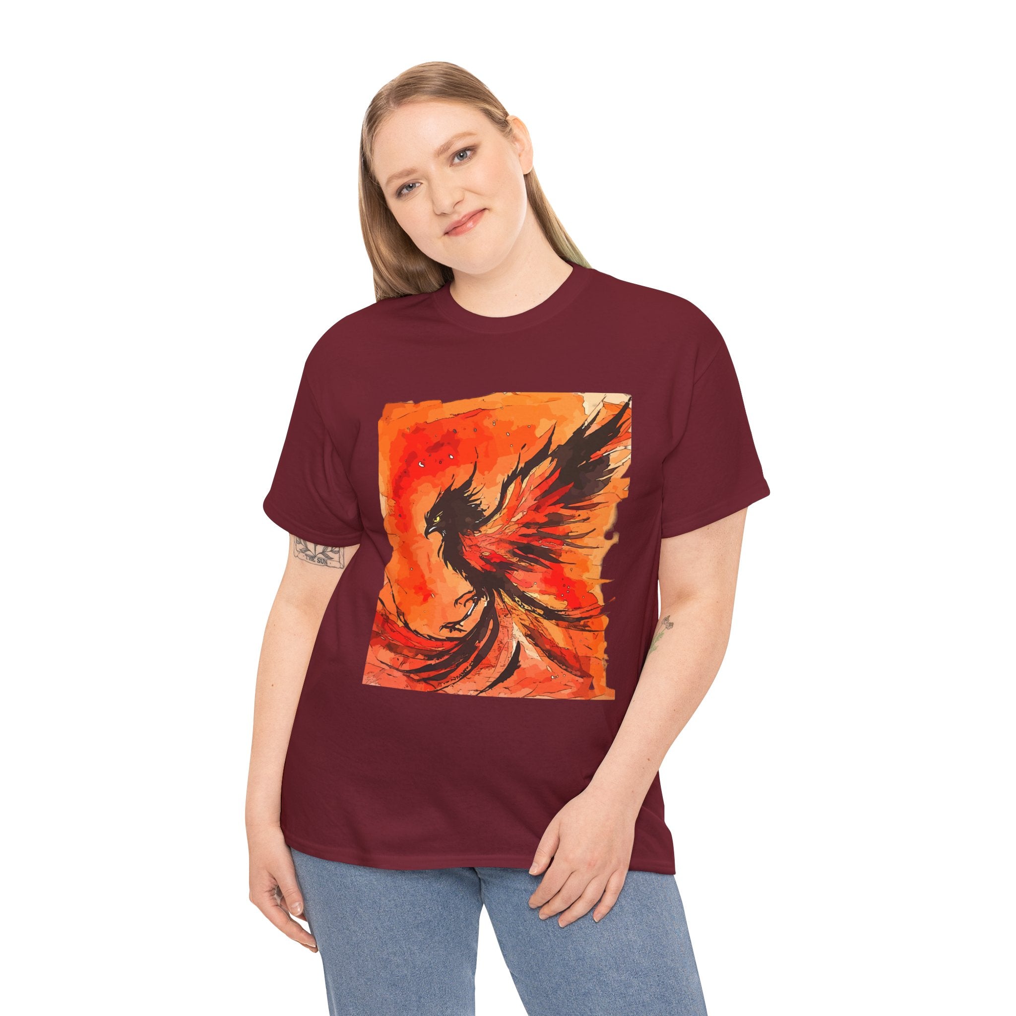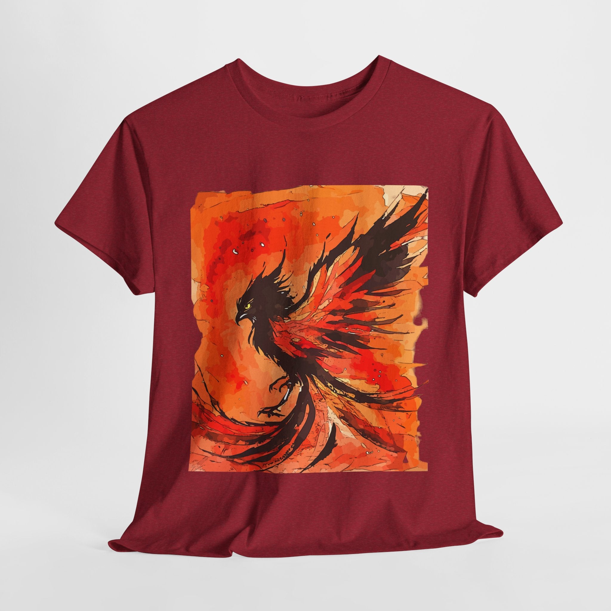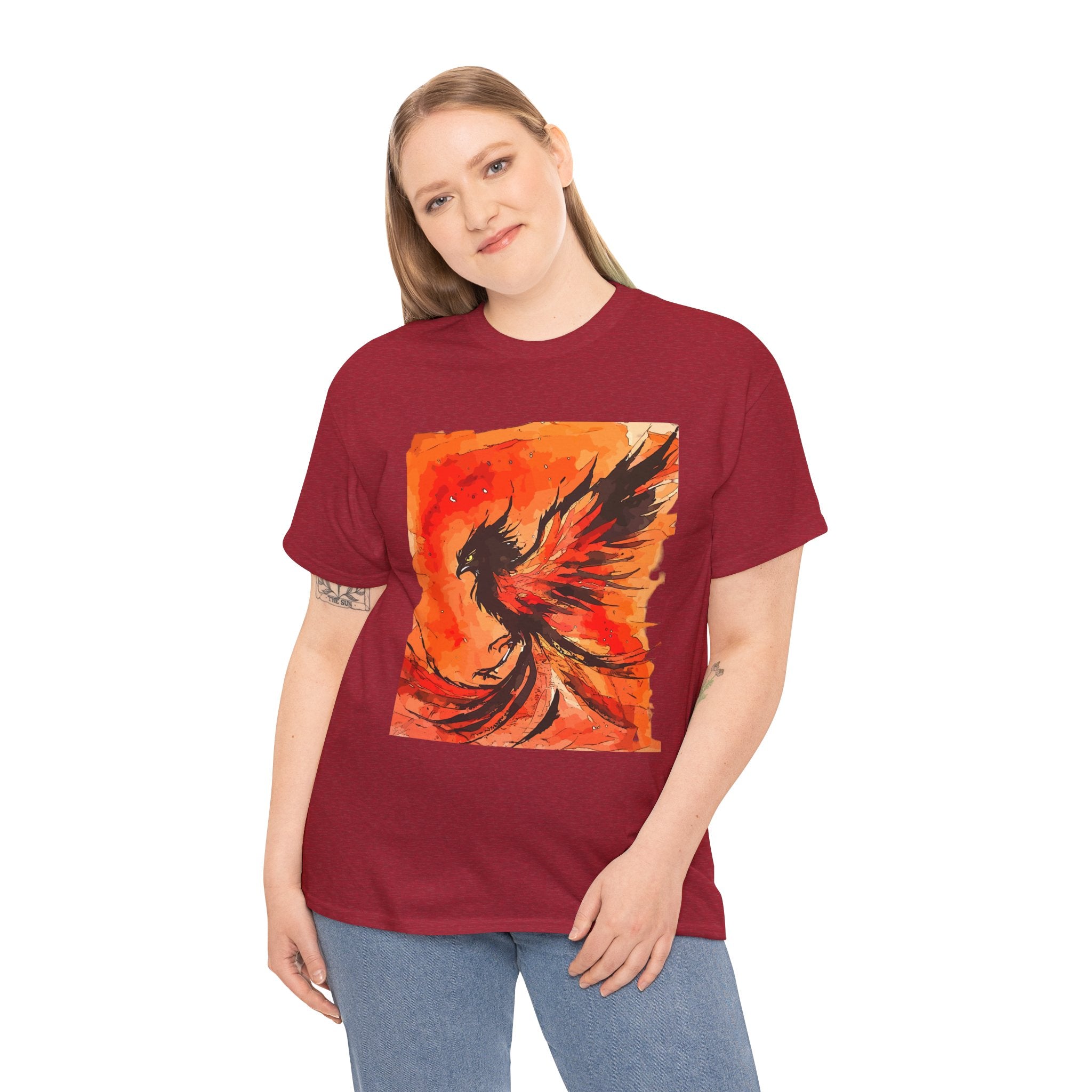 Phoenix Rising Unisex Heavy Cotton Tee, Artistic T-Shirt, Graphic Tee for Fire Enthusiasts, Unique Gift for Artists, Festival Apparel