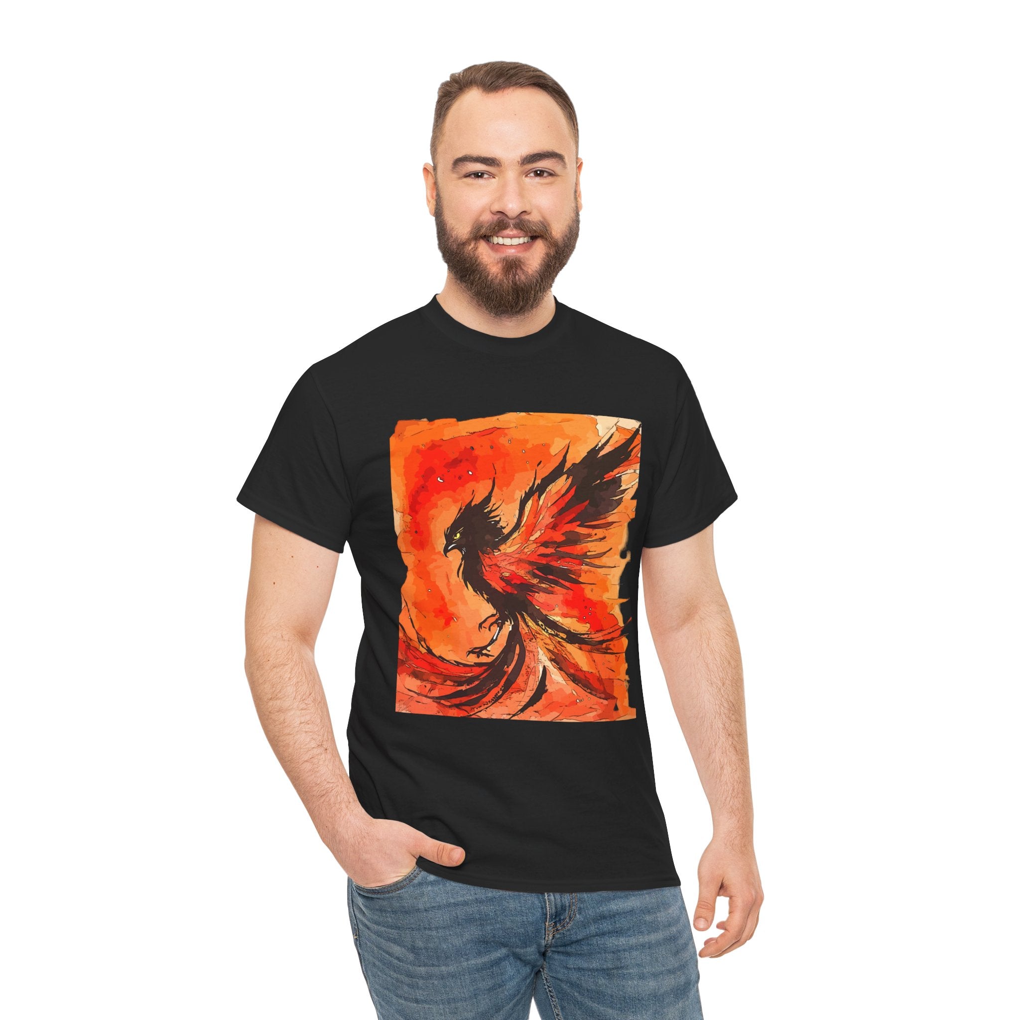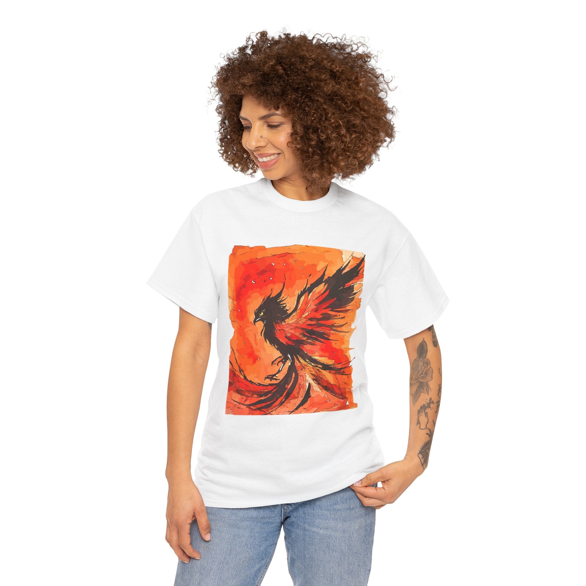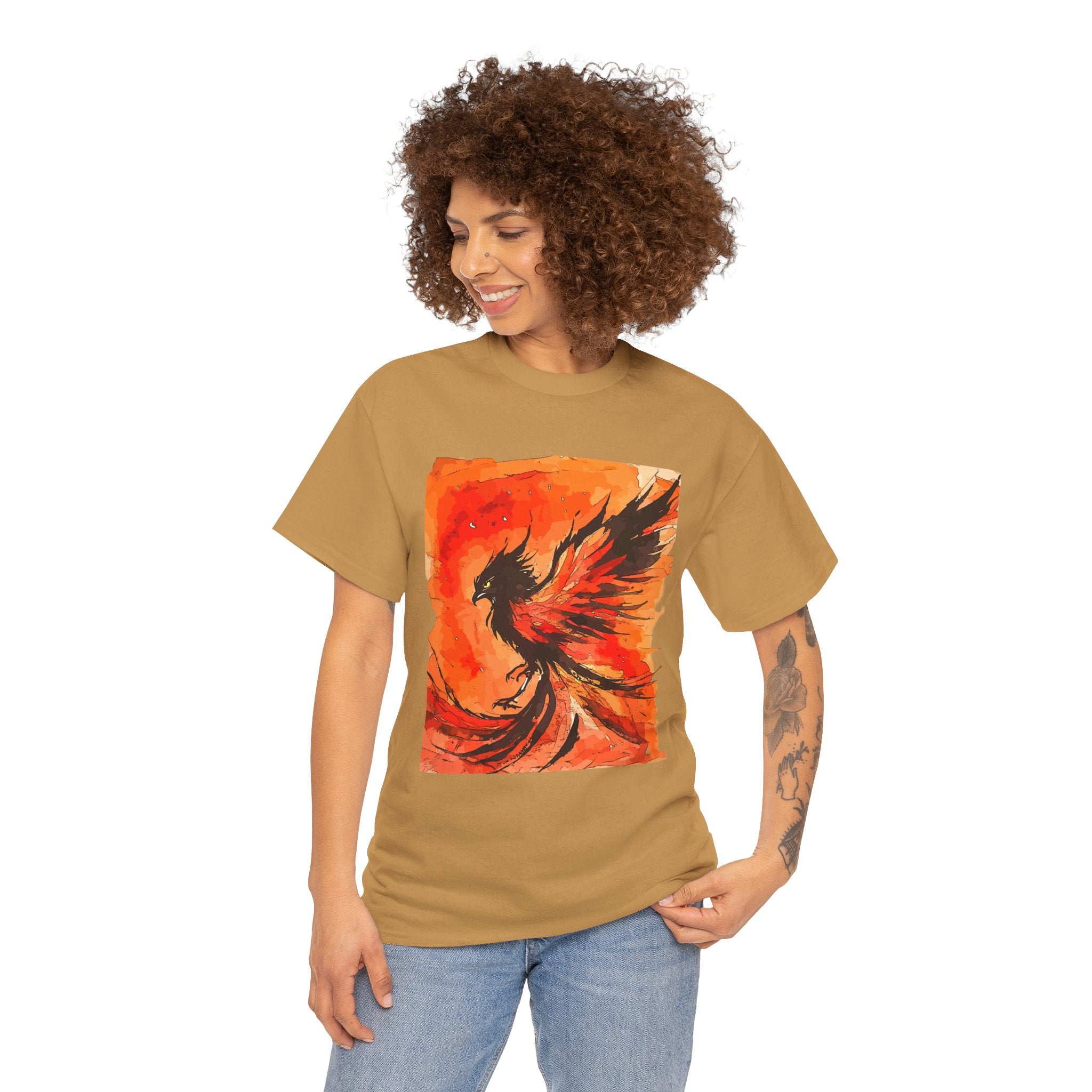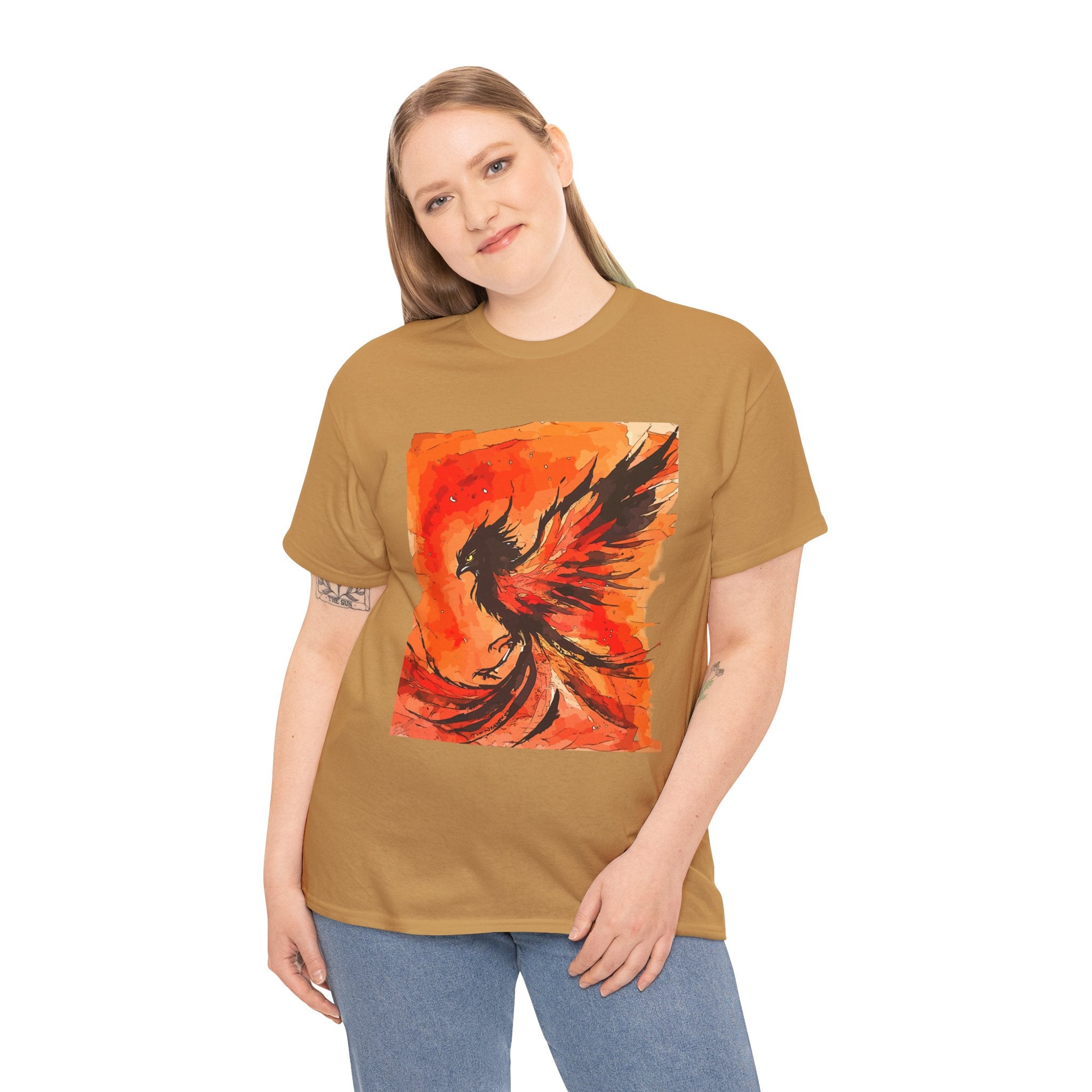 Phoenix Rising Unisex Heavy Cotton Tee, Artistic T-Shirt, Graphic Tee for Fire Enthusiasts, Unique Gift for Artists, Festival Apparel