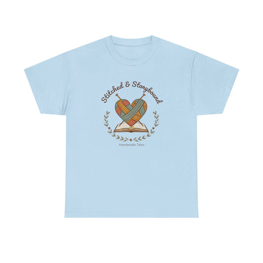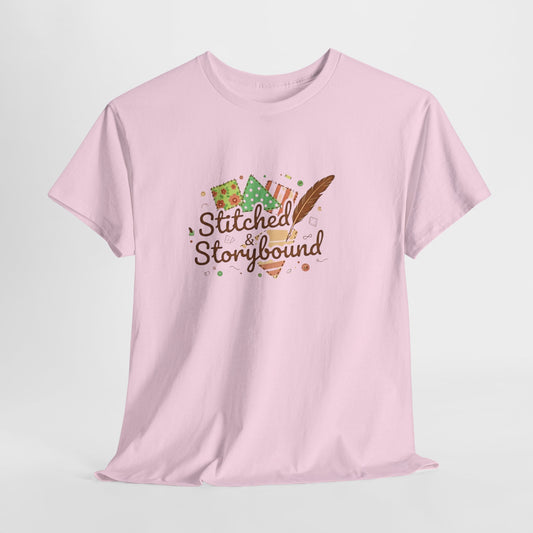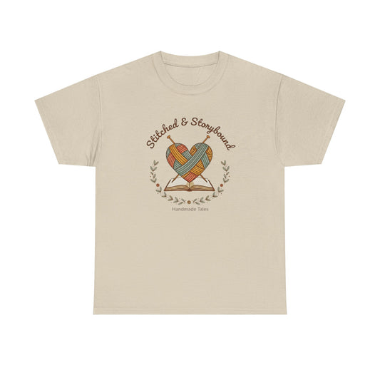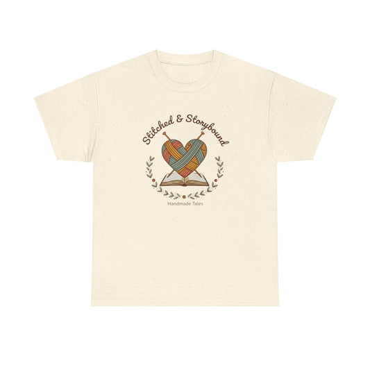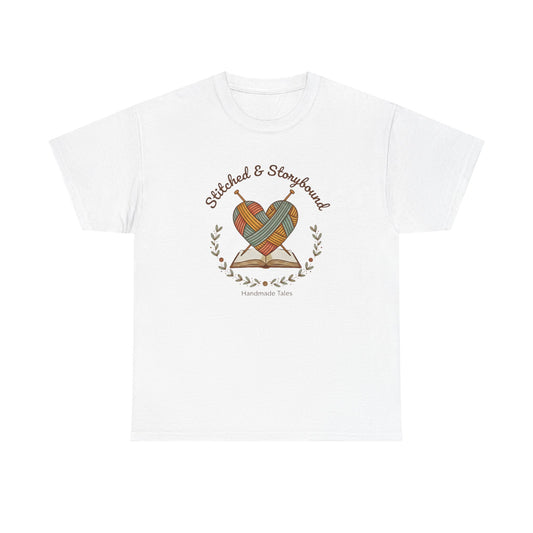 Stitched & Storybound-Heart Made Tee, Unisex Cotton T-Shirt, Literary Gift, Book Lover Shirt, Cozy Reading Apparel, Gift for Writers
