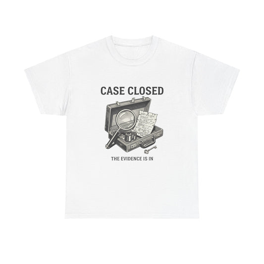 Printed Unisex Heavy Cotton Tee with 'Case Closed' Design, Detective Gift, Casual Wear, Crime Scene Shirt, Novelty Tee